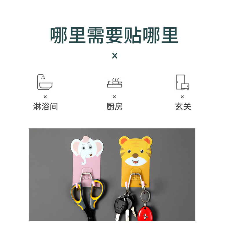 跨境热销可爱动物双挂钩免打孔粘贴厨房浴室创意收纳强力无痕粘钩 商品图2