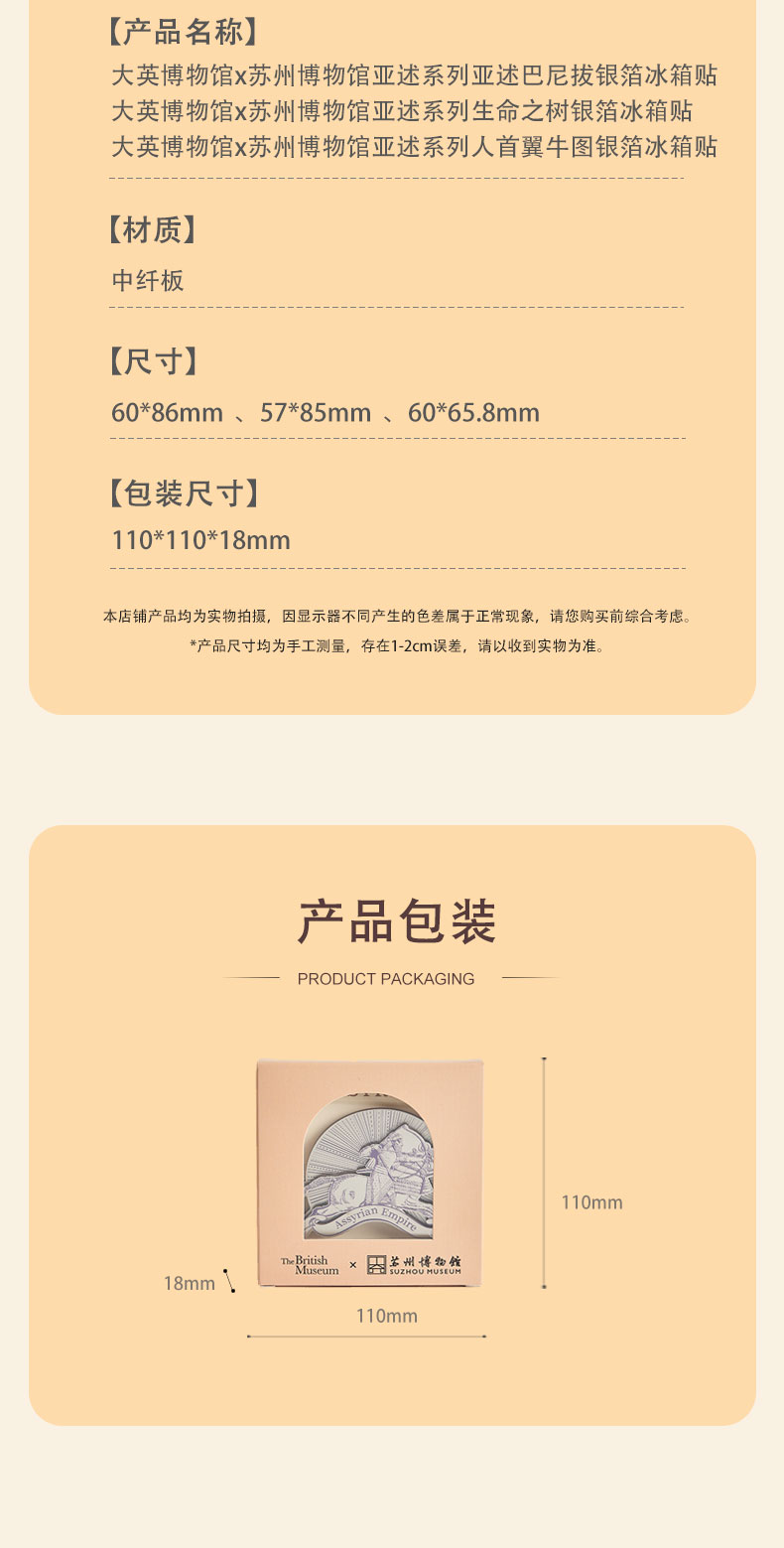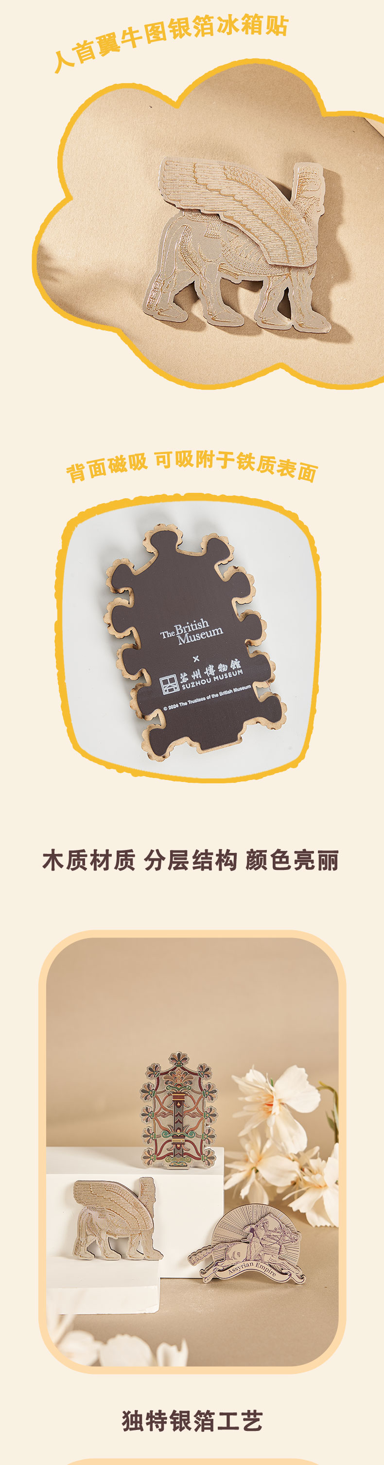 大英博物馆x苏州博物馆亚述系列亚述 巴尼拔 生命之树 人首翼牛图 银箔 冰箱贴