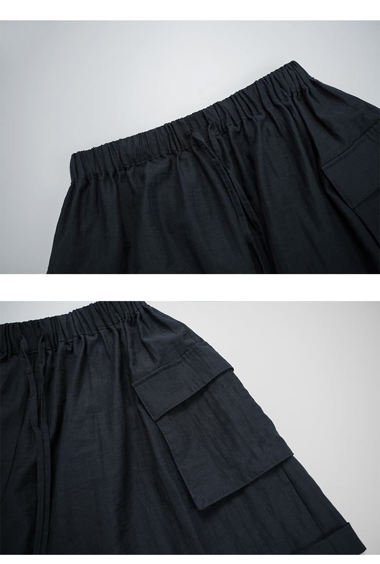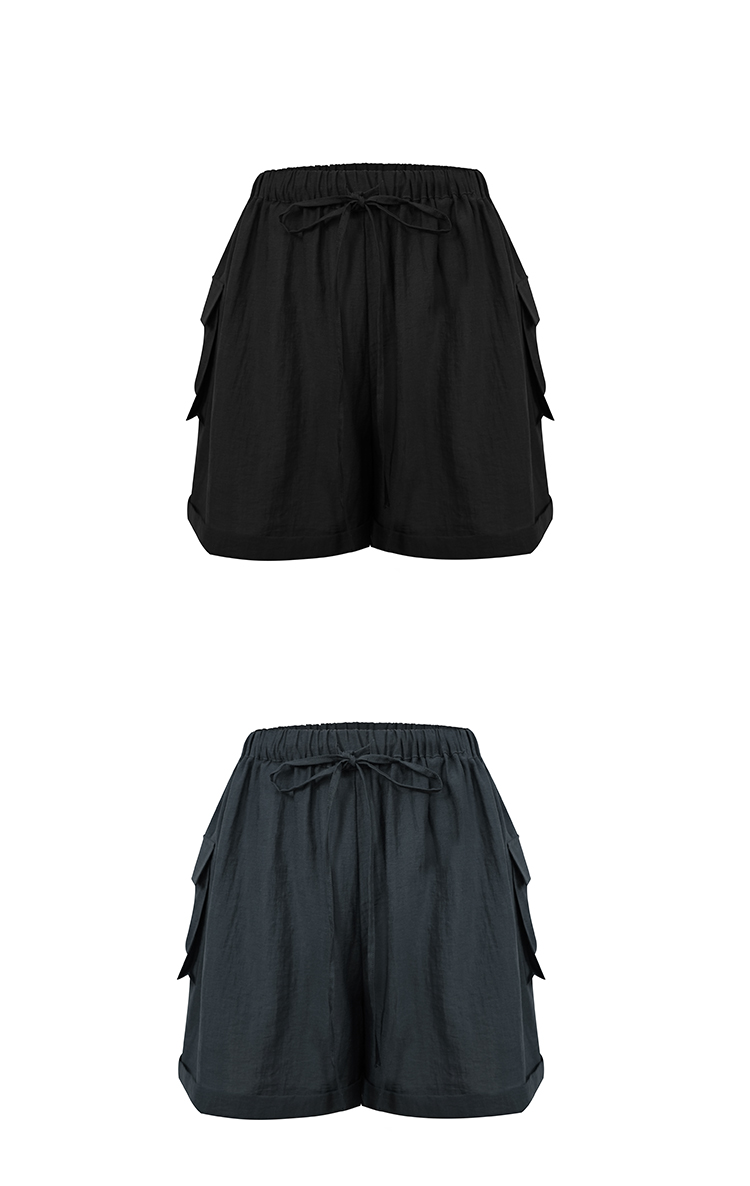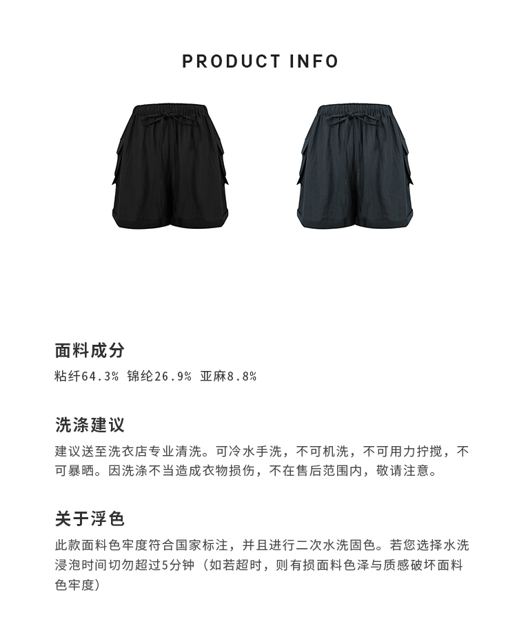 HIDEMI 度假系列口袋宽松显瘦松紧带短裤 雾霾蓝/黑色