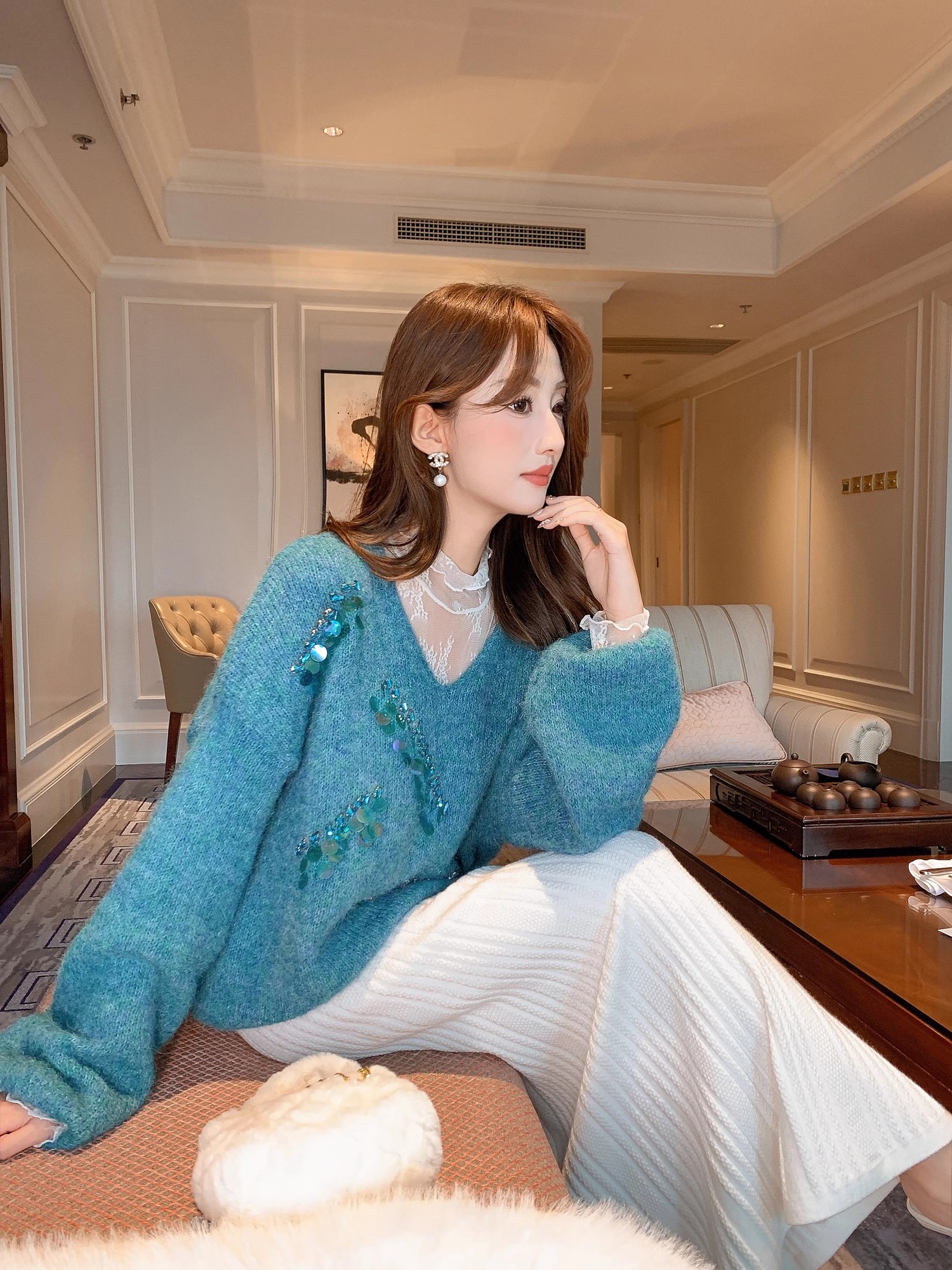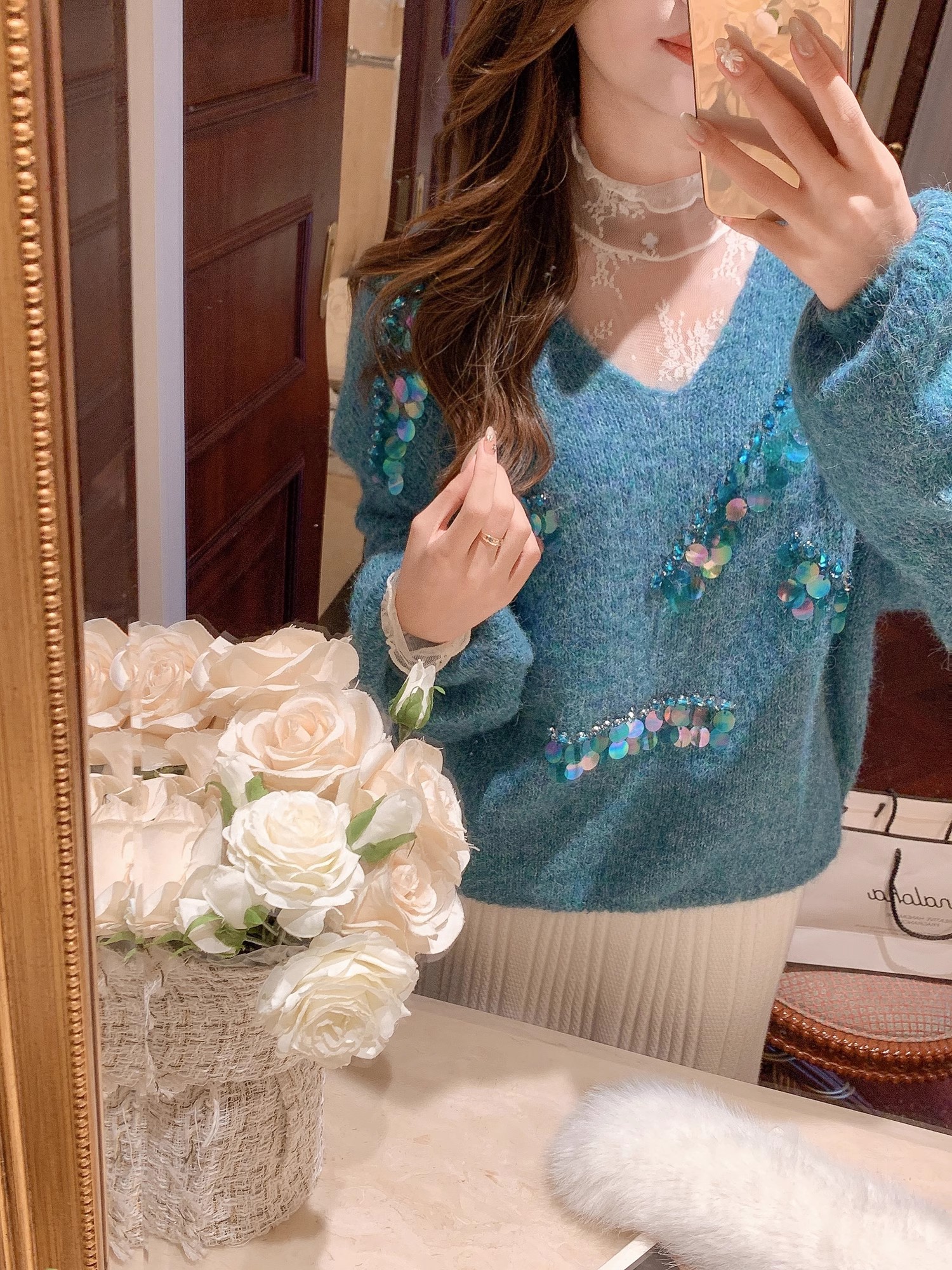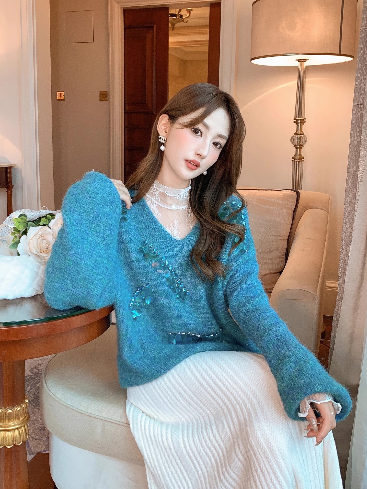张心子【Lu系法则】重工氛围感亮片套头毛衣女秋冬新款显白上衣仙 U2411011