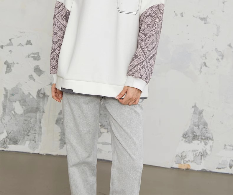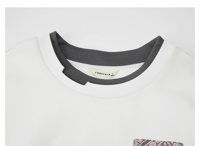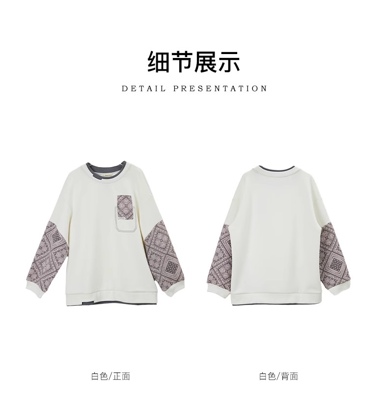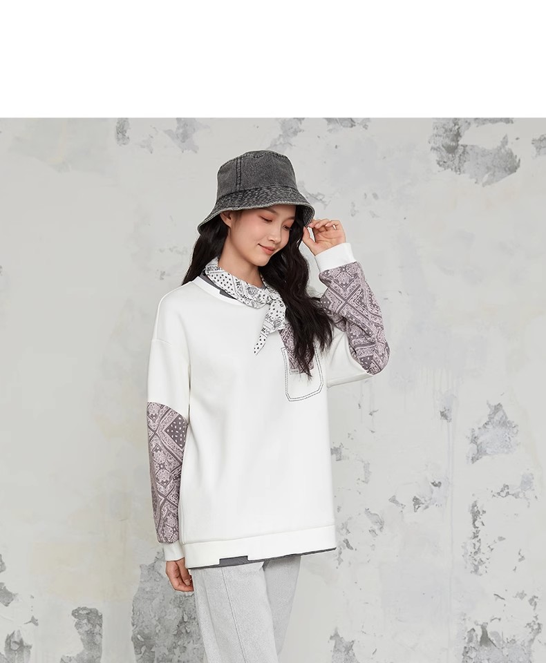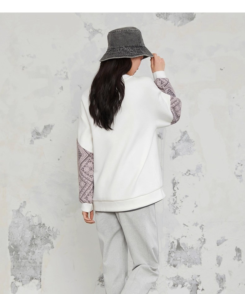 Famecoco范可儿宽松休闲套头卫衣印花拼接袖短款上衣FAB6BL005
