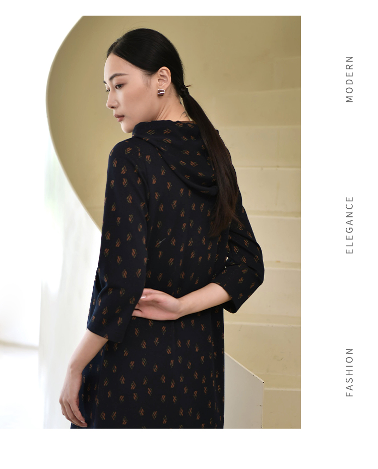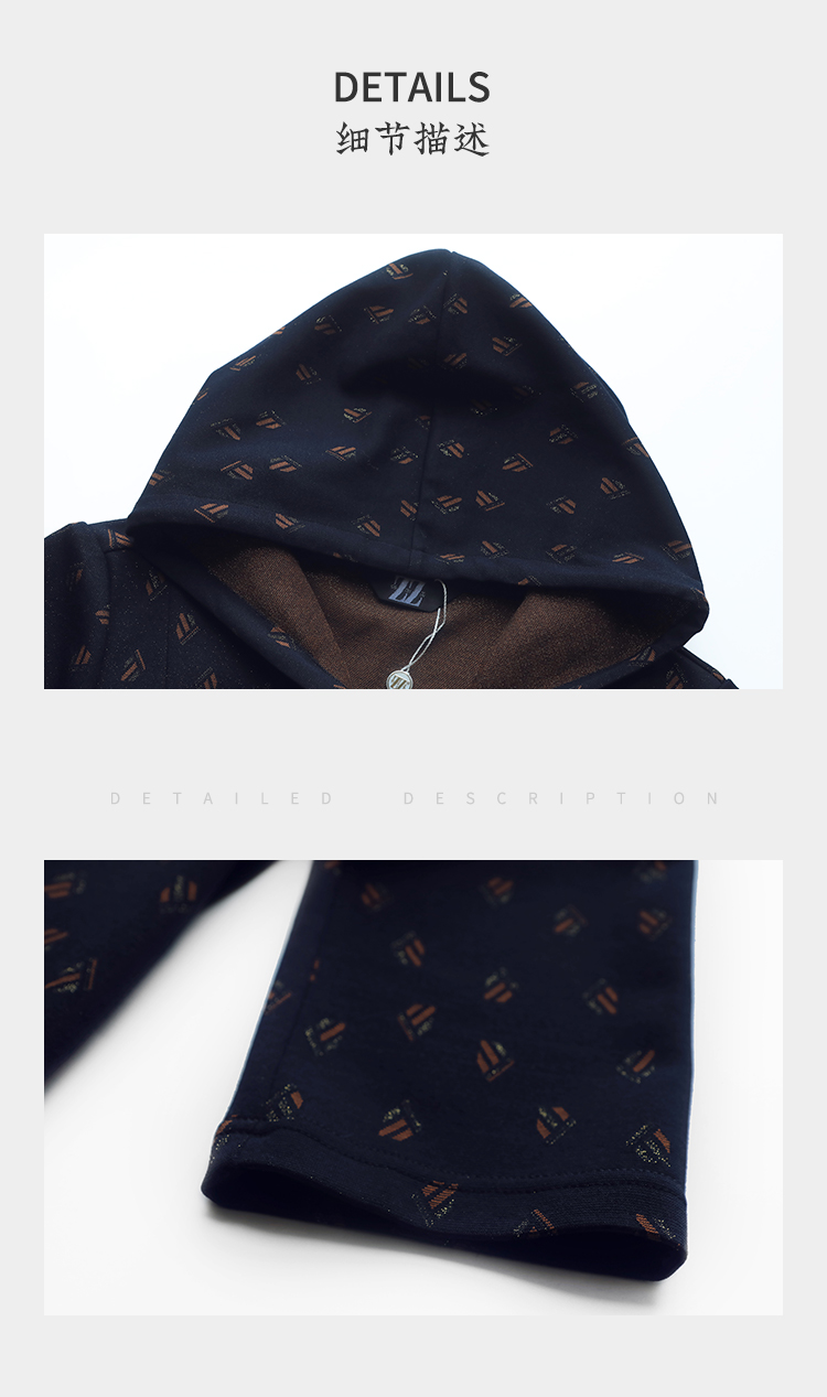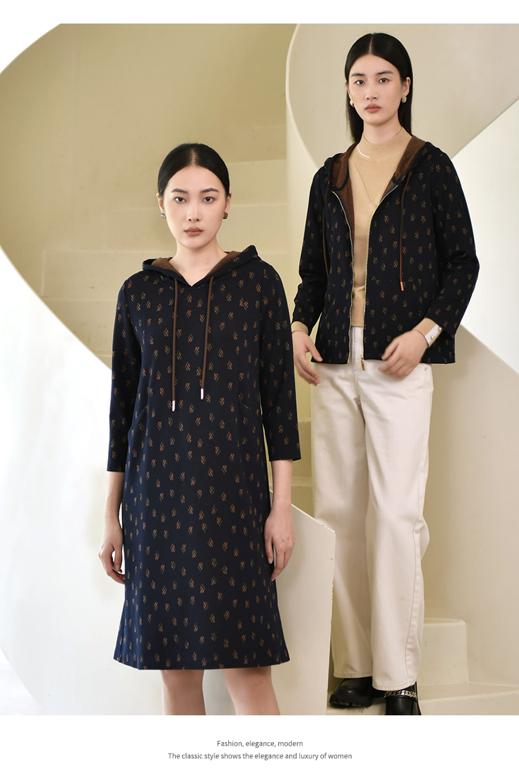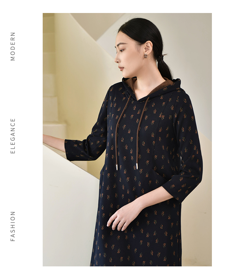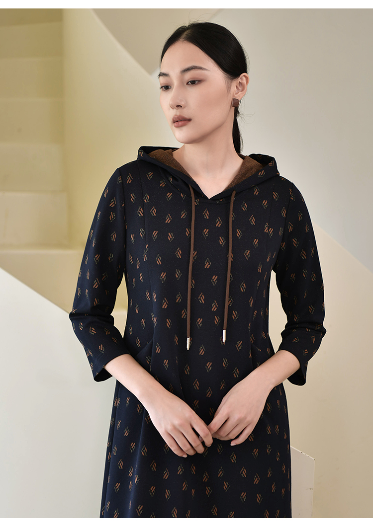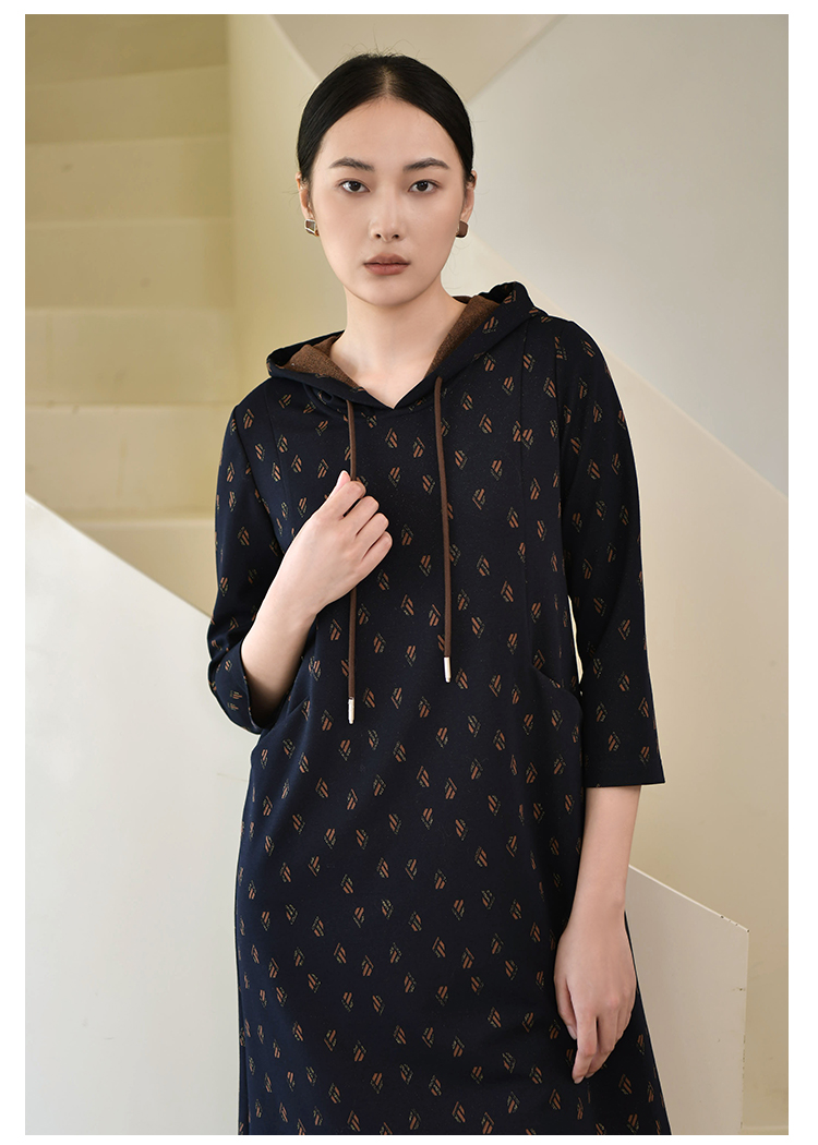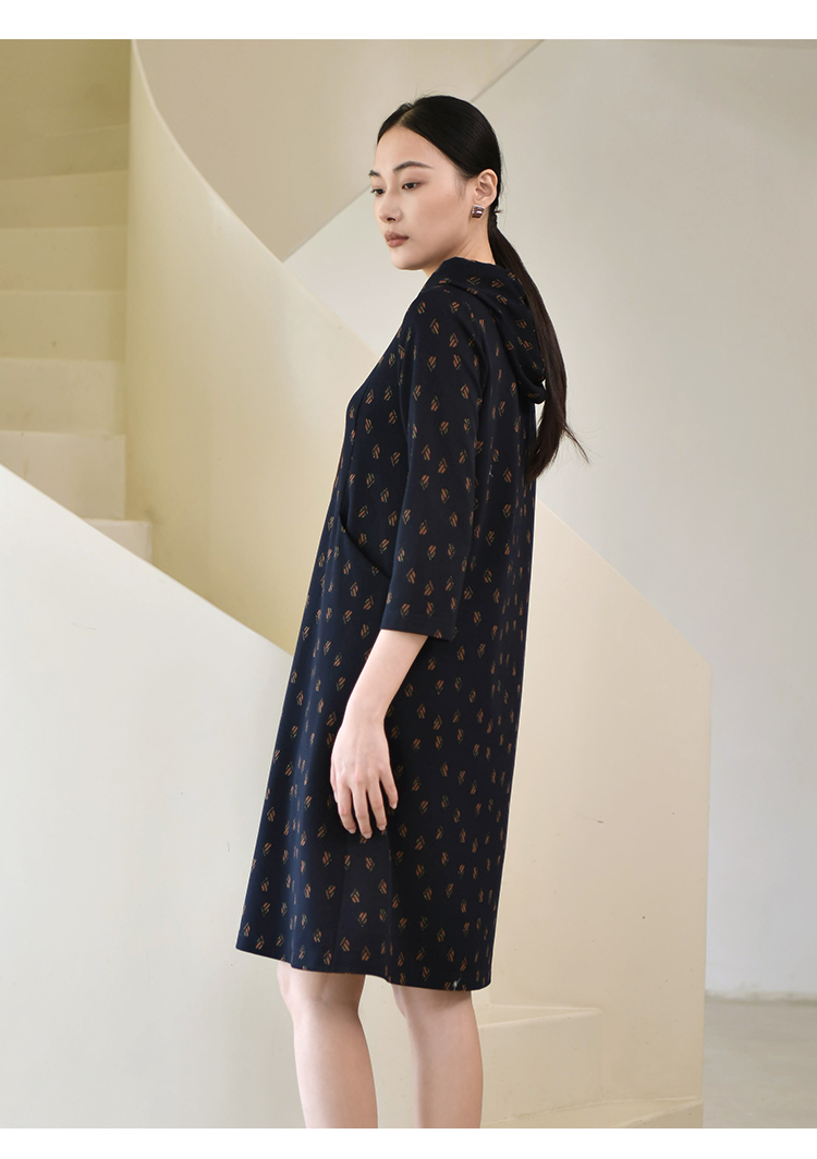 佐尔美2022秋季新款 连帽卫衣裙碎纹图案中长连衣裙女E23LL30