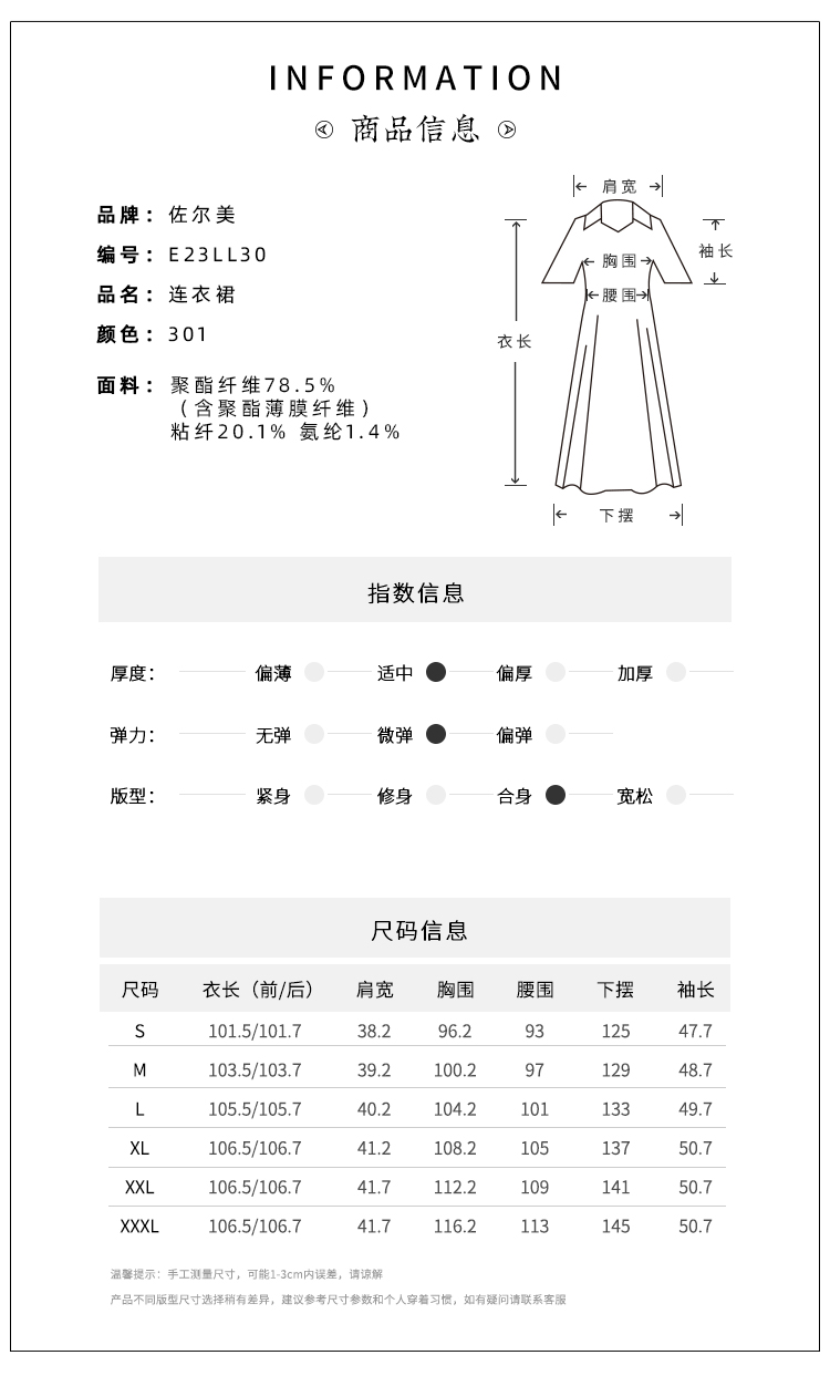 佐尔美春秋女装印花绣花修身显瘦度假风九分袖连衣裙E71LL11