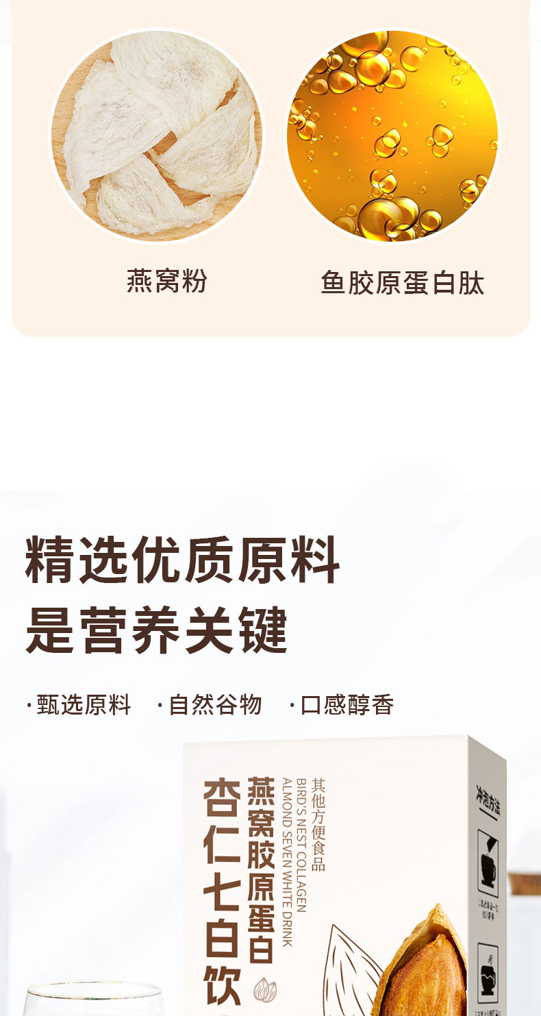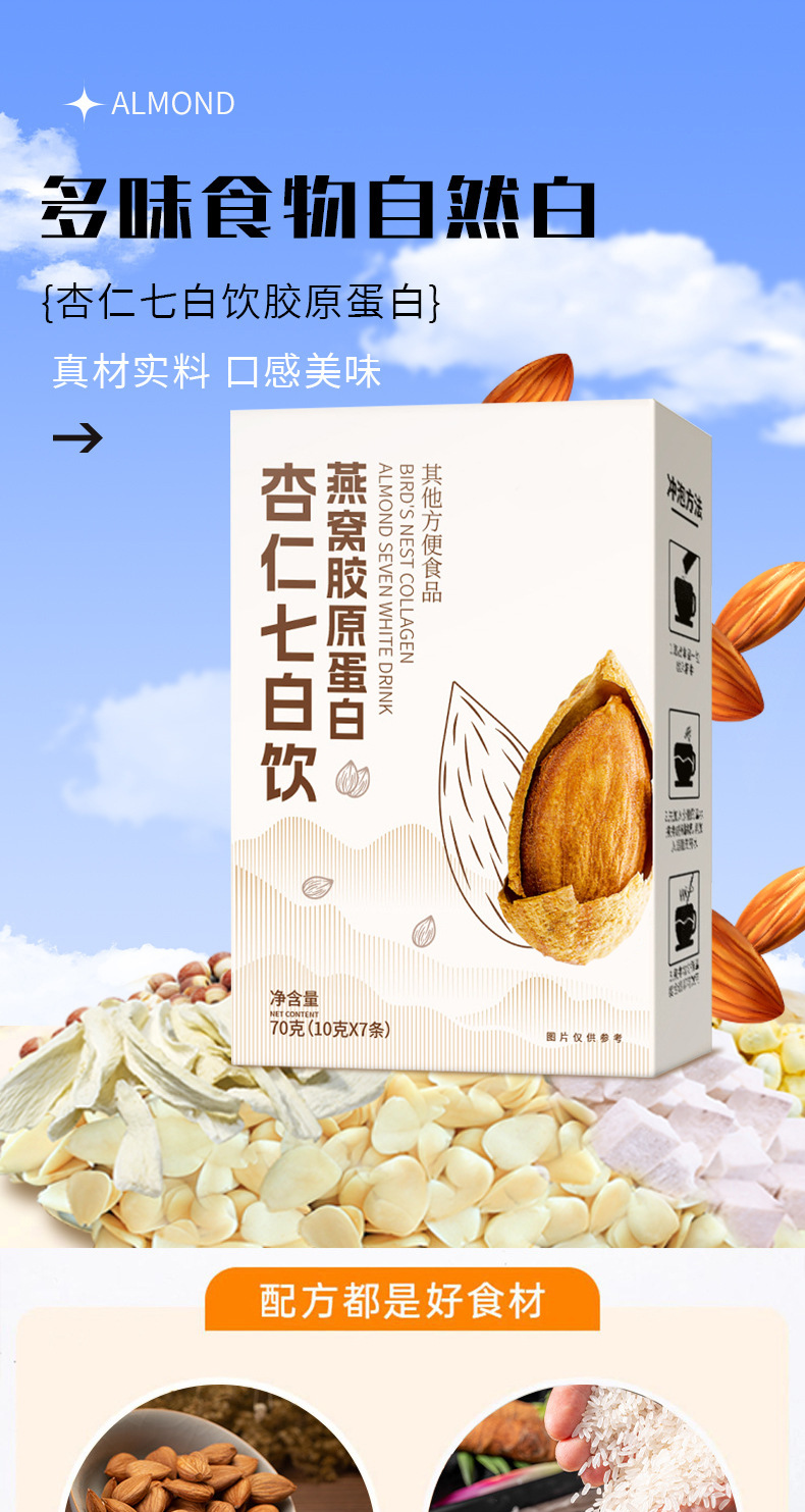 【逆袭冷白皮!杏仁七白饮】 杏仁七白饮胶原蛋白,自然谷物甄选原料,浓郁清甜 口感醇厚细腻,独立便携包装,营养冲调早餐代餐粉Y