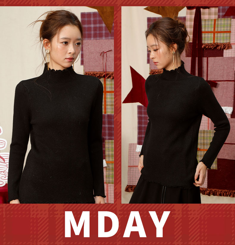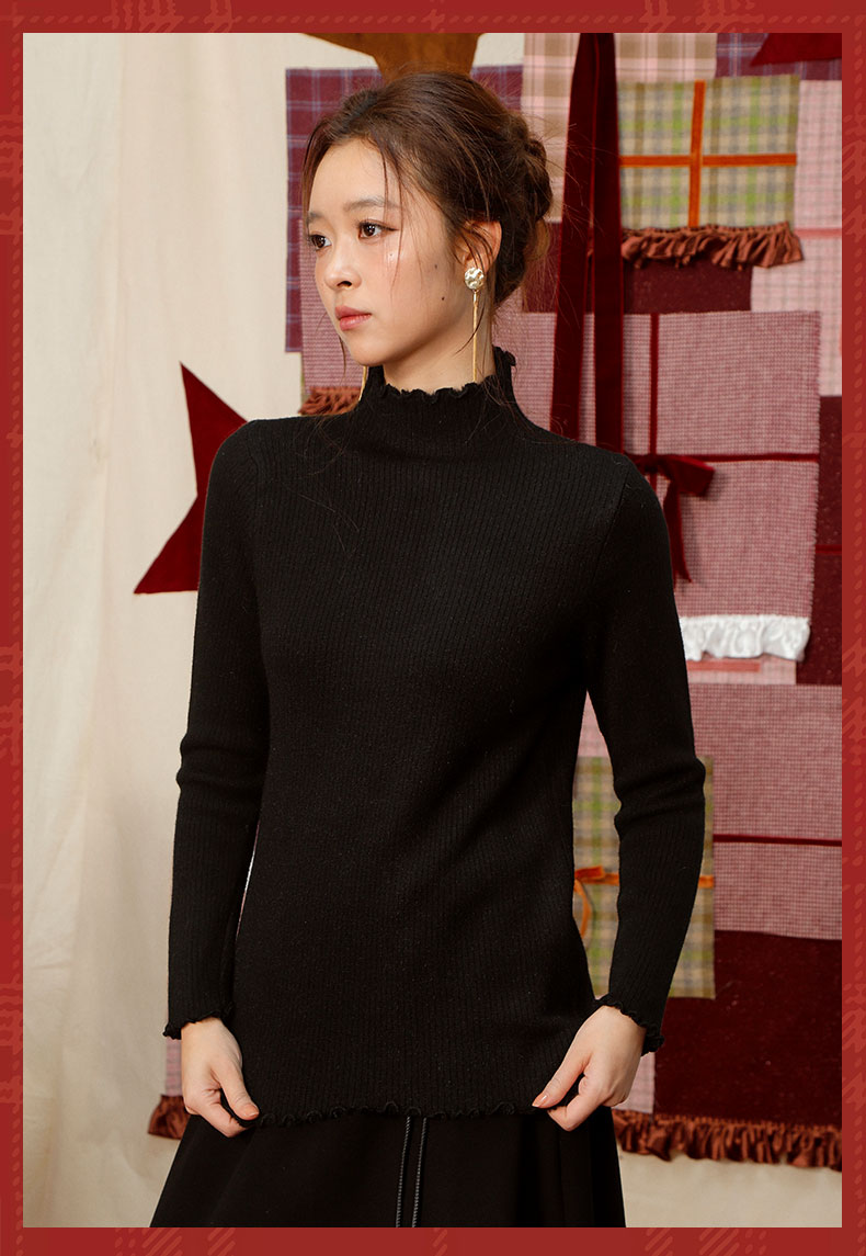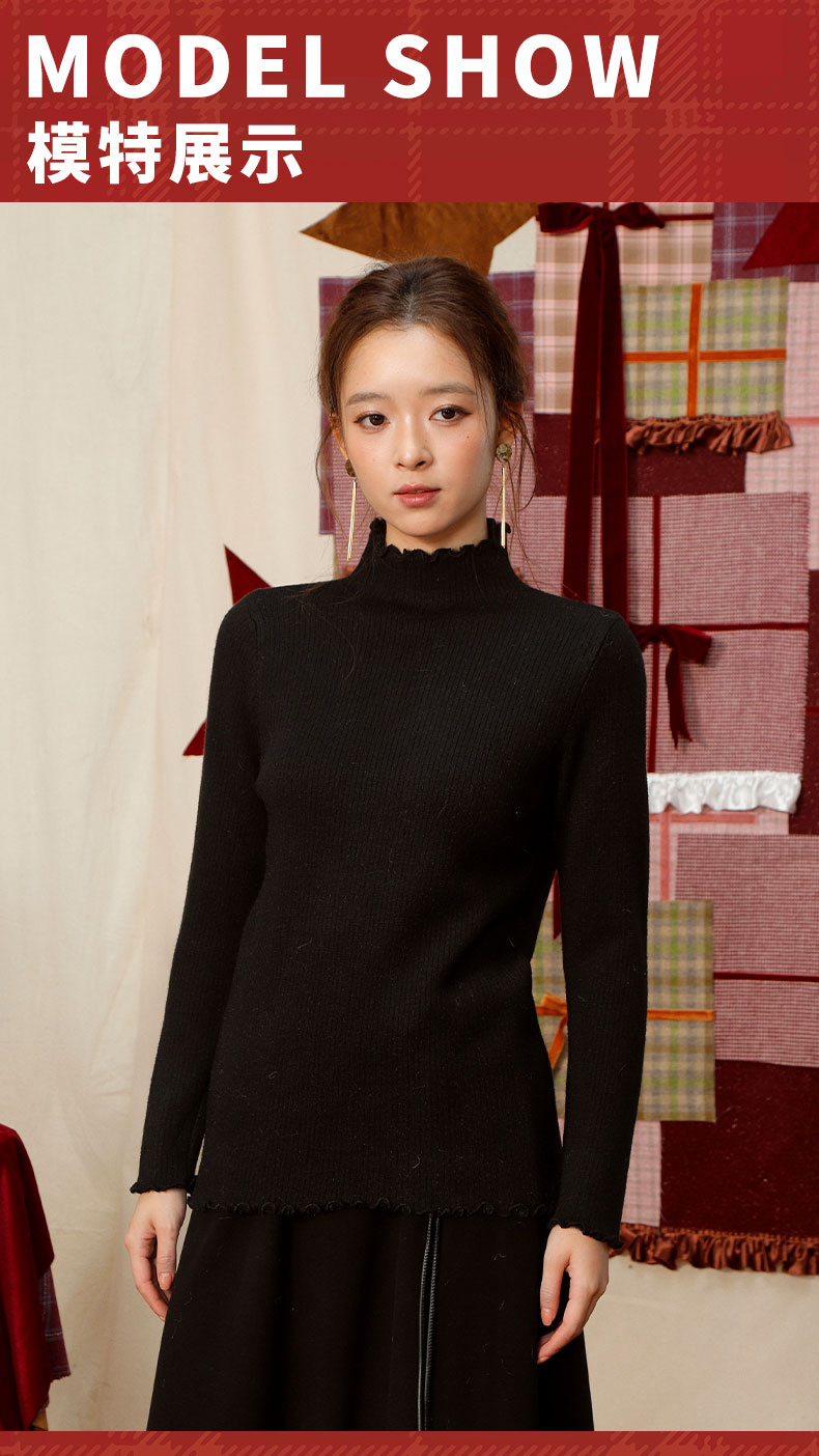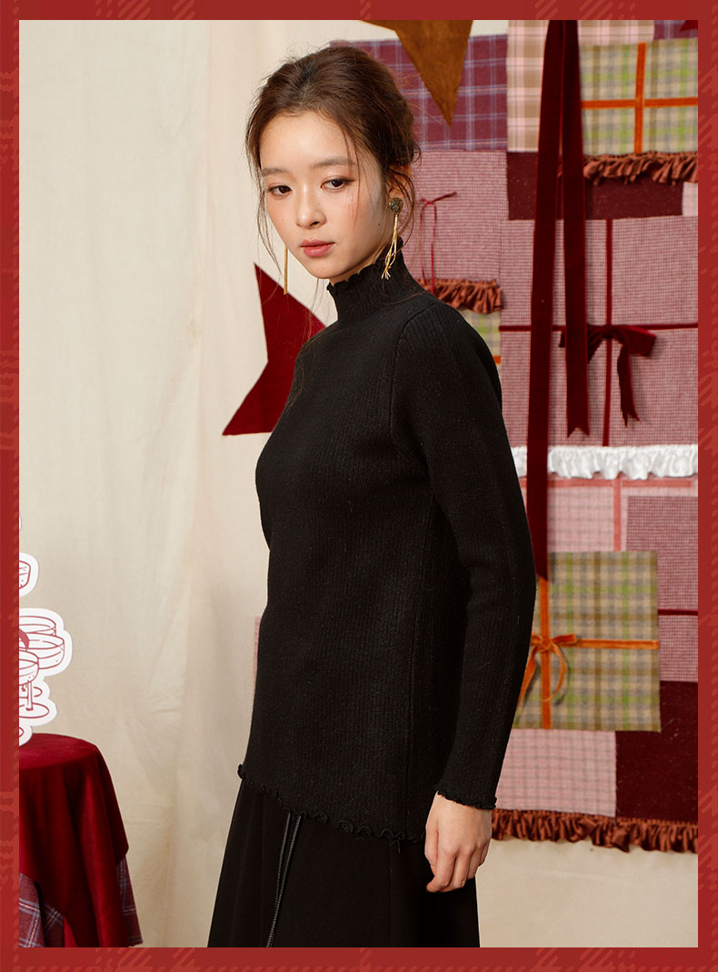 【礼物季】软糯木耳边中领针织衫打底衫-纪念日百货门店同款167448659