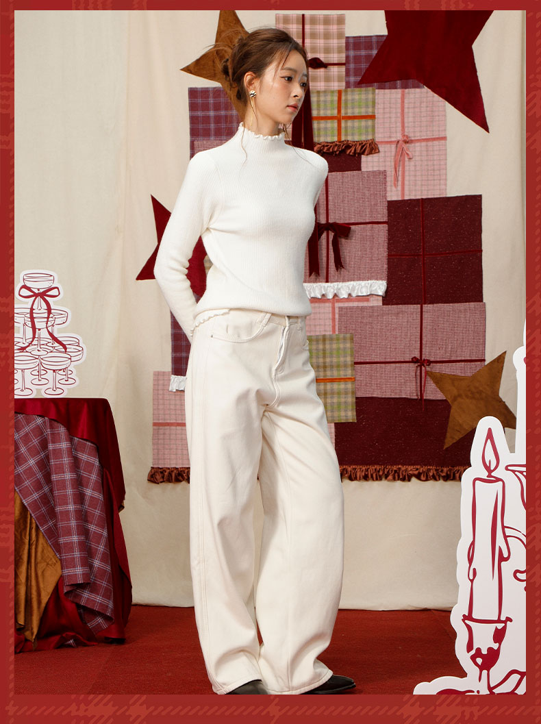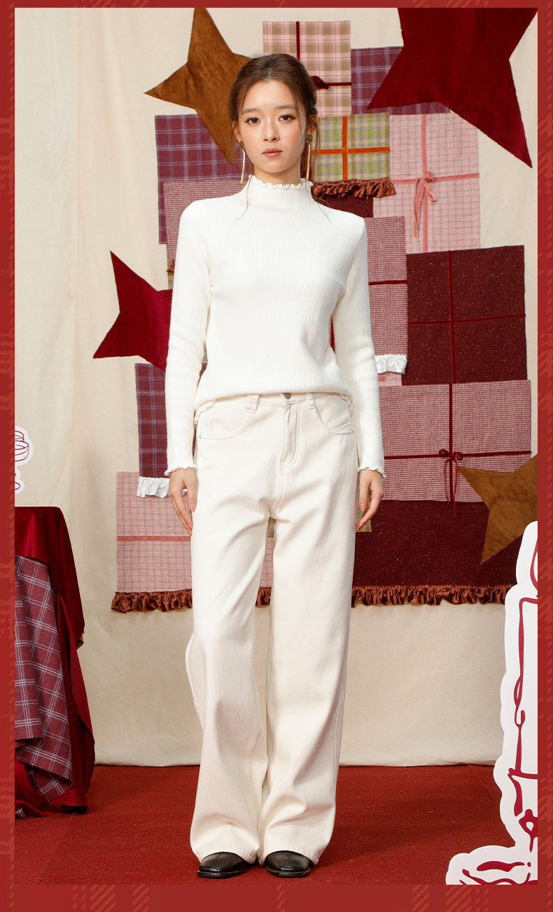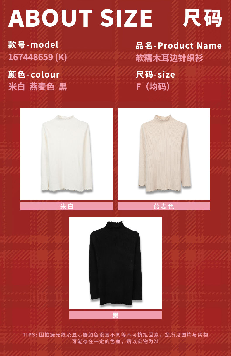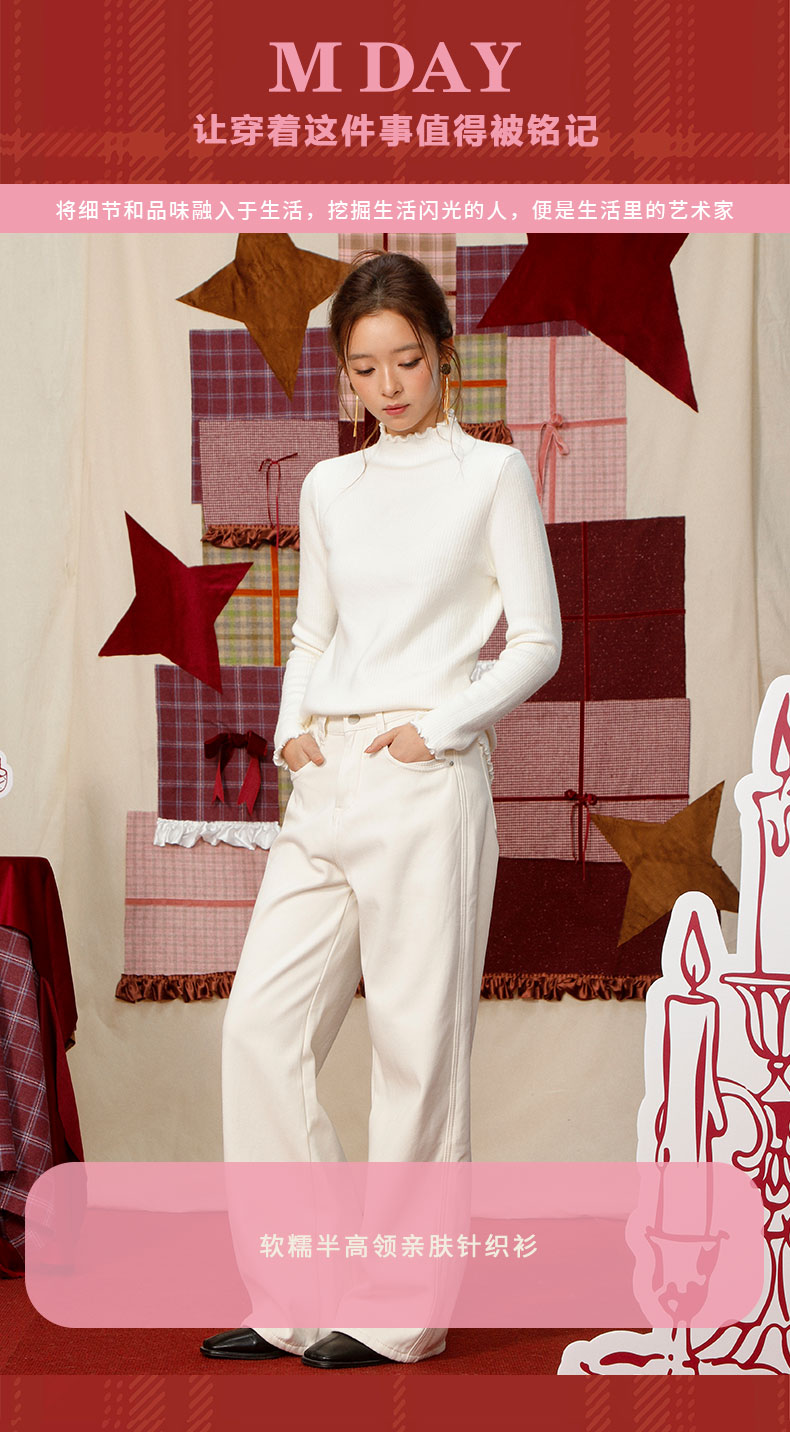 【礼物季】软糯木耳边中领针织衫打底衫-纪念日百货门店同款167448659