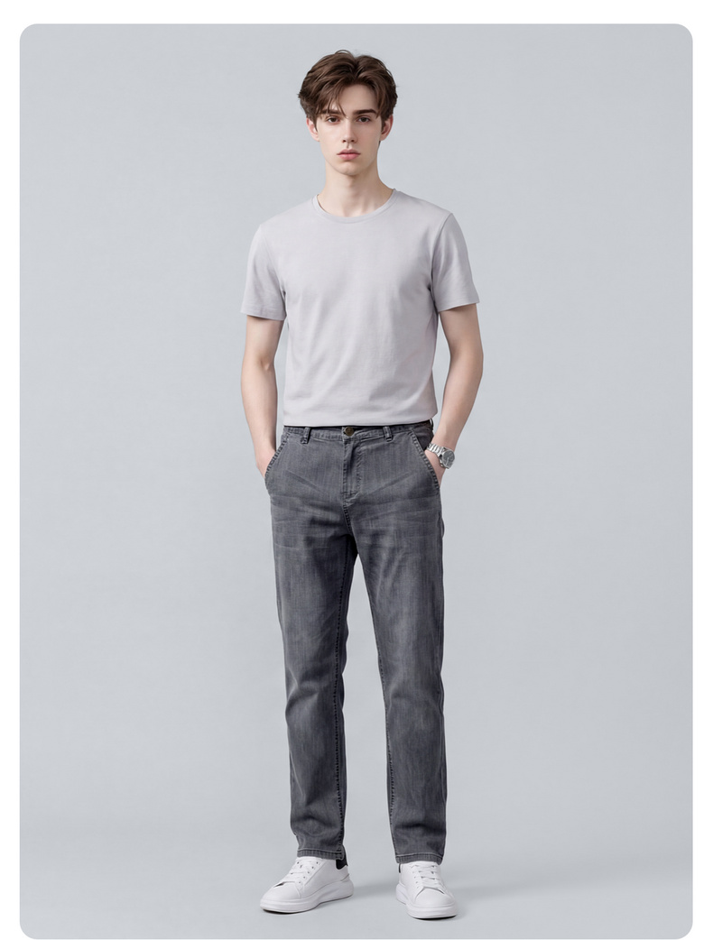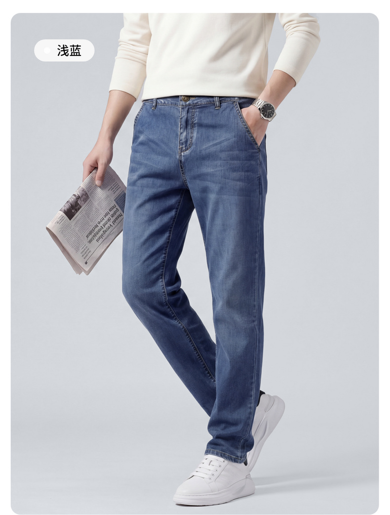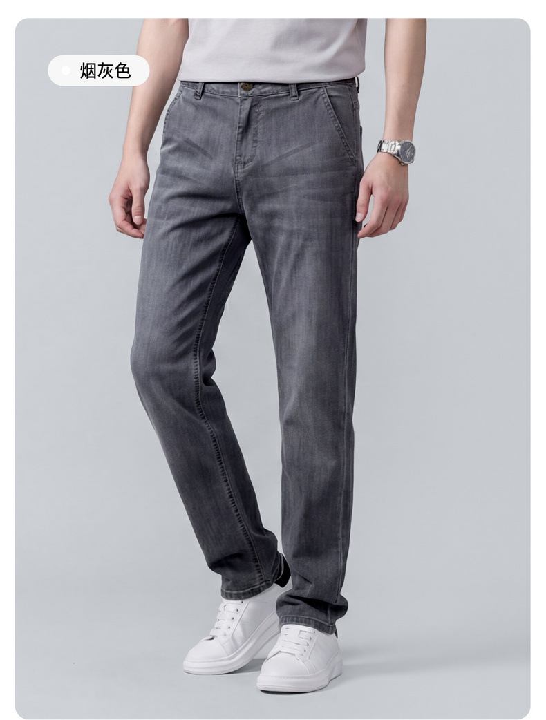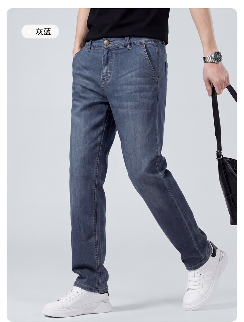 【含莱赛尔]圣得西柔滑垂顺牛仔裤男款2026新款春季修身百搭长裤