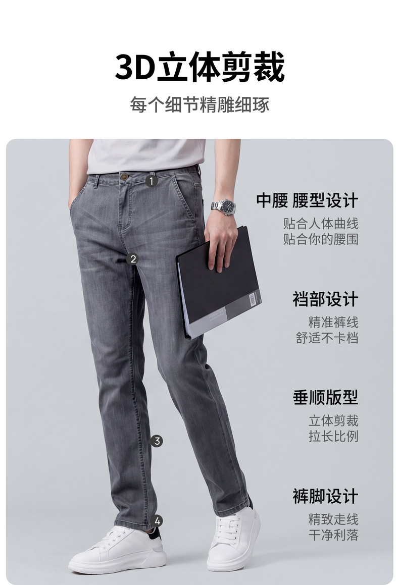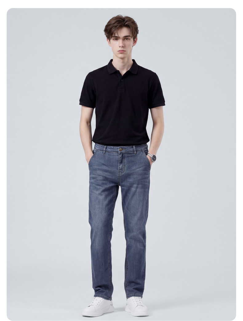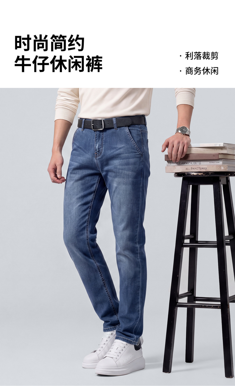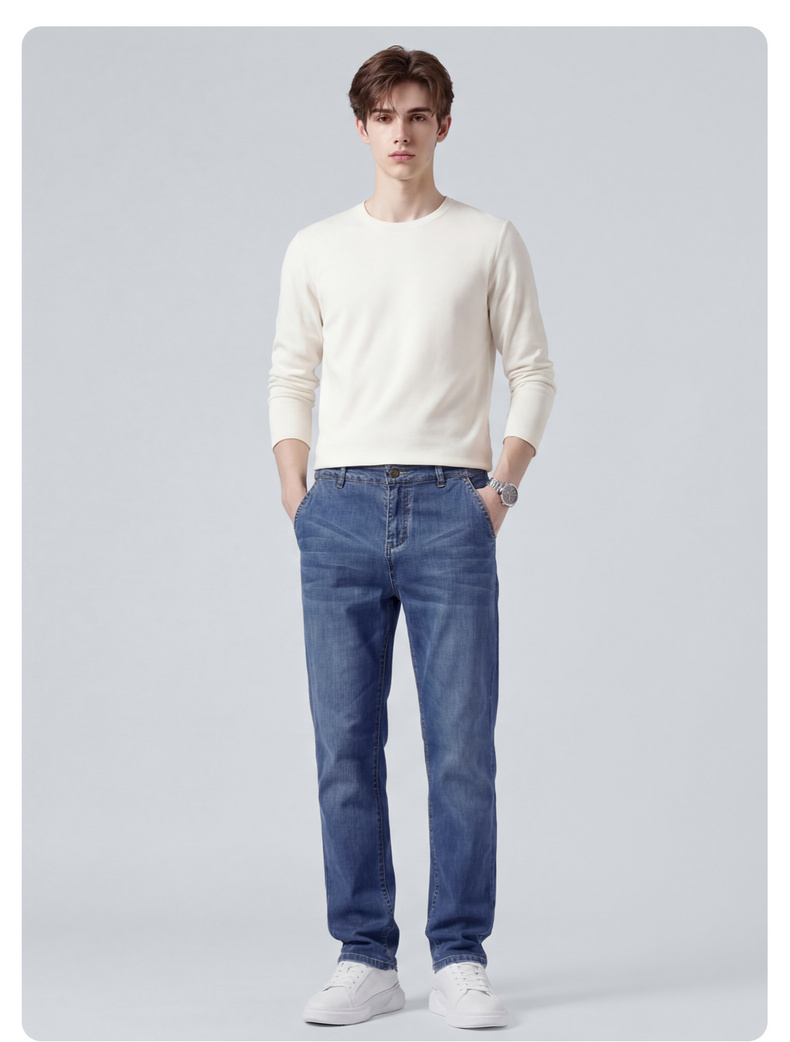 【含莱赛尔]圣得西柔滑垂顺牛仔裤男款2026新款春季修身百搭长裤