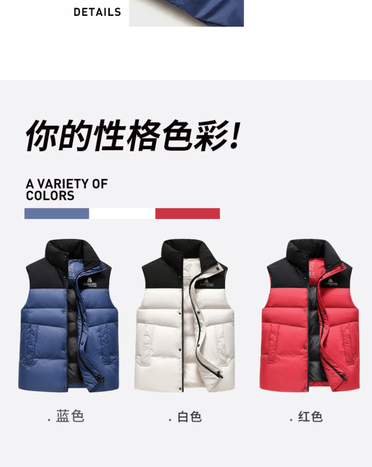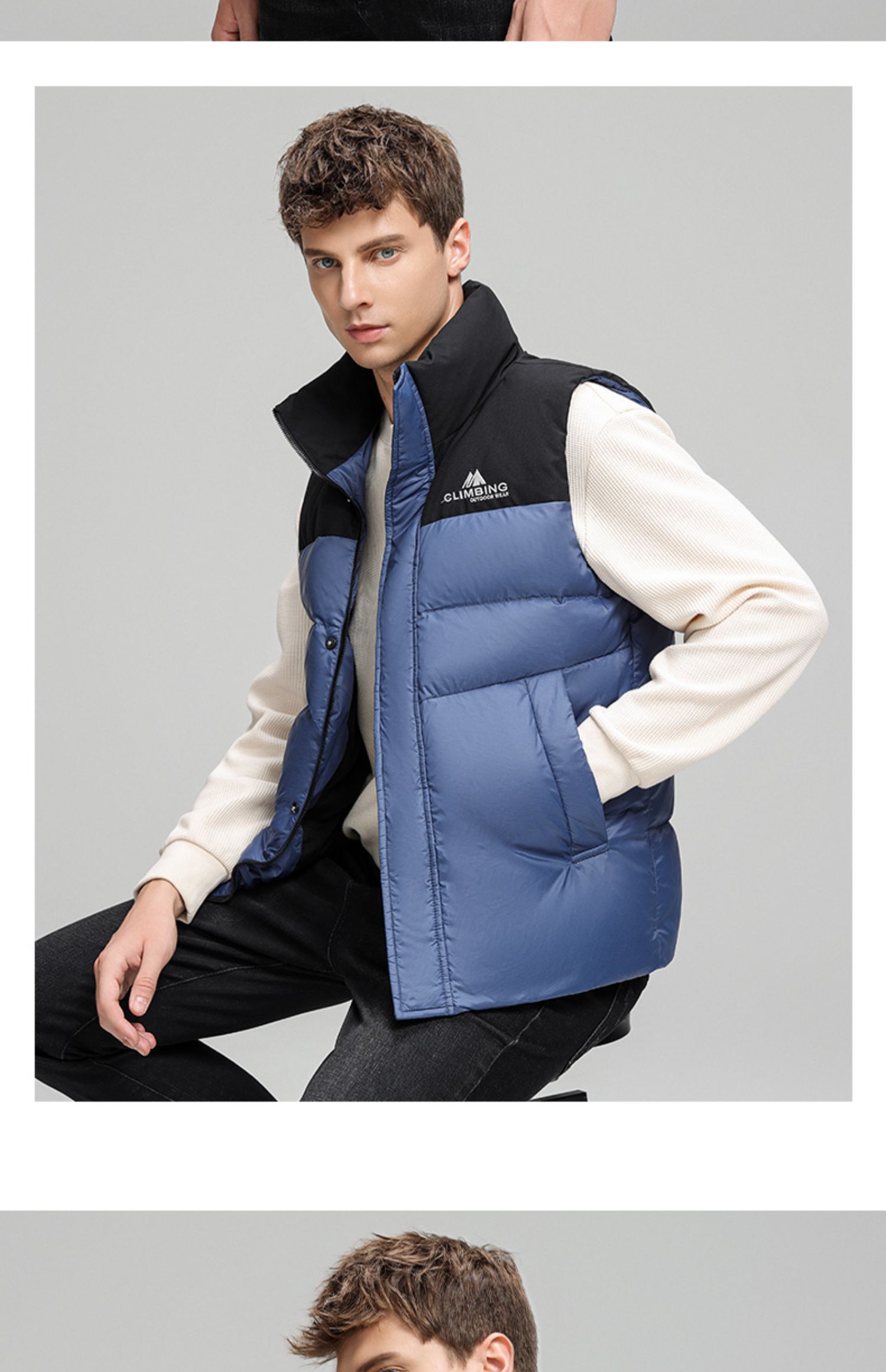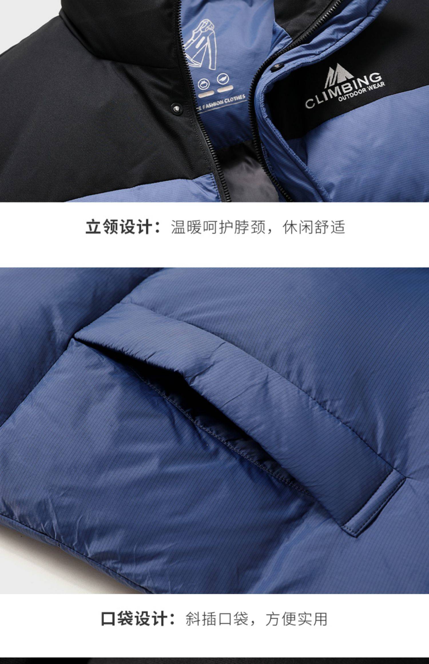 圣得西男装时尚拼色款立领羽绒背心2362943706