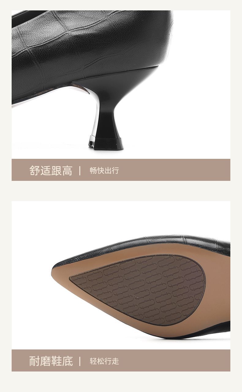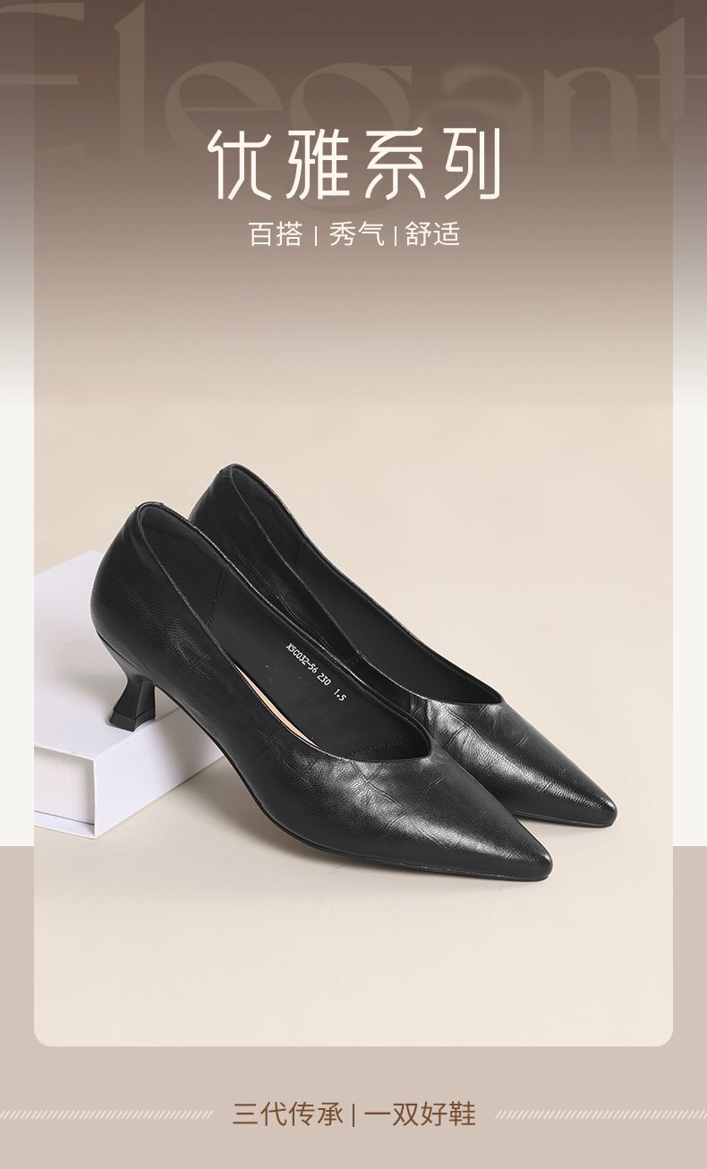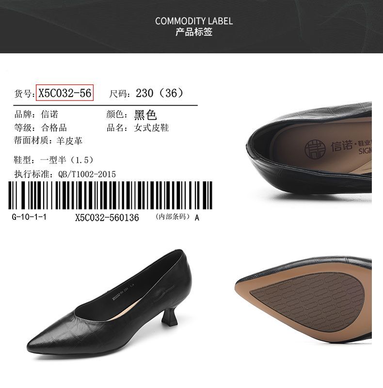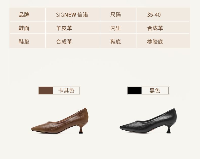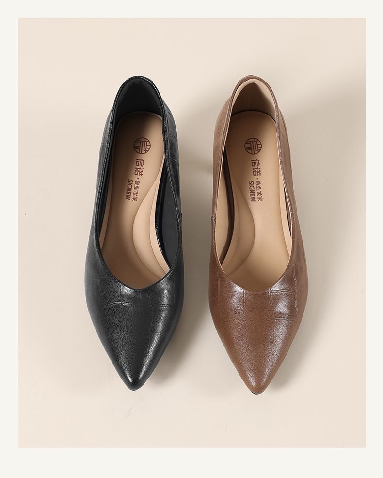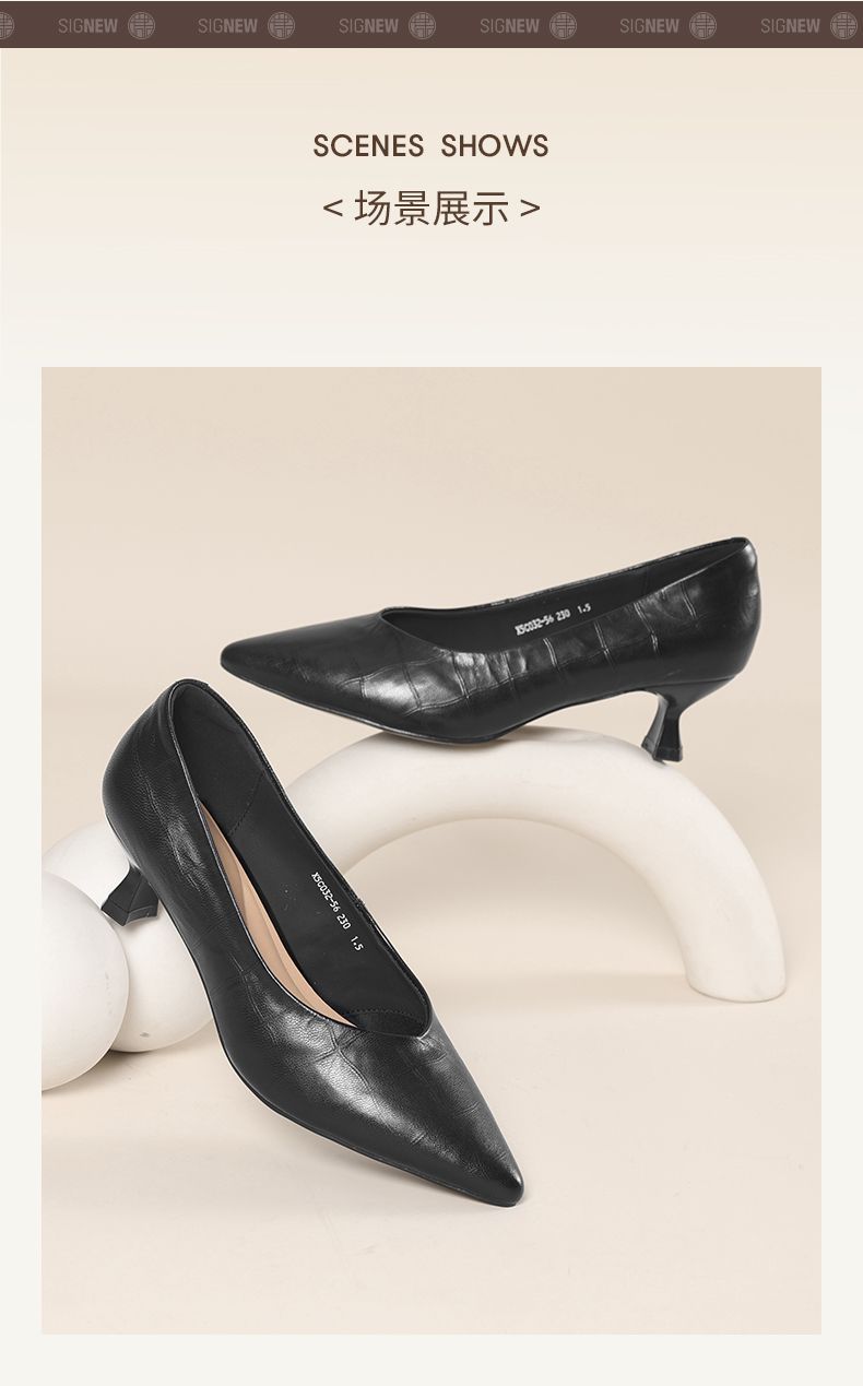 信诺软皮不累高跟鞋2025新款尖头工作鞋黑色百搭职业工作单鞋皮鞋X5C032-56