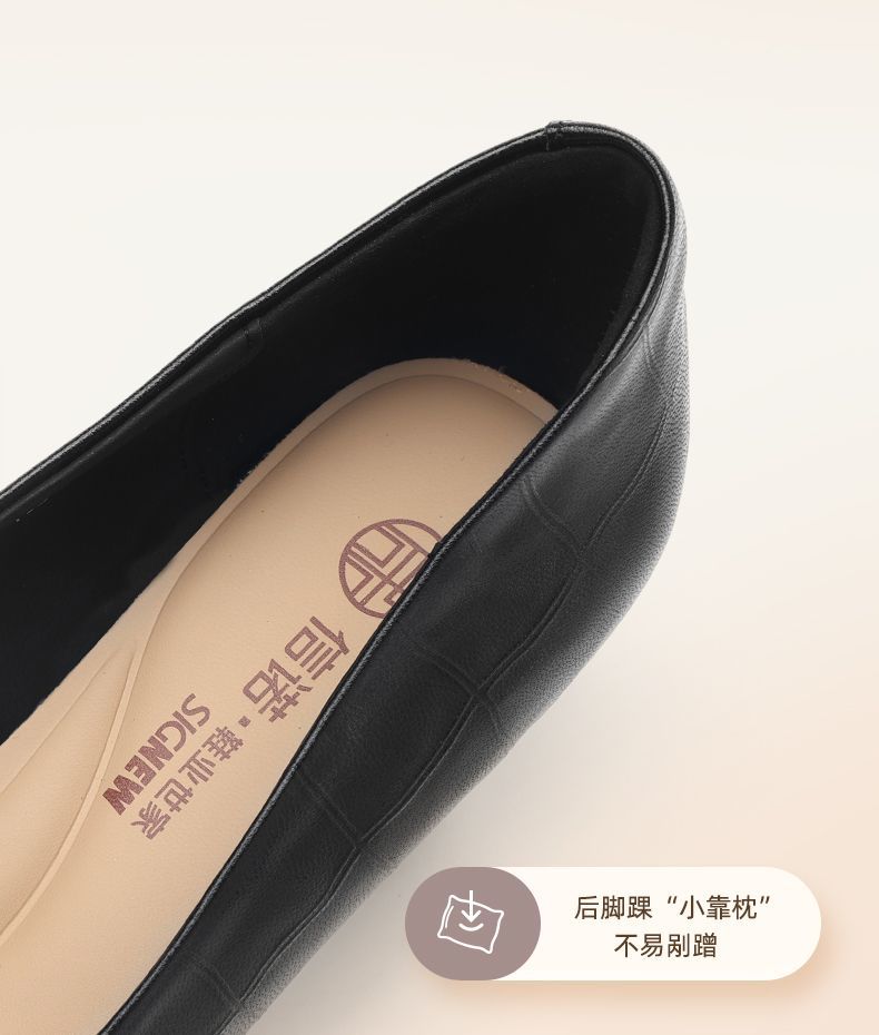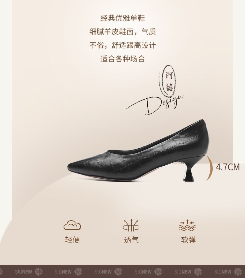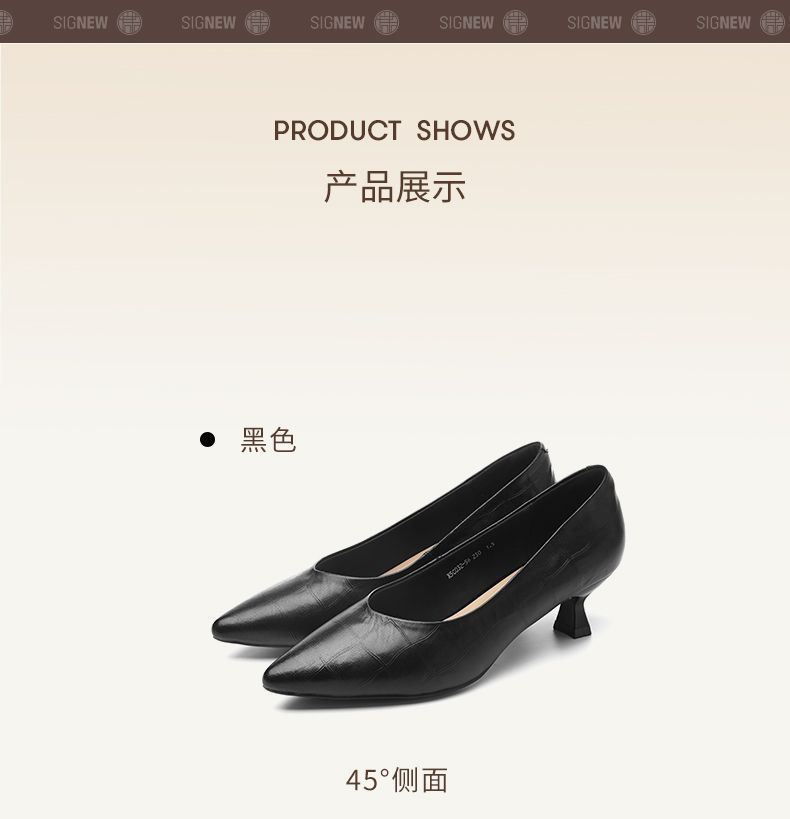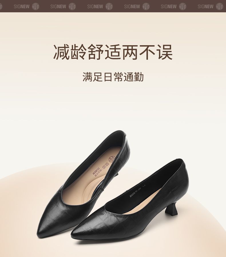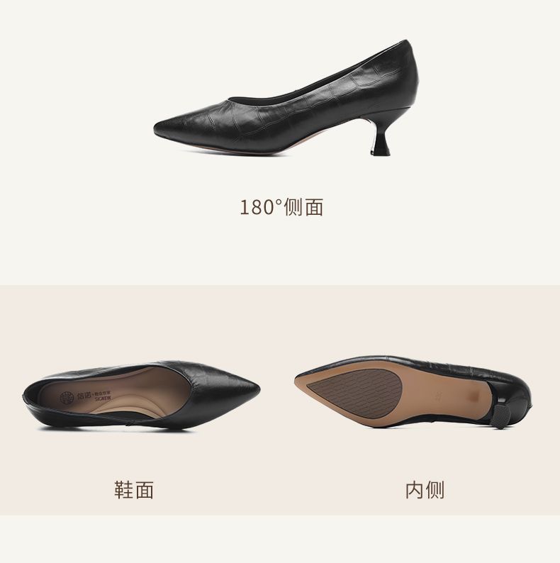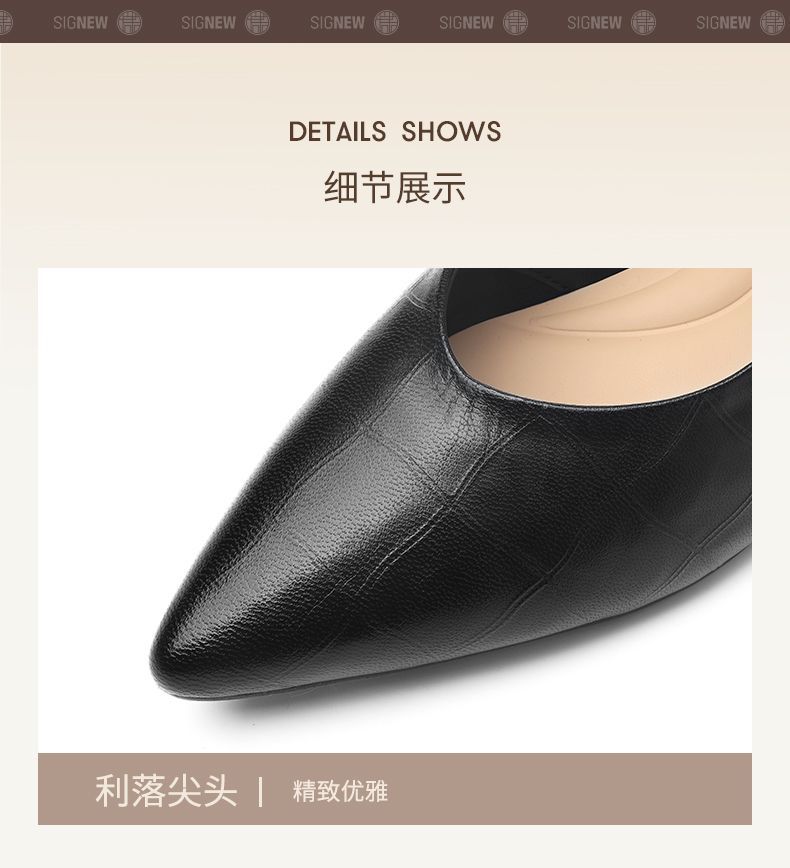 信诺软皮不累高跟鞋2025新款尖头工作鞋黑色百搭职业工作单鞋皮鞋X5C032-56
