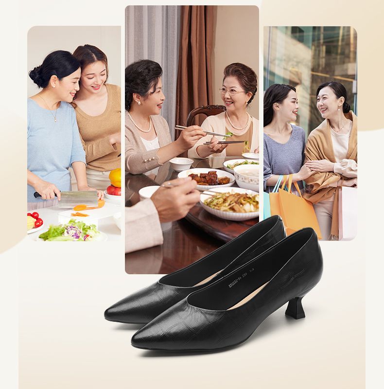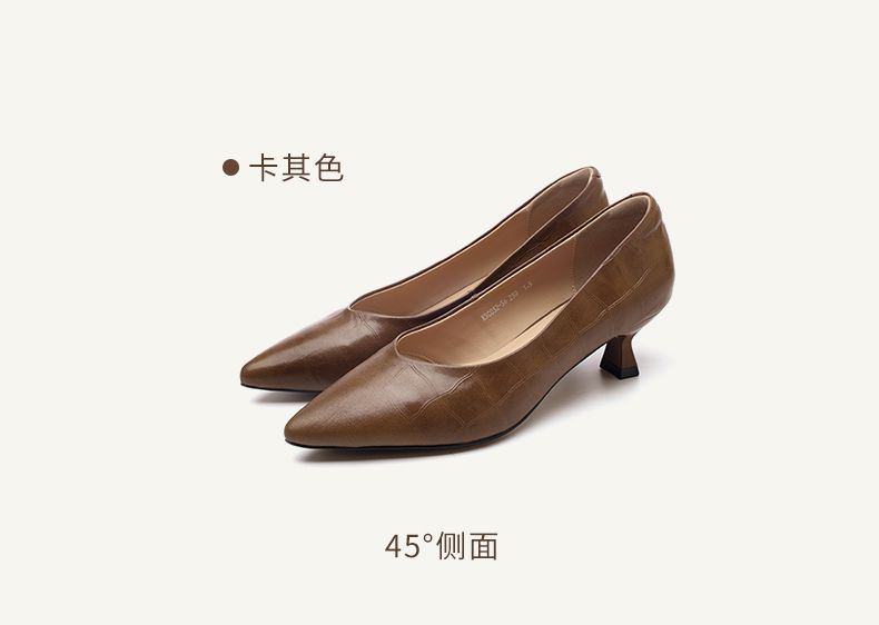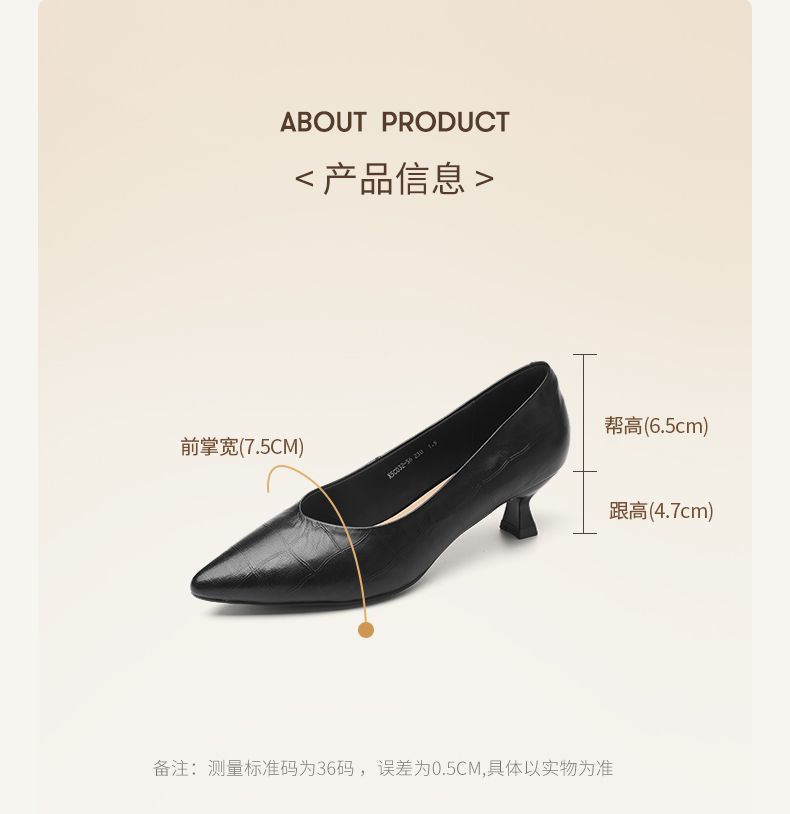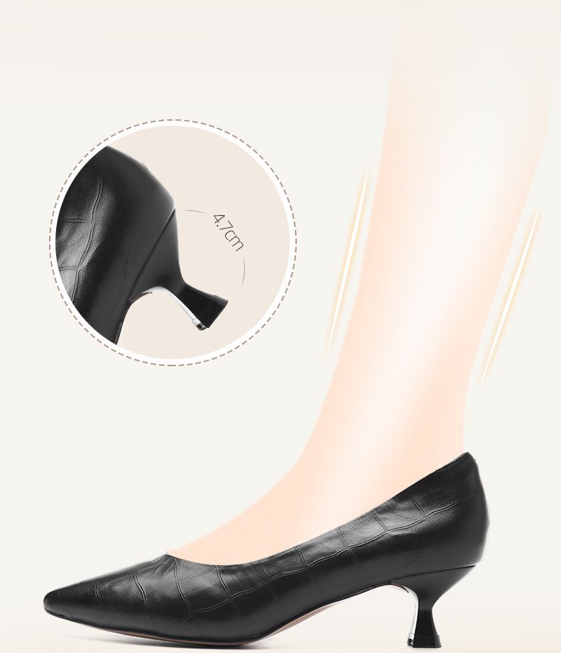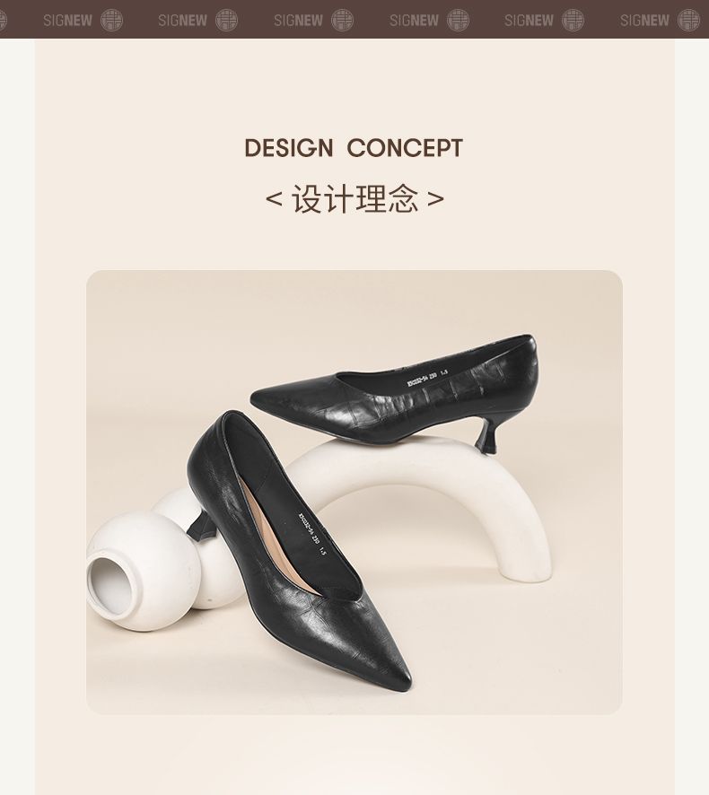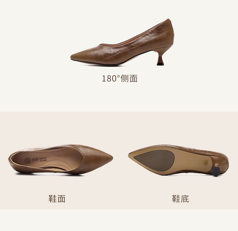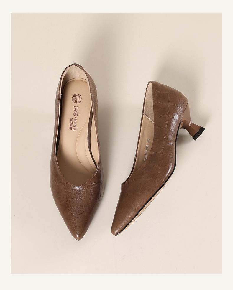 信诺软皮不累高跟鞋2025新款尖头工作鞋黑色百搭职业工作单鞋皮鞋X5C032-56