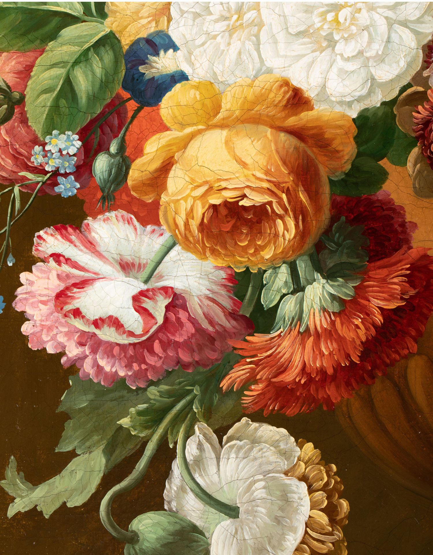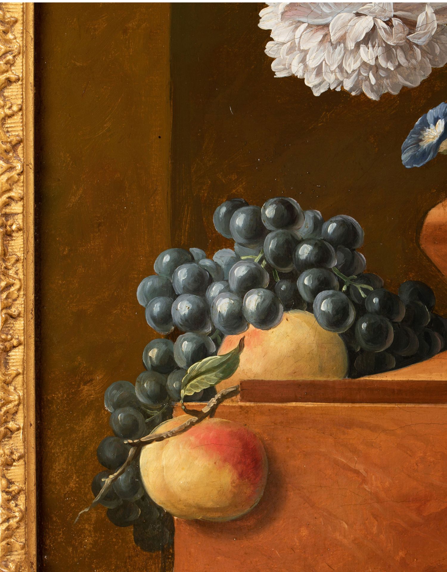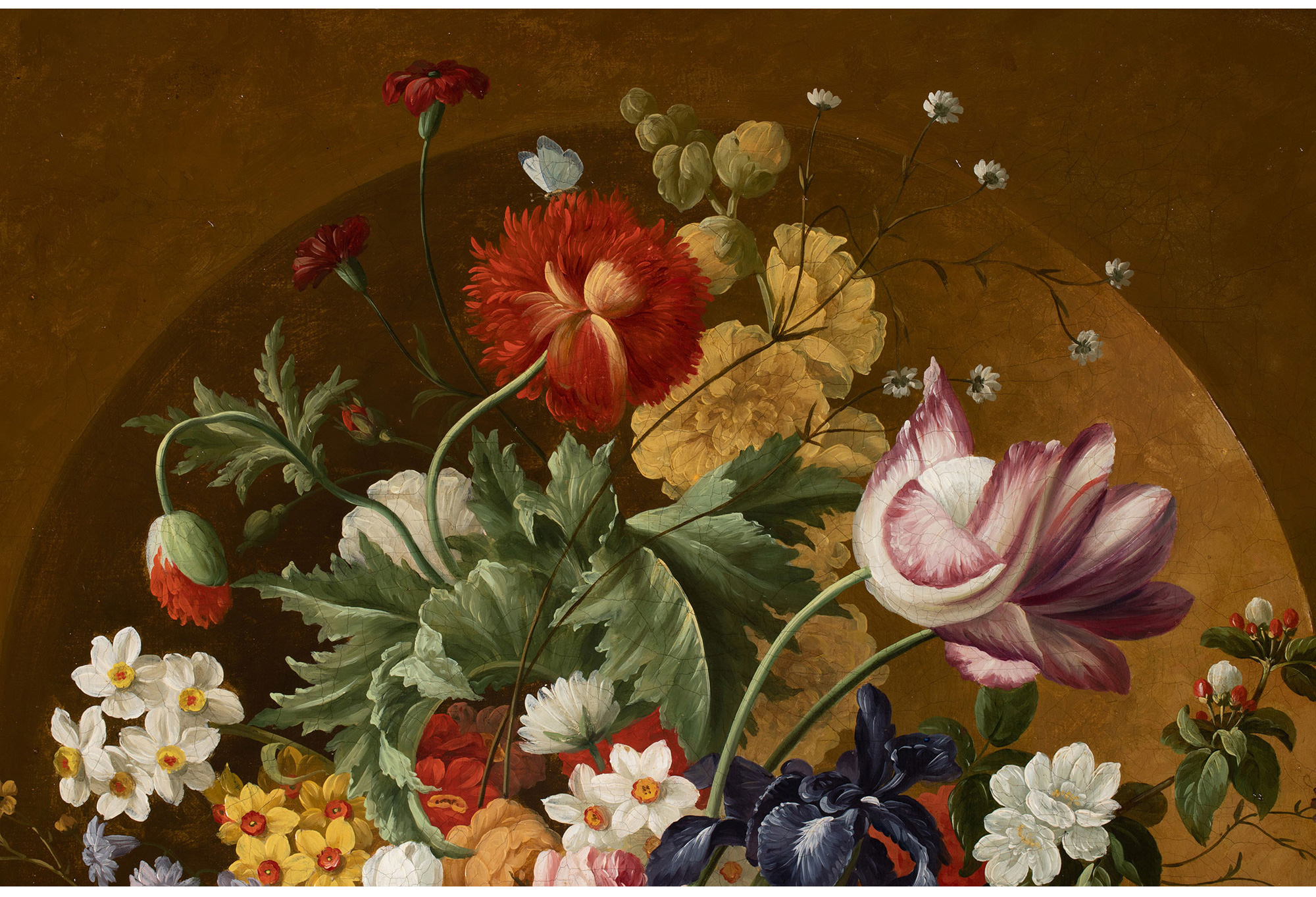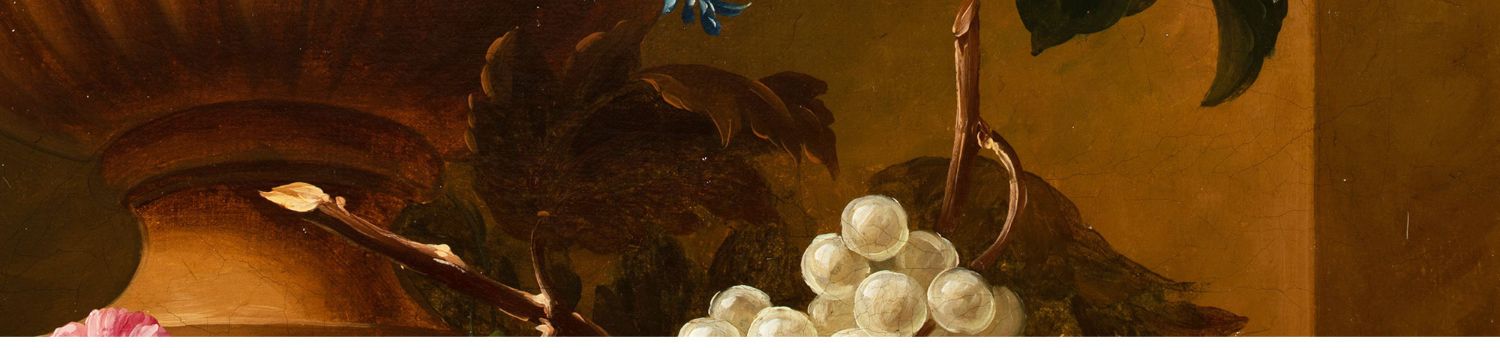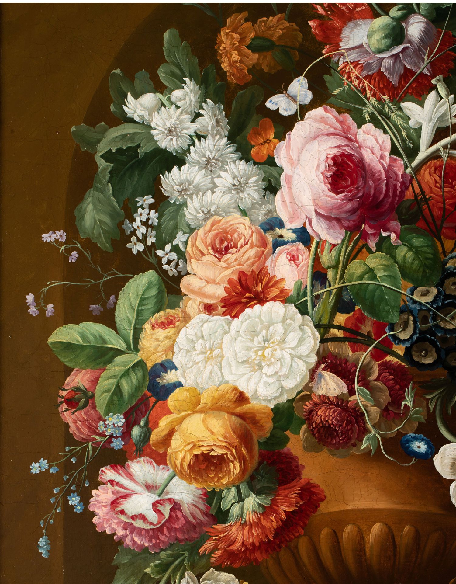 独角鹿西洋古董法国静物画壁龛中的古典花瓶与花卉布面油画⼀对