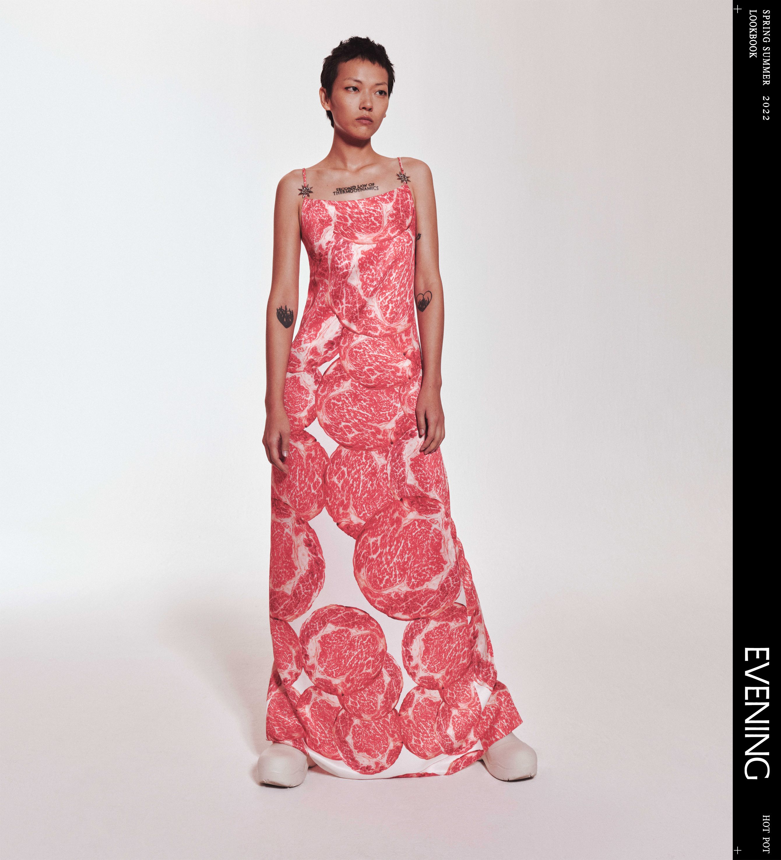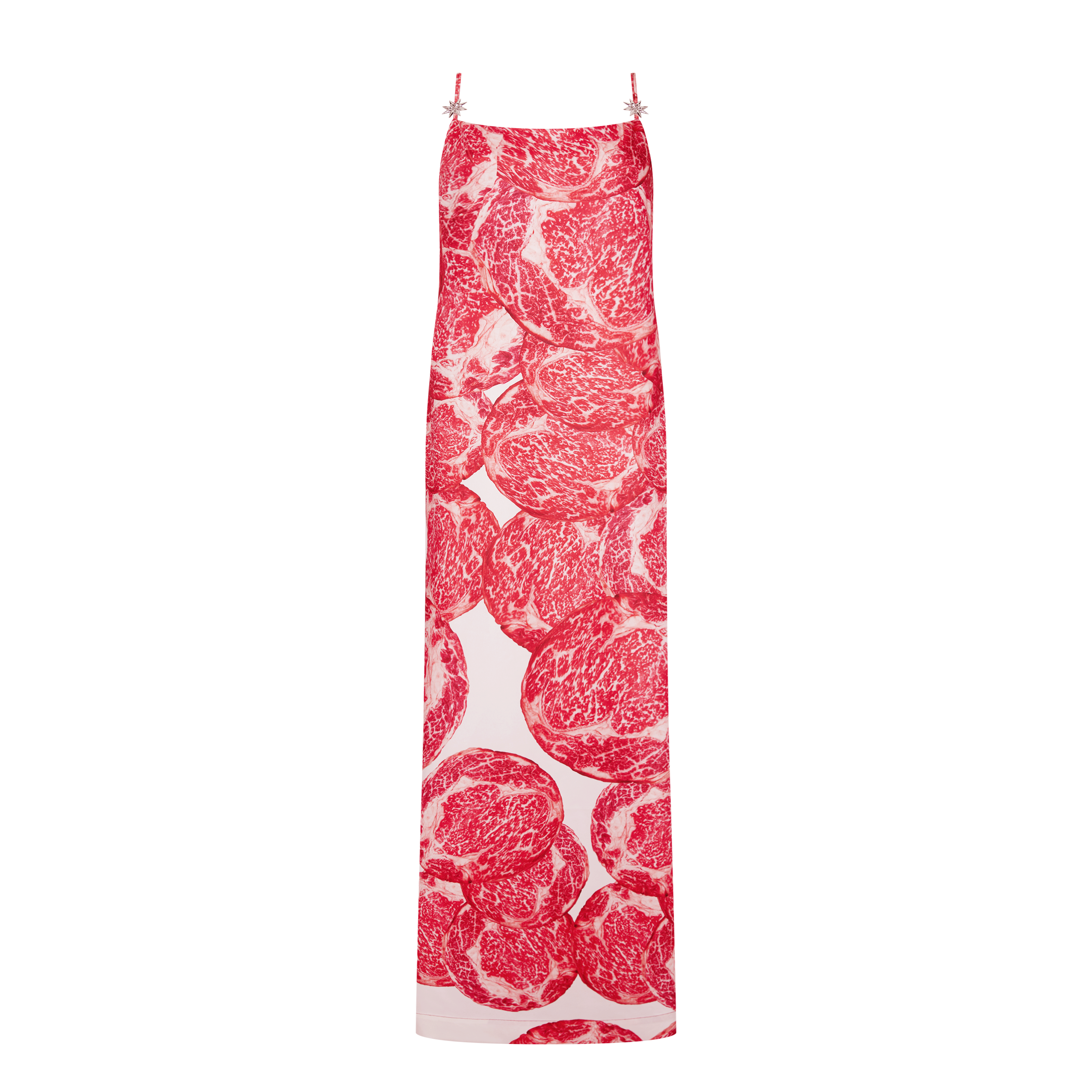 EVENING金属装饰印花长吊带裙
