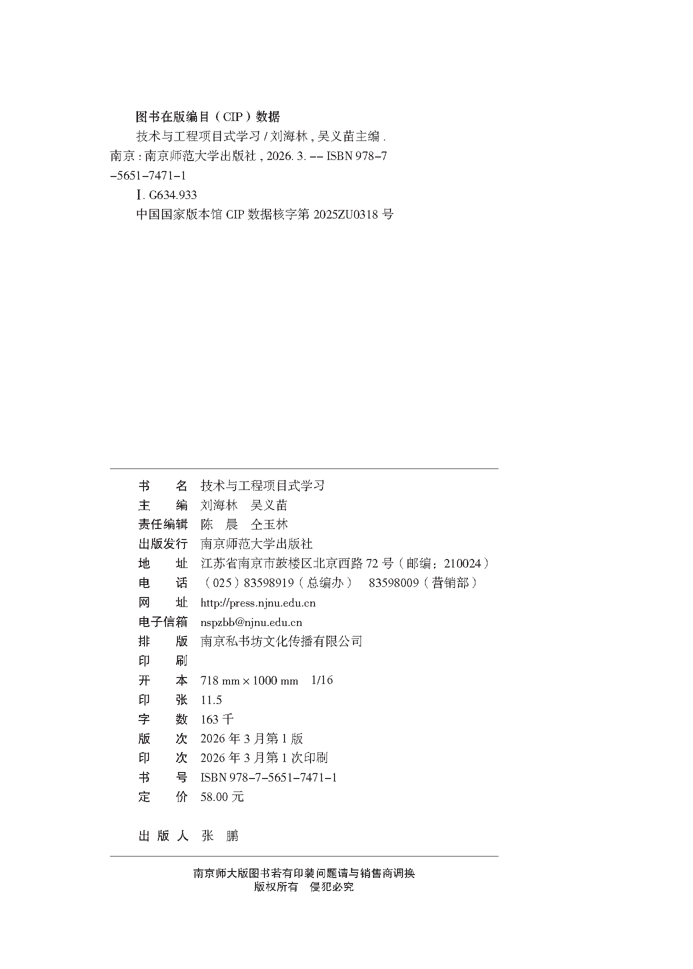 技术与工程项目式学习 刘海林,吴义苗主编 南京师范大学出版社 正版书籍