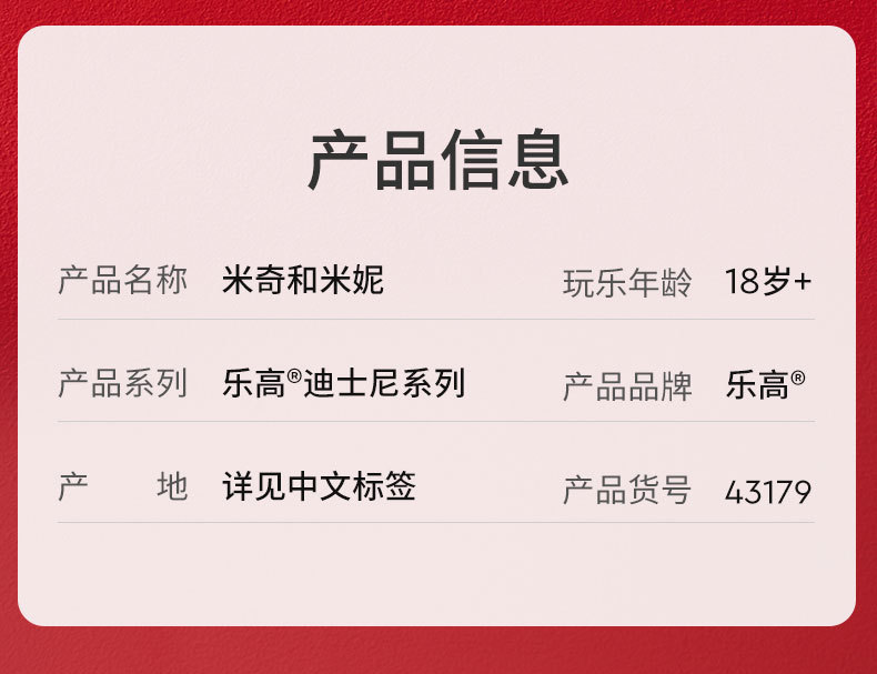 乐高LEGO 迪士尼米奇和米妮 LEGC43179