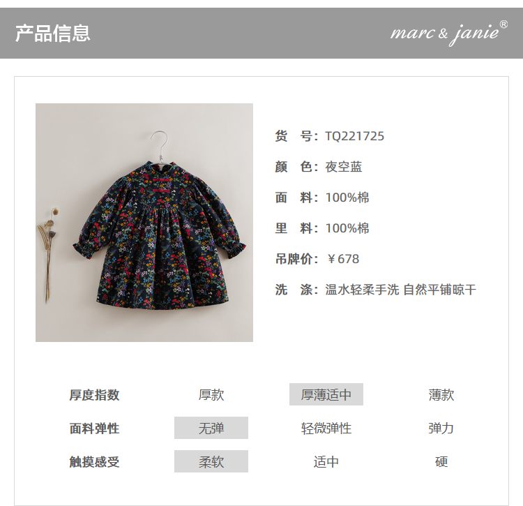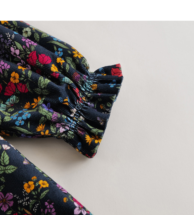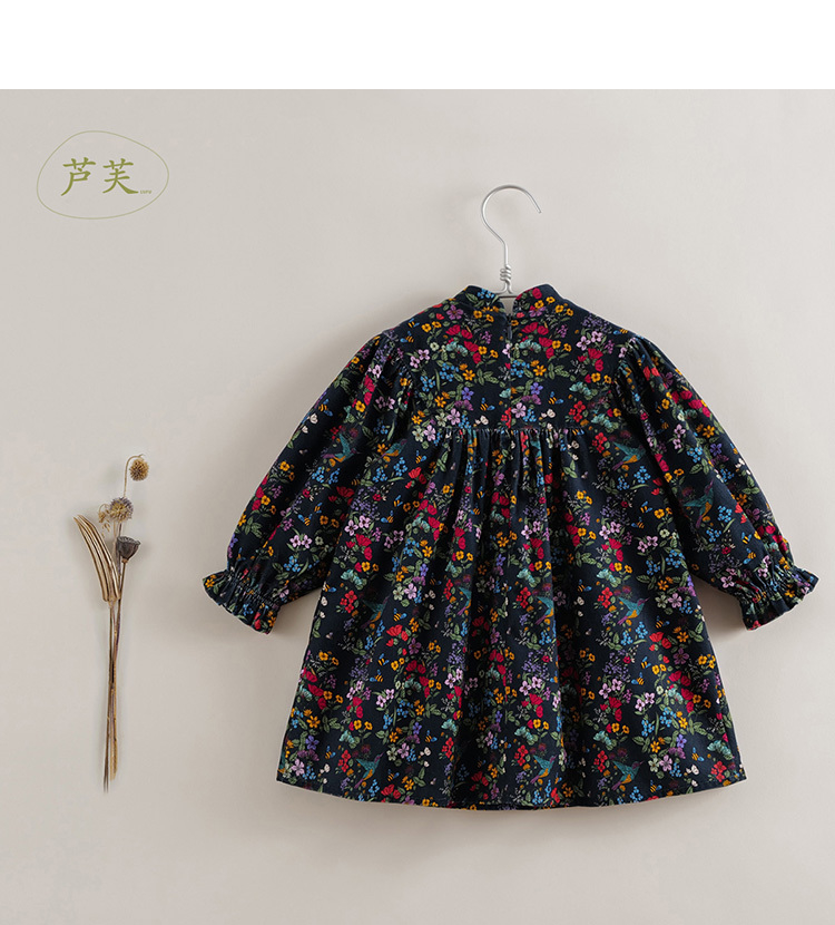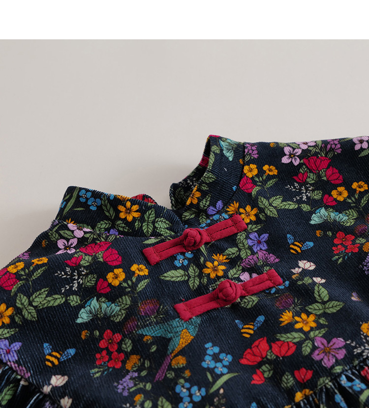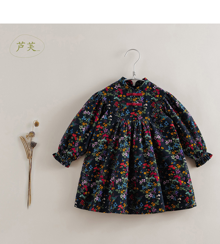 【马克珍妮 中国风】秋冬新款 女童灯芯绒旗袍连衣裙221725