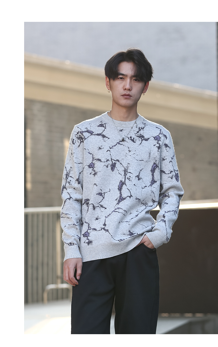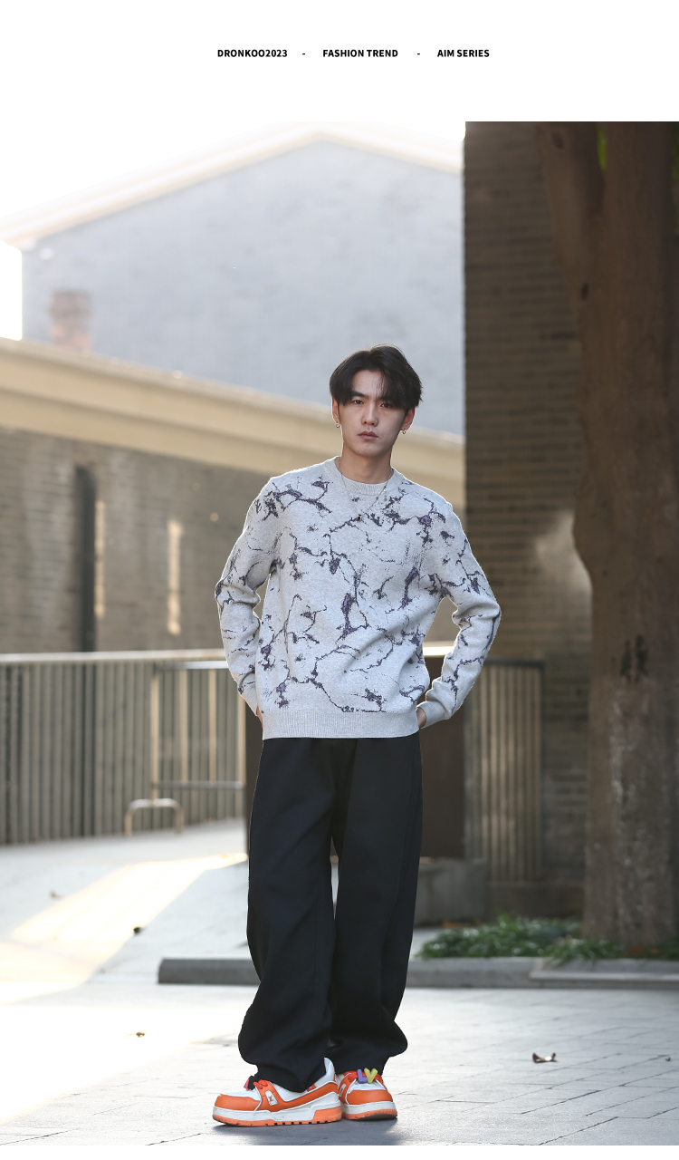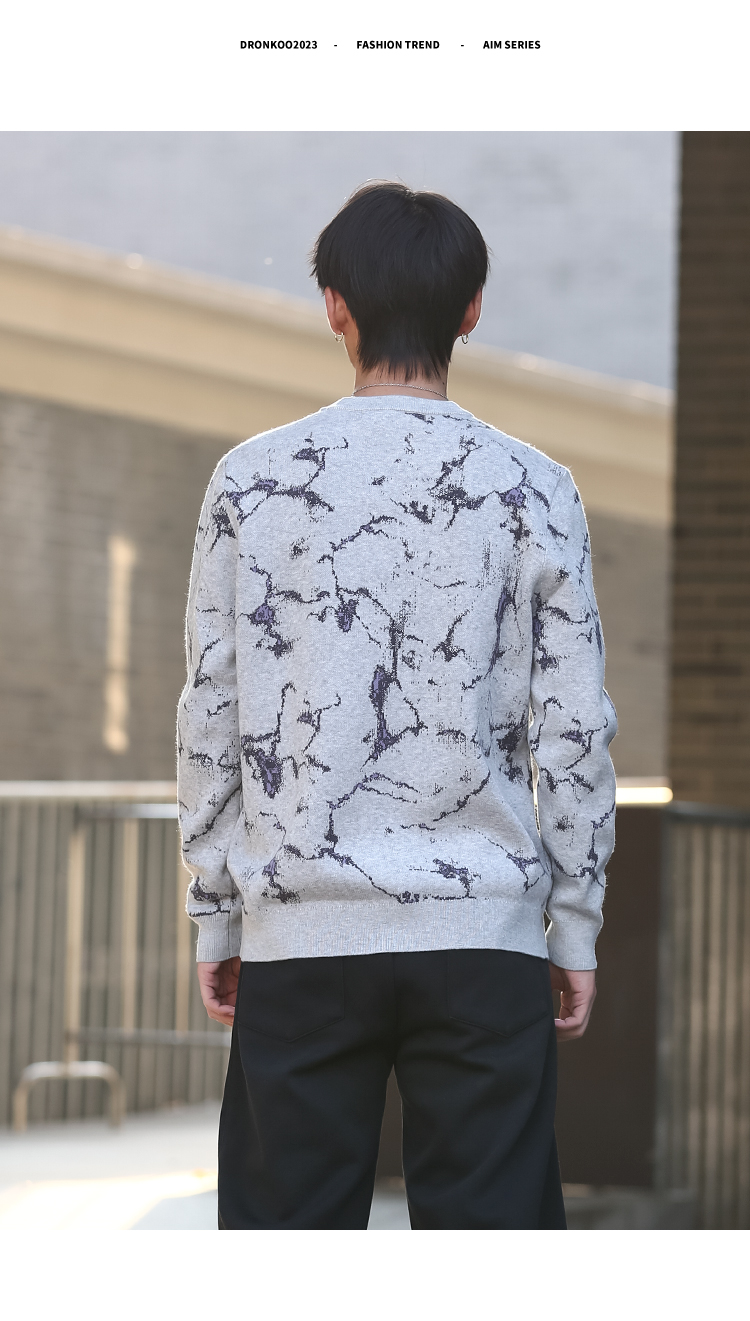 DRONKOO 2025 圆领满幅撞色岩石纹提花中厚毛衣