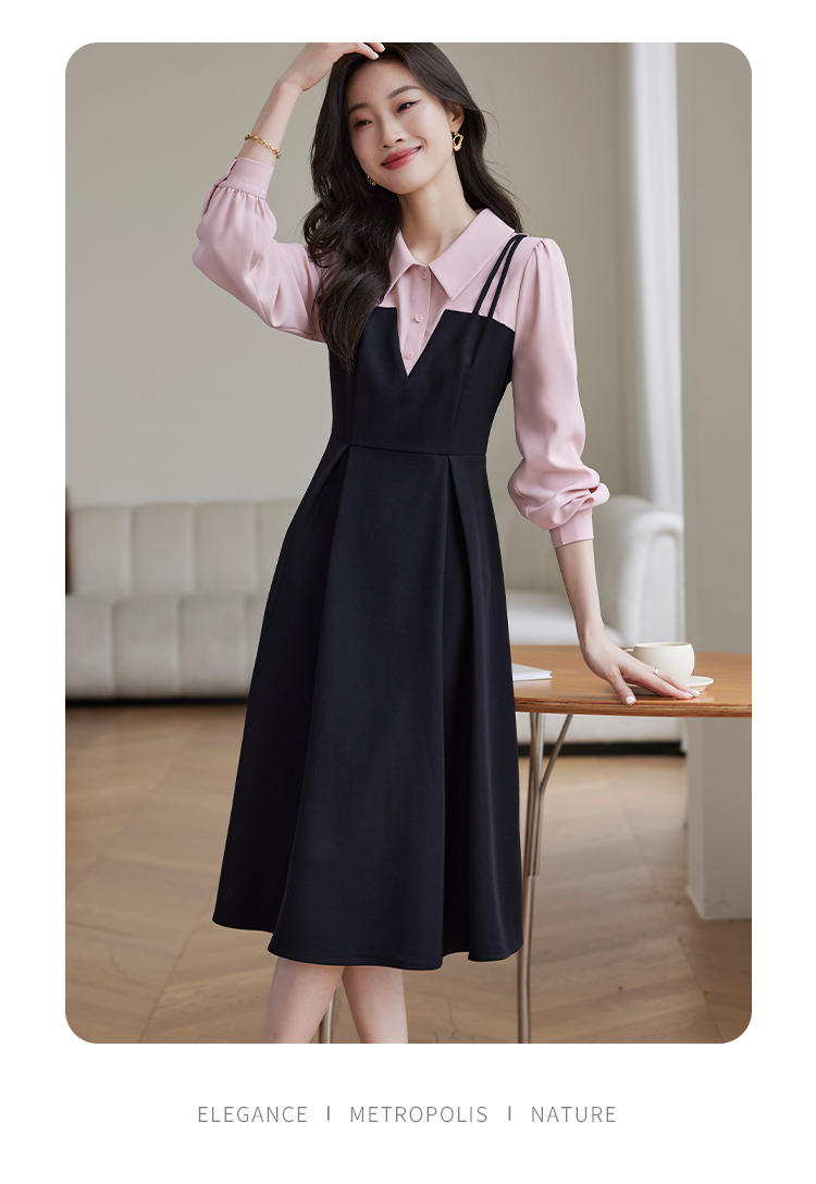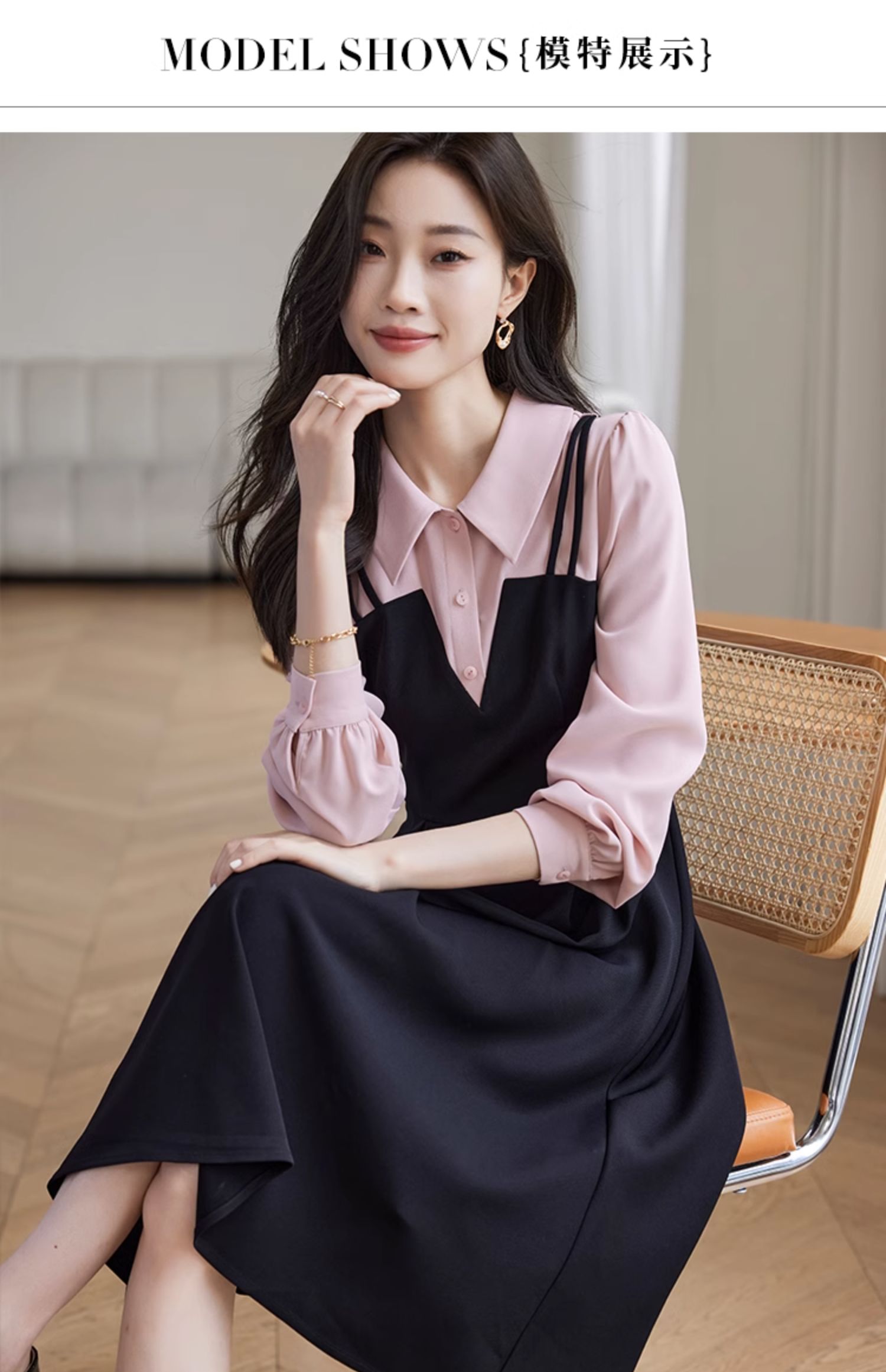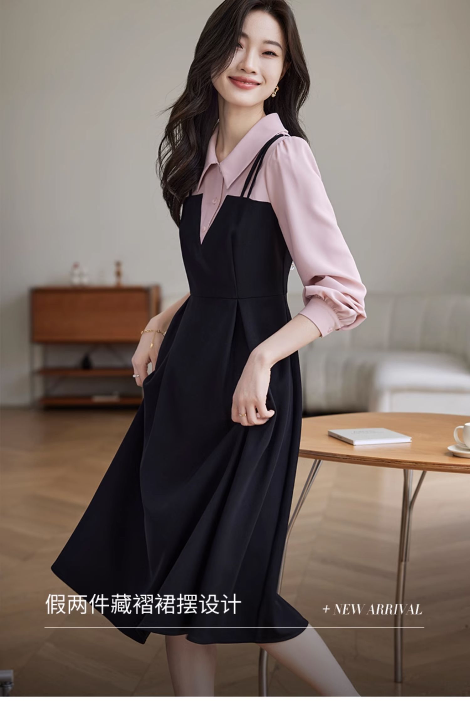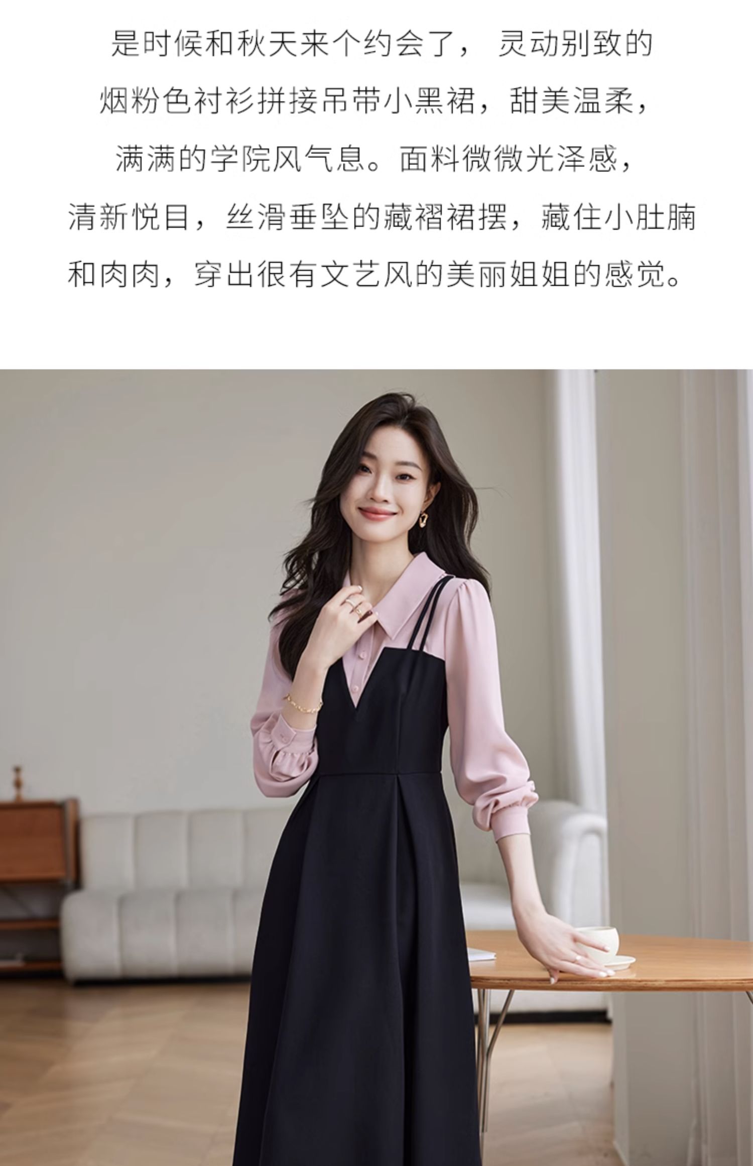 【年终特卖】熙世界2025秋季女装新款休闲气质学院风长袖拼接假两件衬衫连衣裙