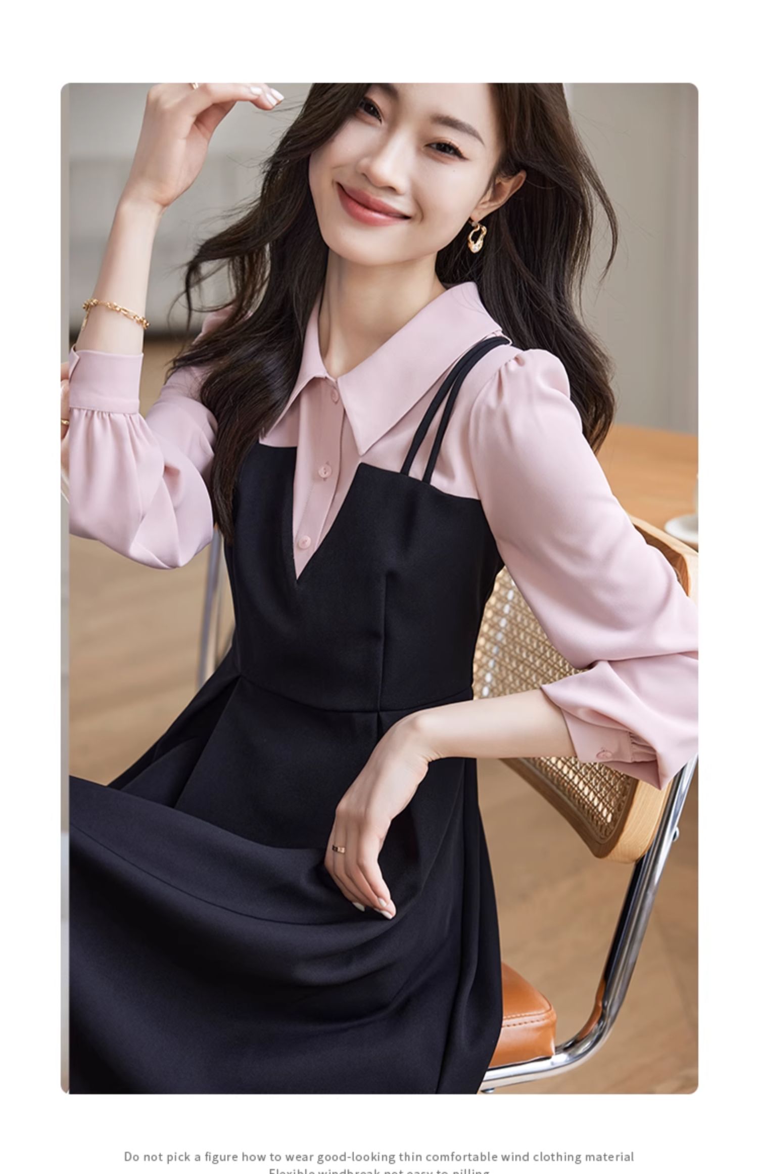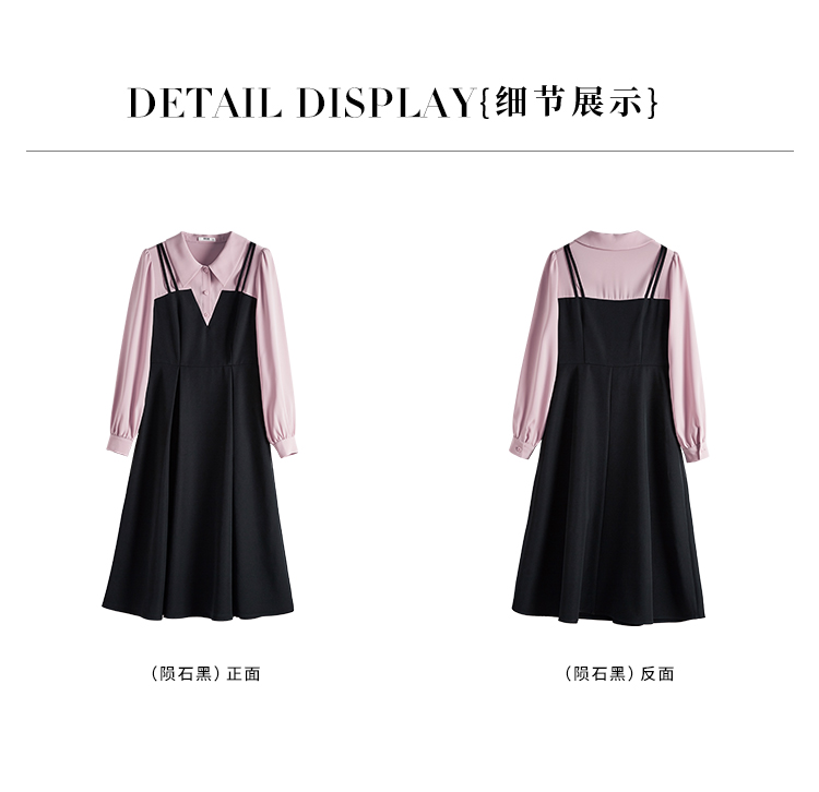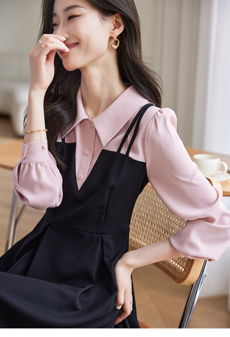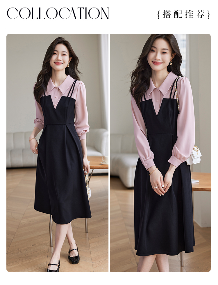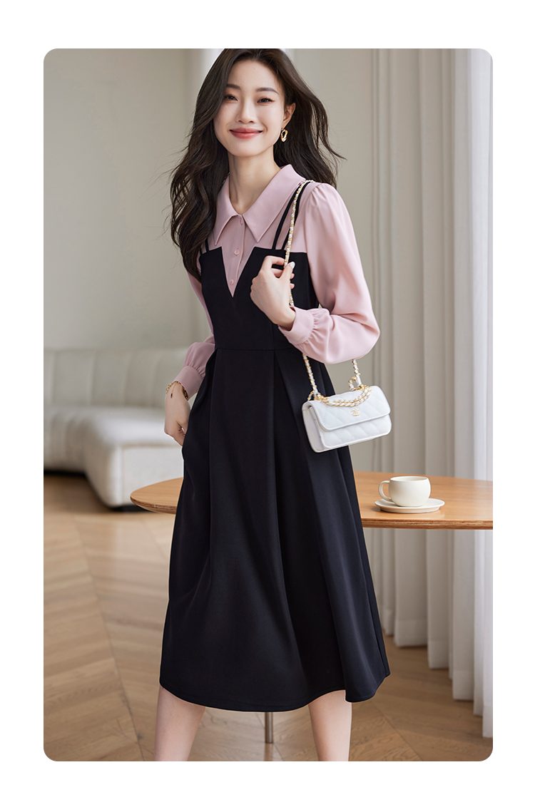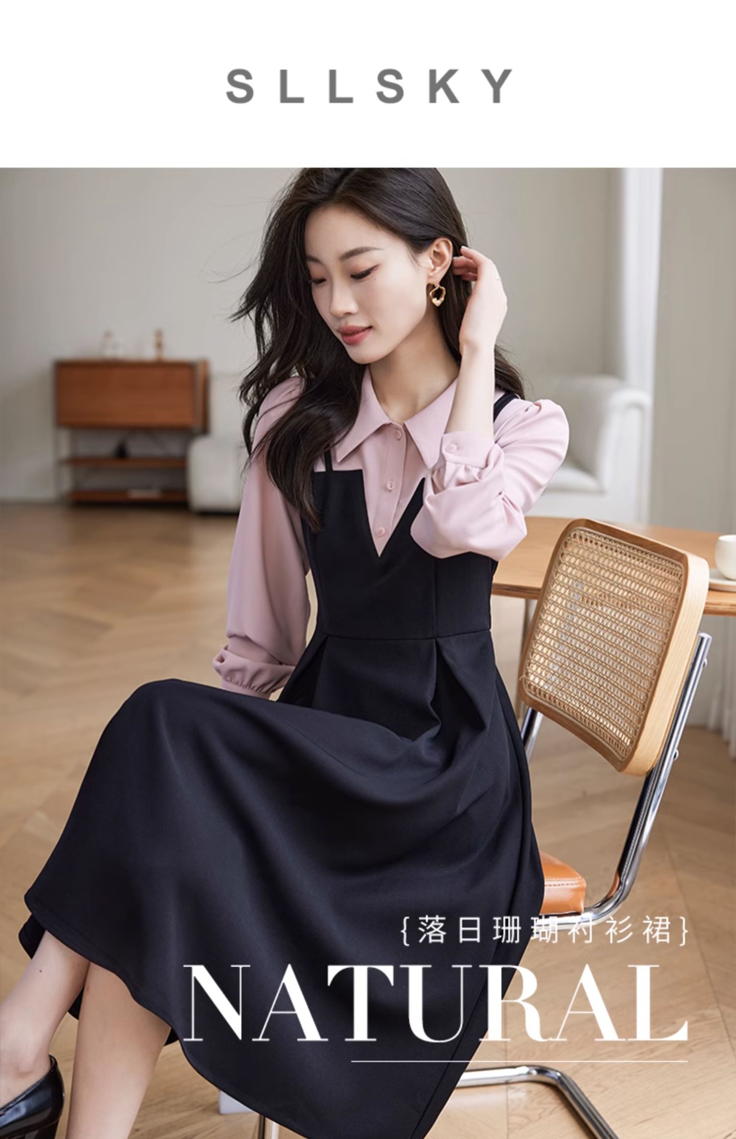 【年终特卖】熙世界2025秋季女装新款休闲气质学院风长袖拼接假两件衬衫连衣裙