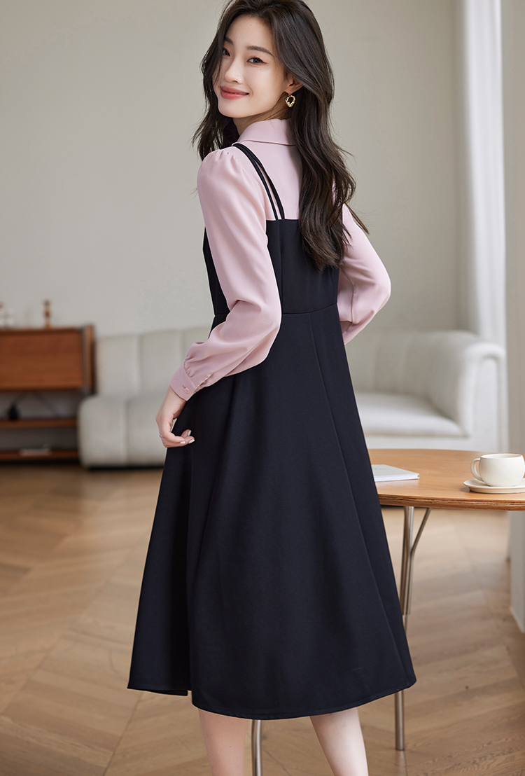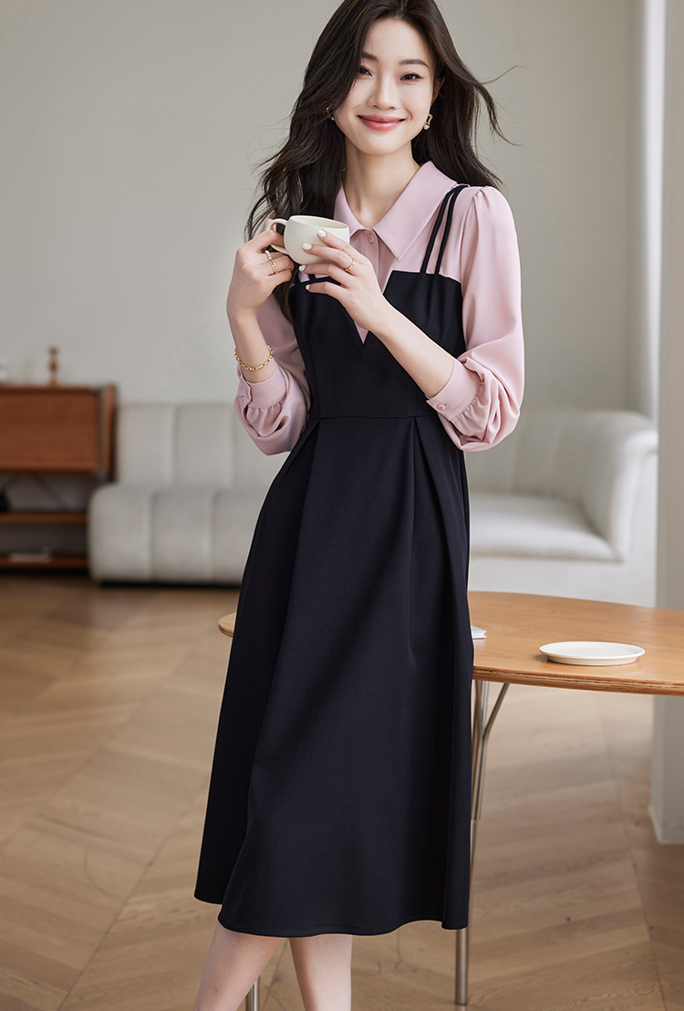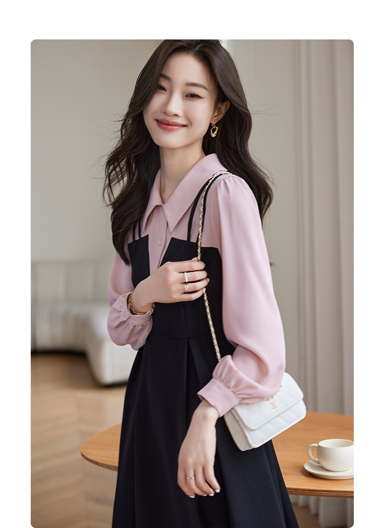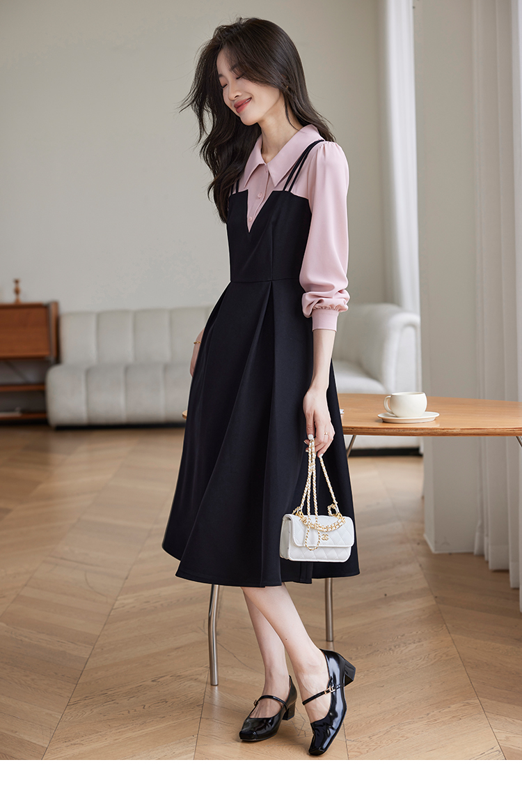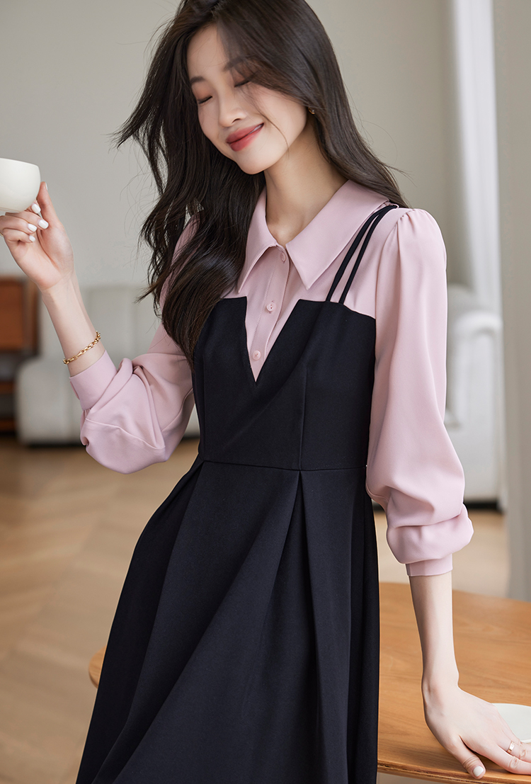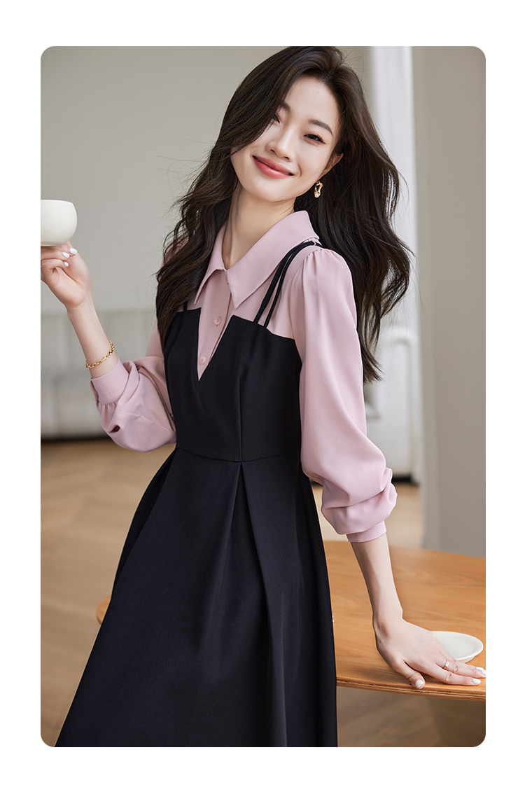 【年终特卖】熙世界2025秋季女装新款休闲气质学院风长袖拼接假两件衬衫连衣裙