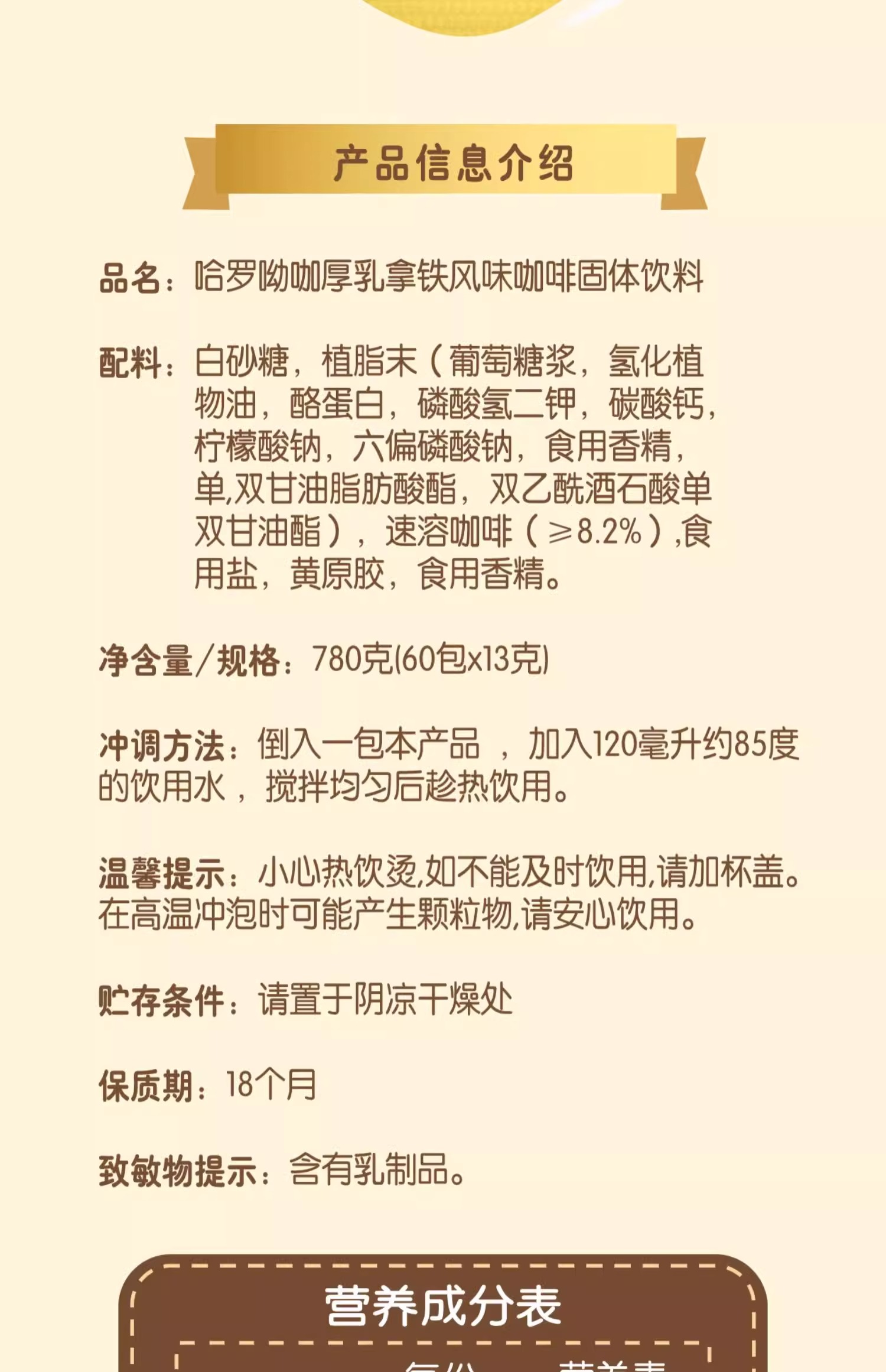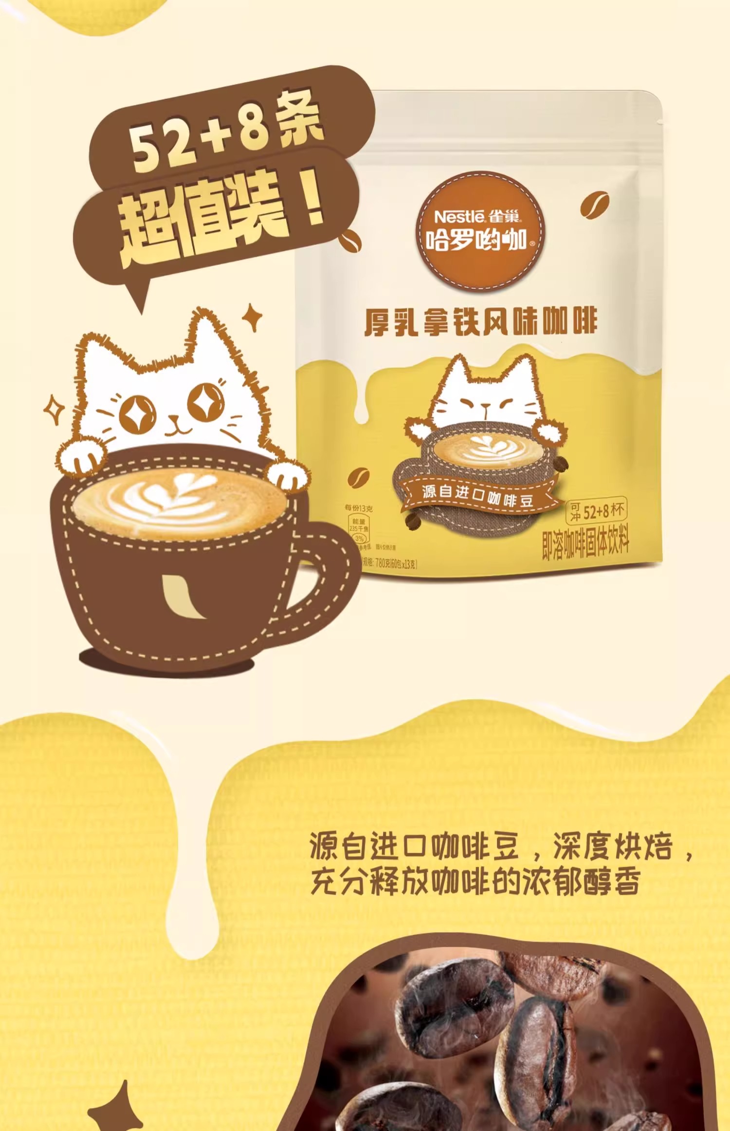 雀巢咖啡1+23IN1哈罗呦咖厚乳拿铁风味即溶咖啡饮品(60x13g)