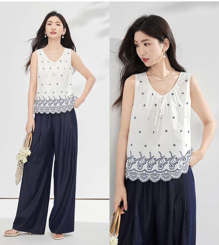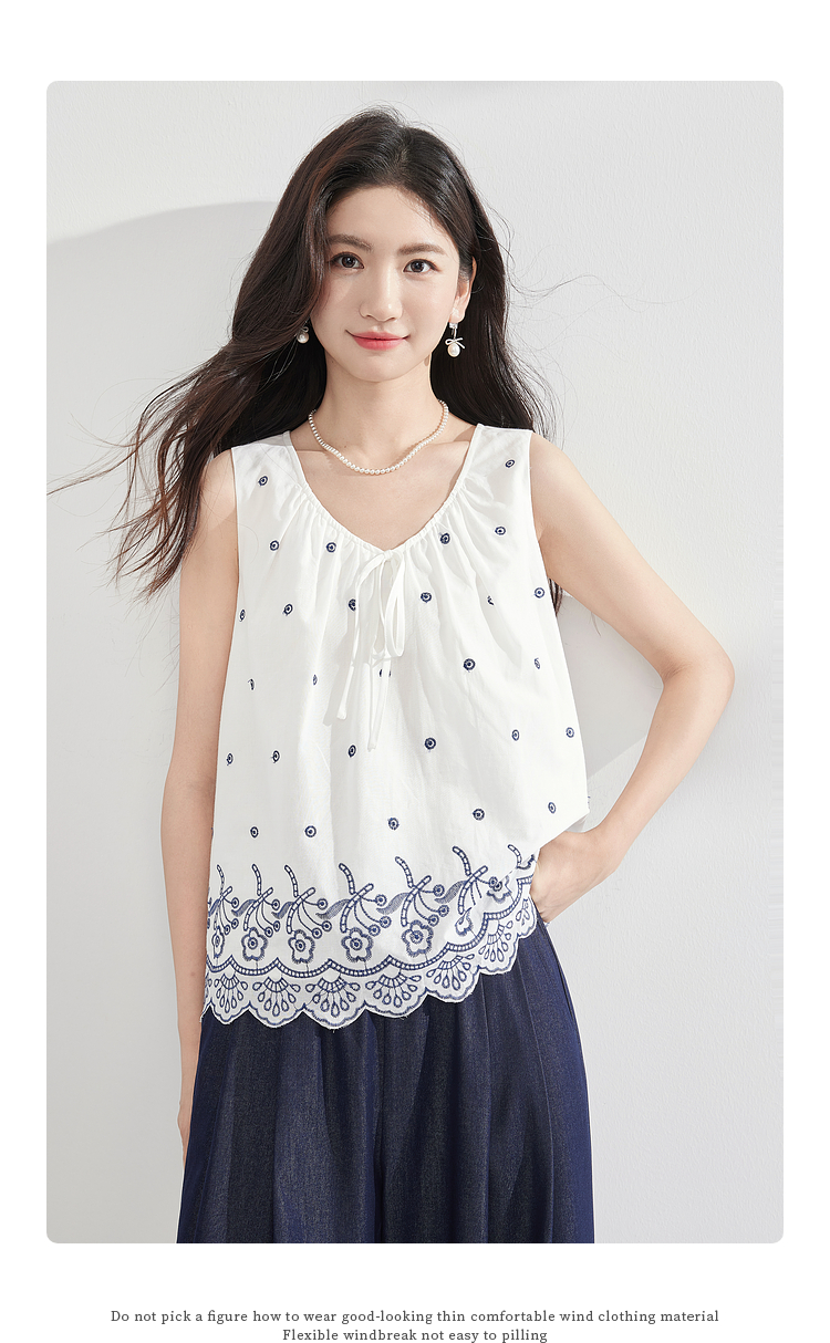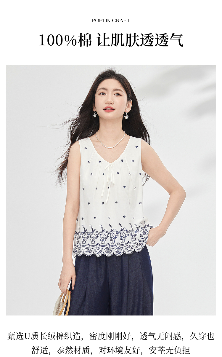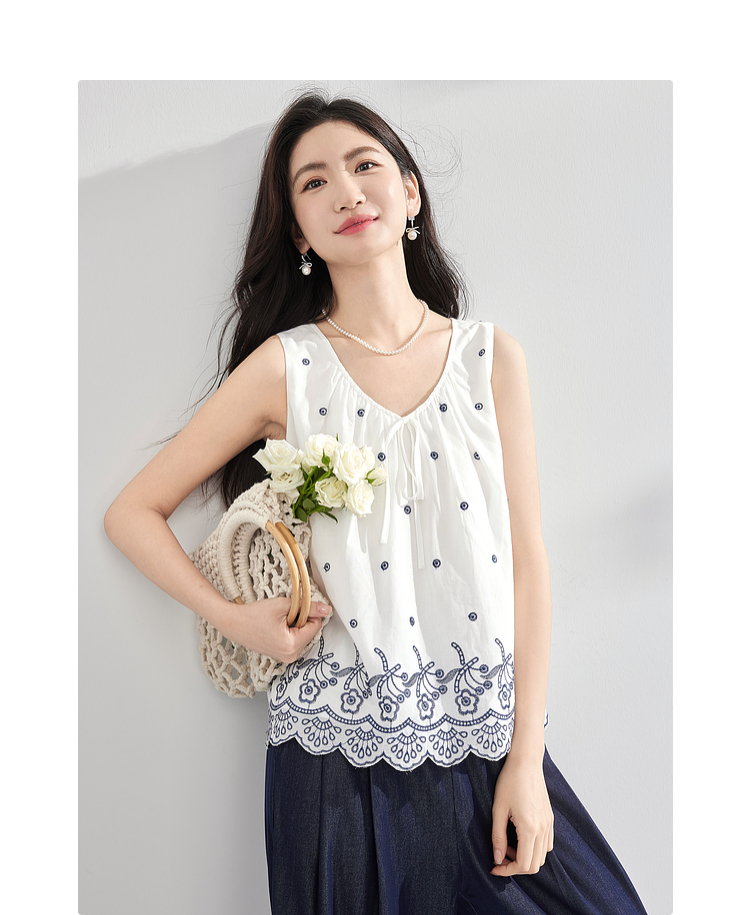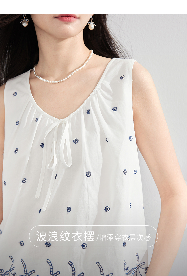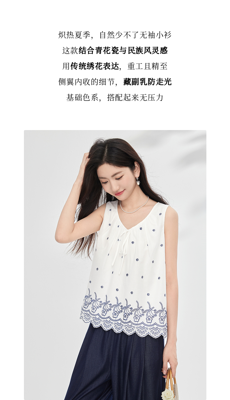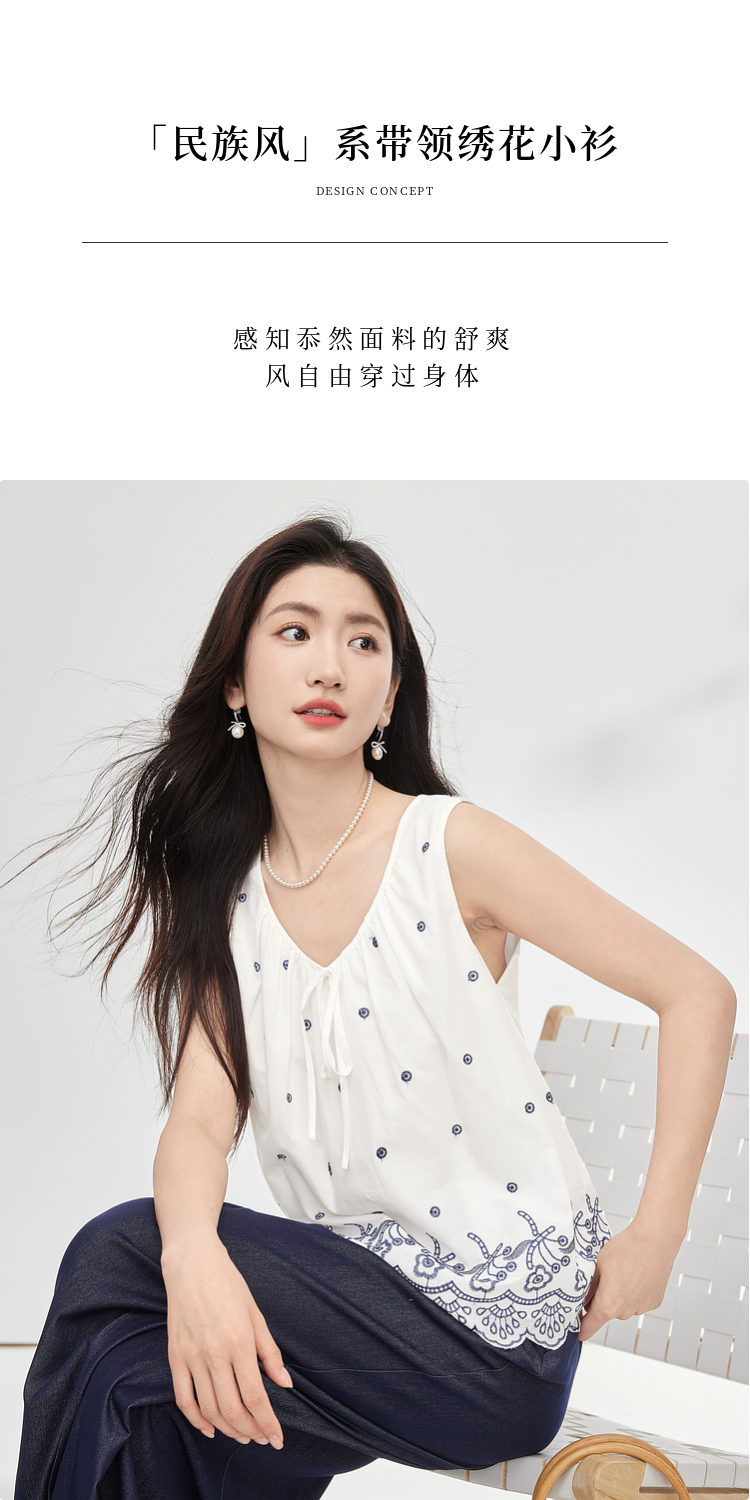 【07/23新品】熙世界民族风复古刺绣背心小衫女夏季新款设计感全棉V领无袖上衣