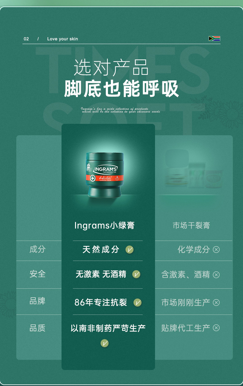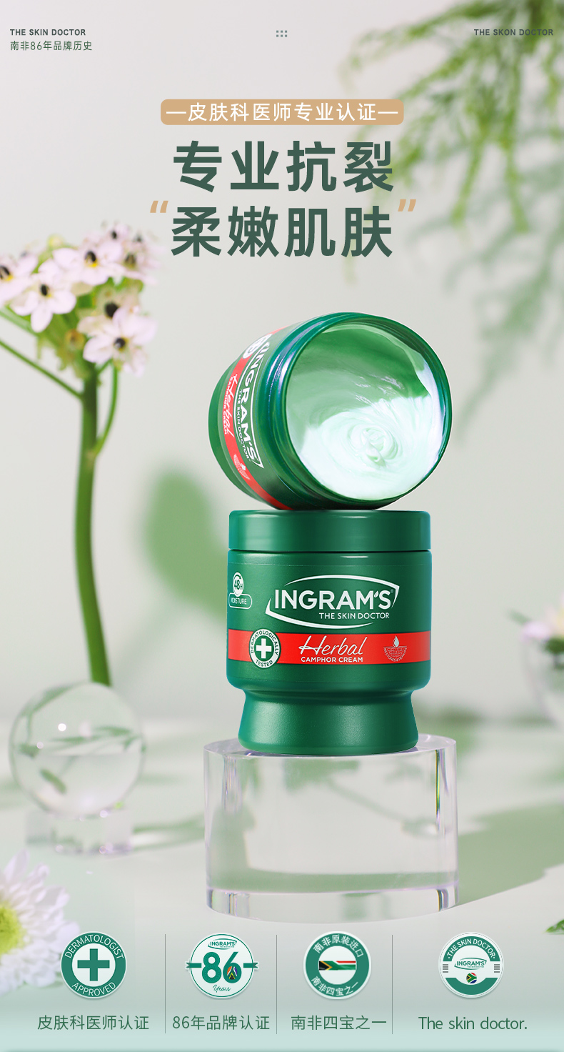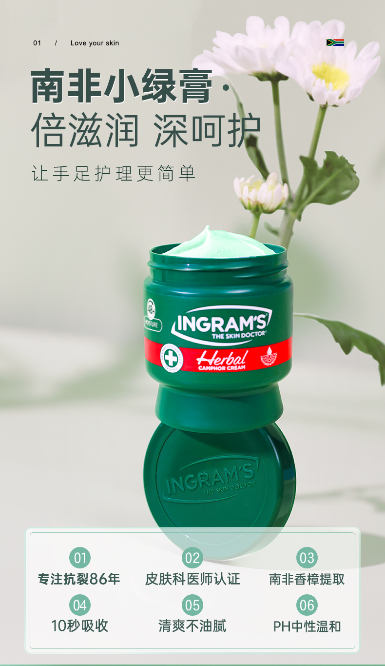赠送保护套!「80年品牌认证」南非ingram's英格莱恩草本樟脑乳霜 脚后跟干裂膏 龟裂防皲裂口手足护理乳霜