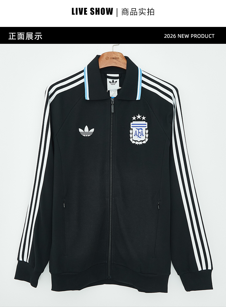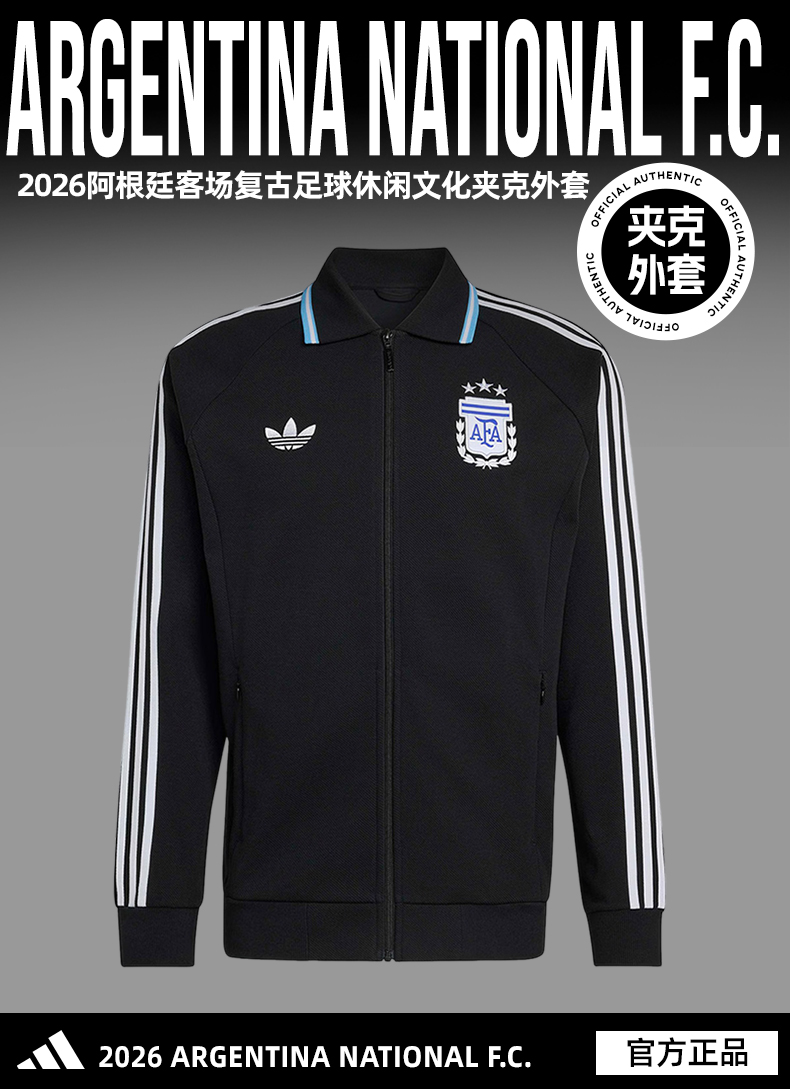SFS正品 Adidas阿迪达斯2026世界杯阿根廷队客场复古足球休闲文化夹克外套JZ6287