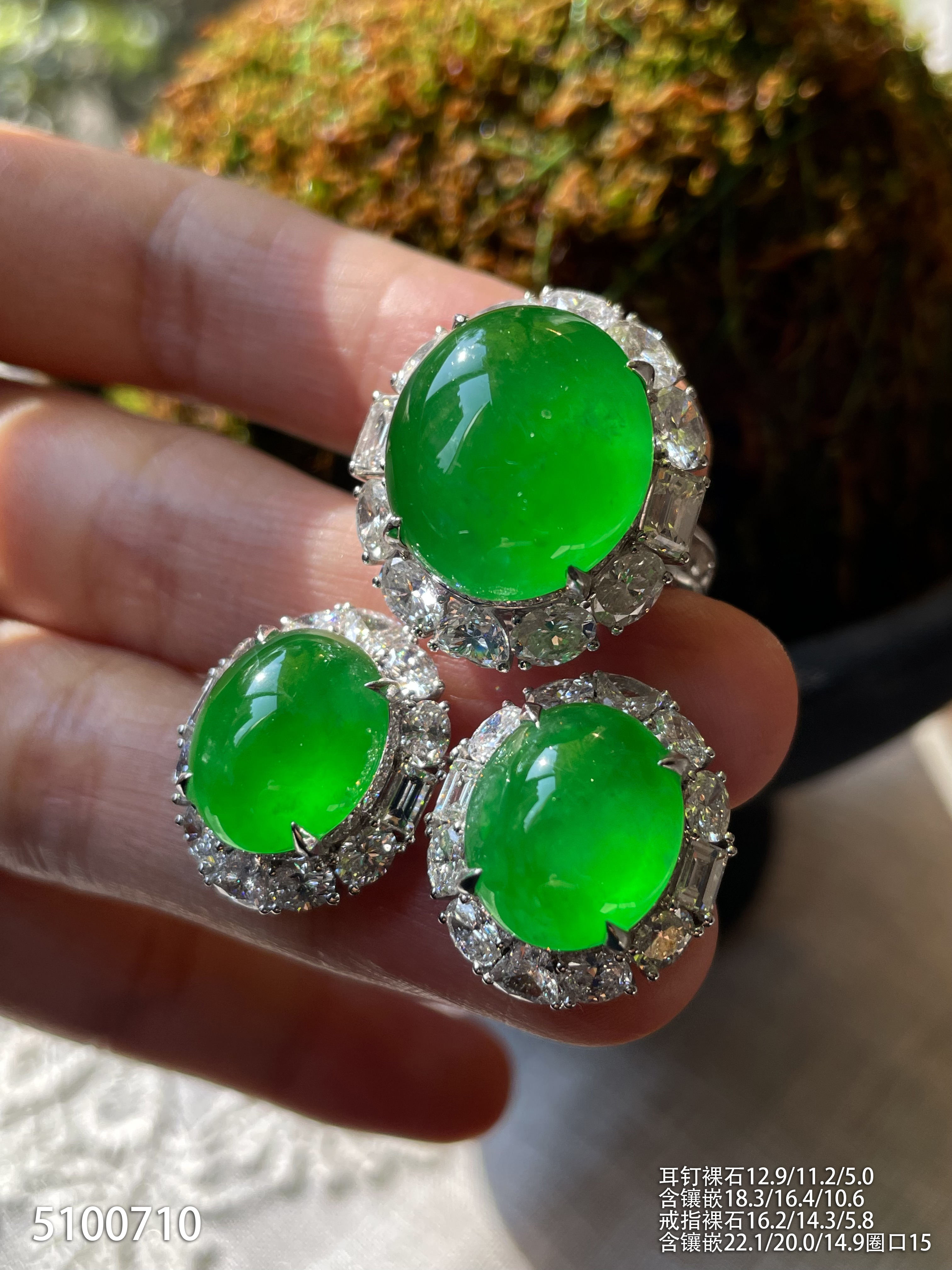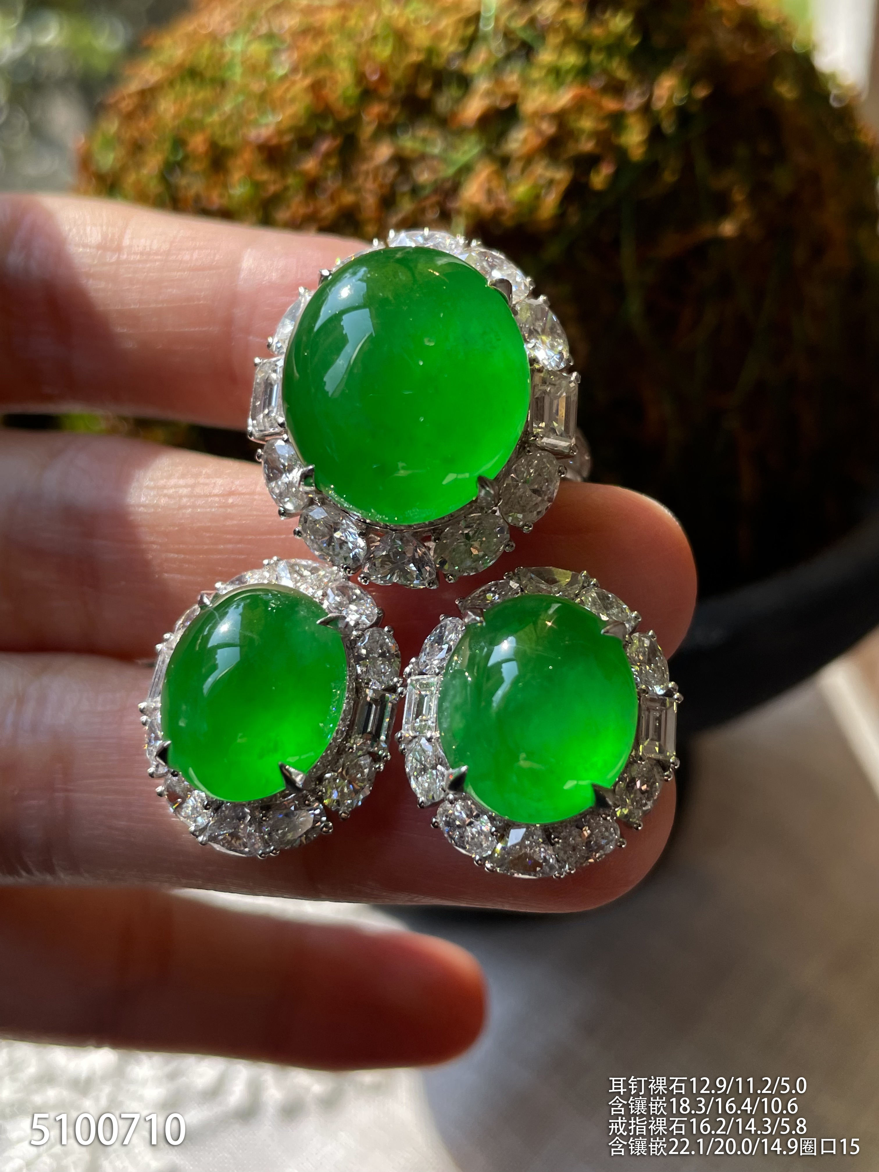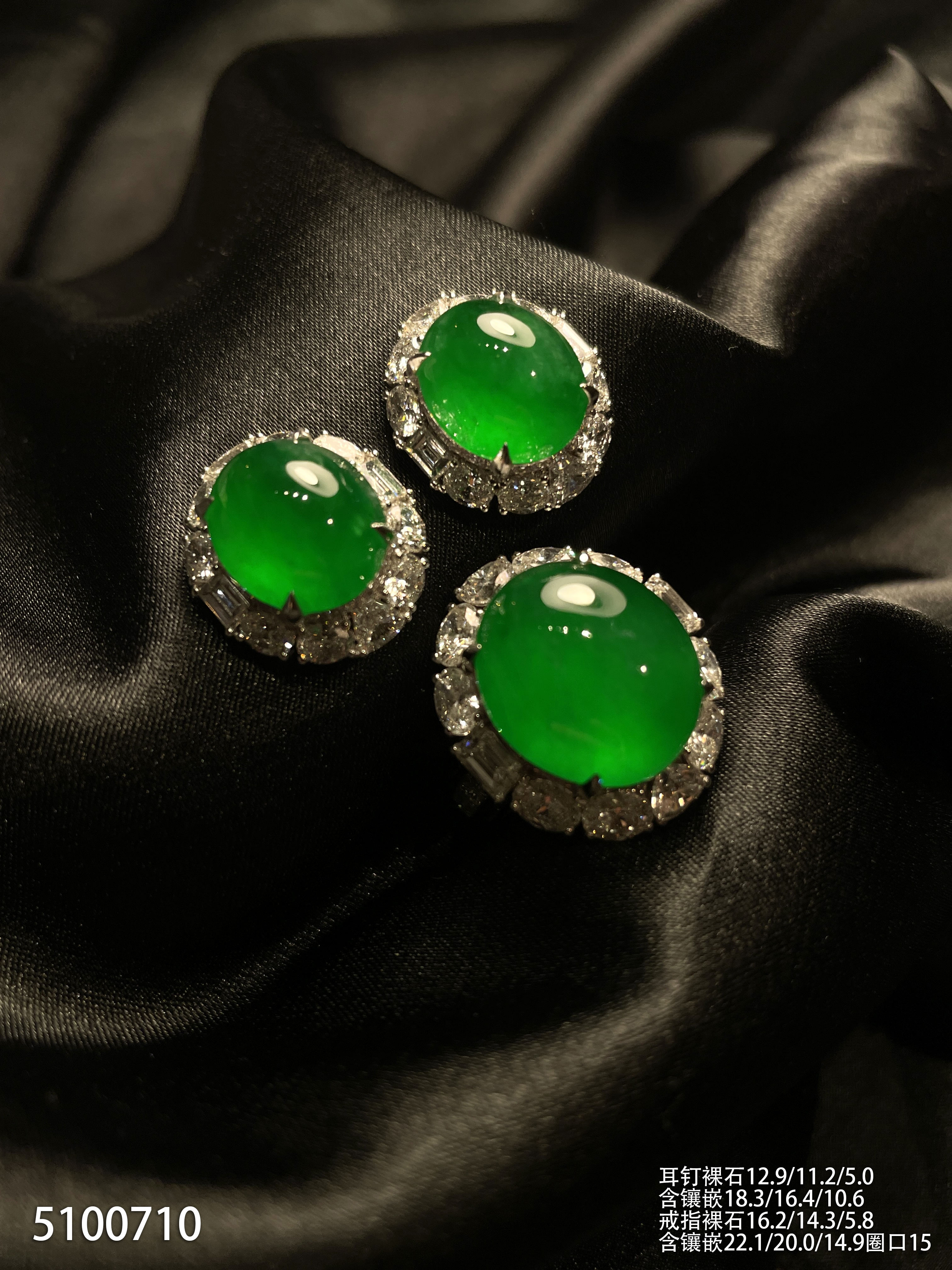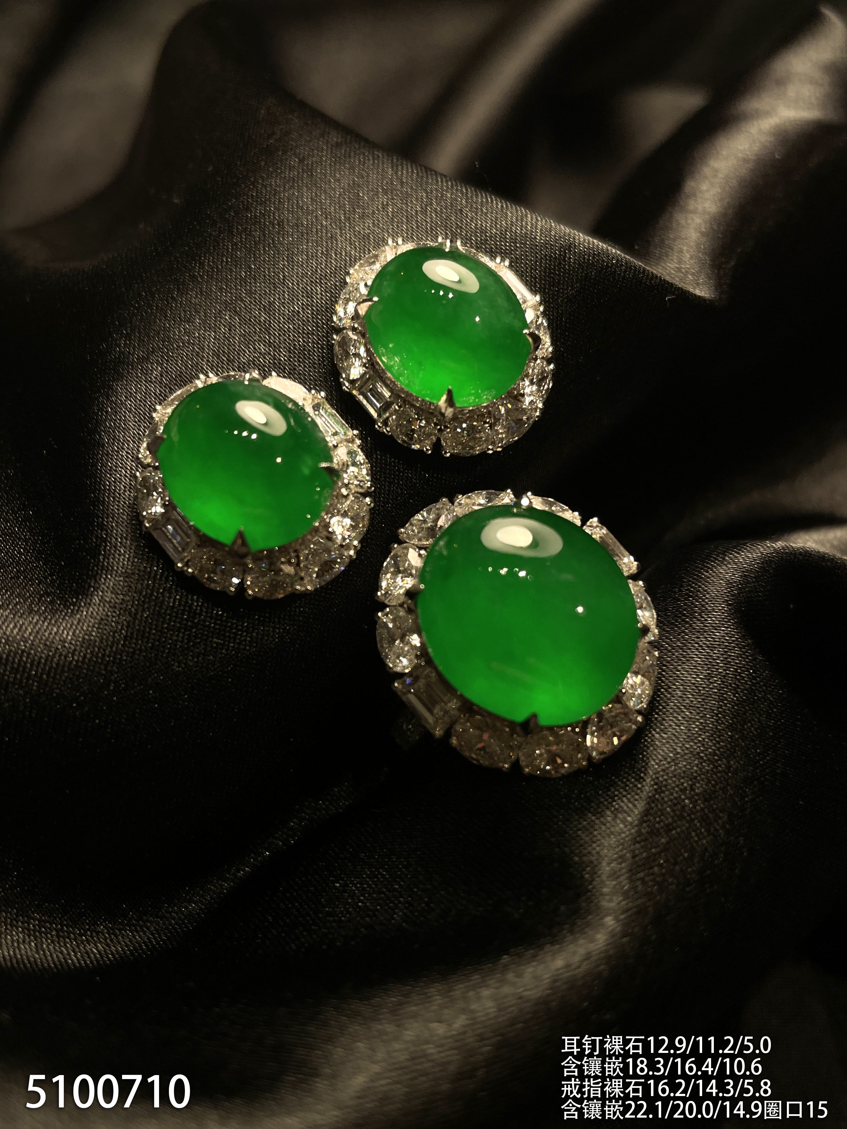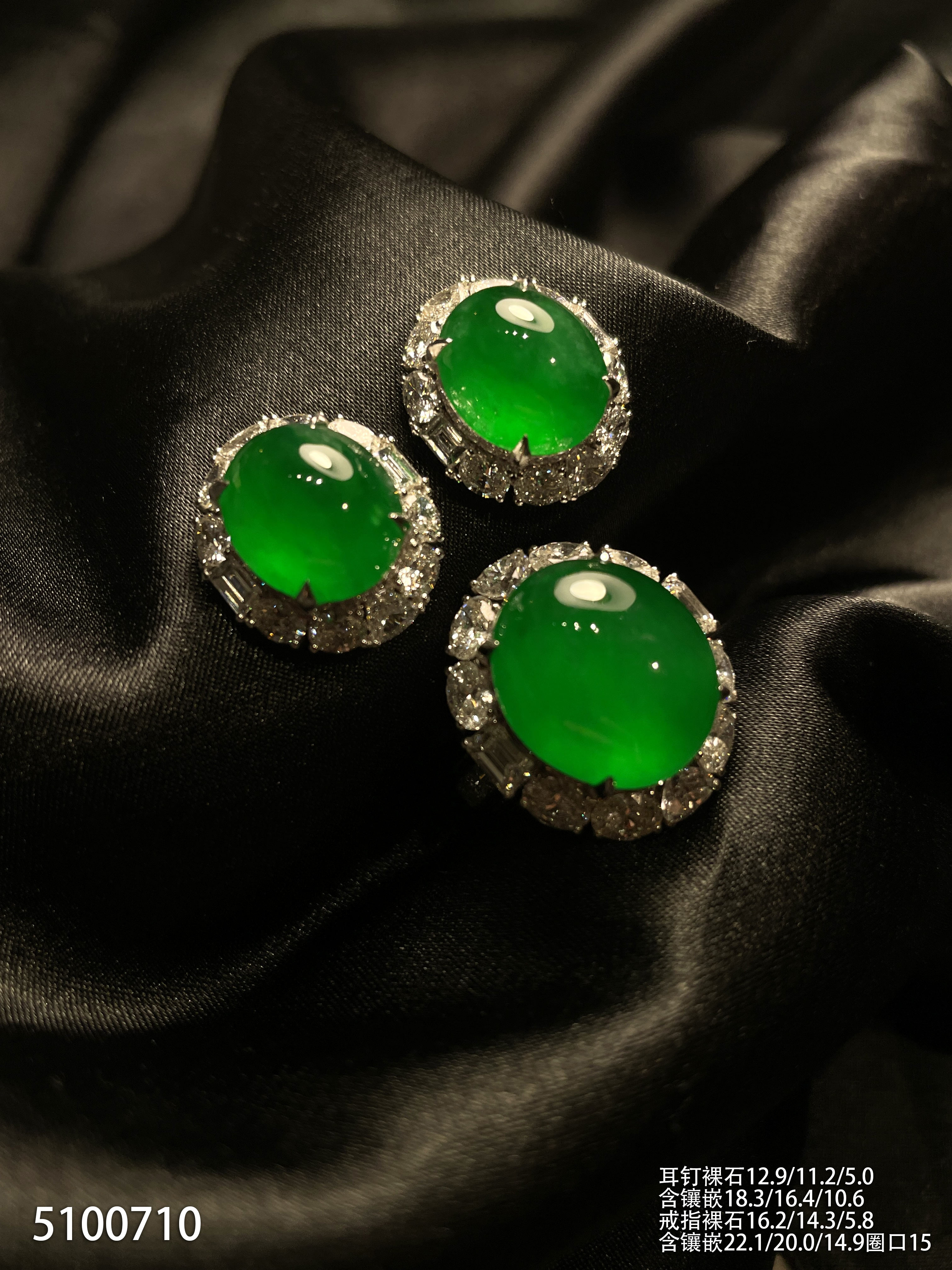 高冰种帝王绿蛋面套装【5100710】具体价格微信咨询