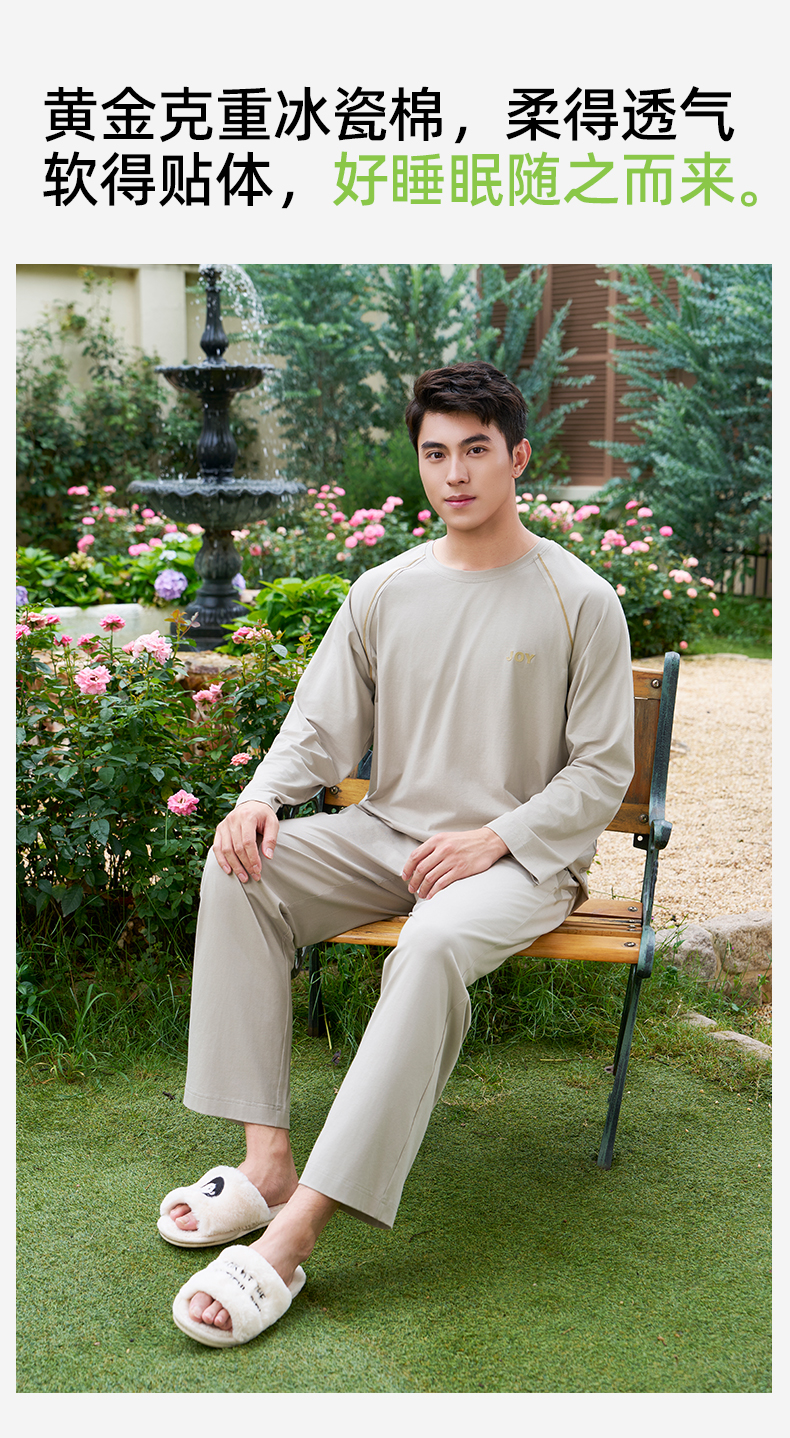【情侣款】【商场同款】熳洁儿 早秋新款冰瓷棉家居服简约休闲风套装25703213/25703913