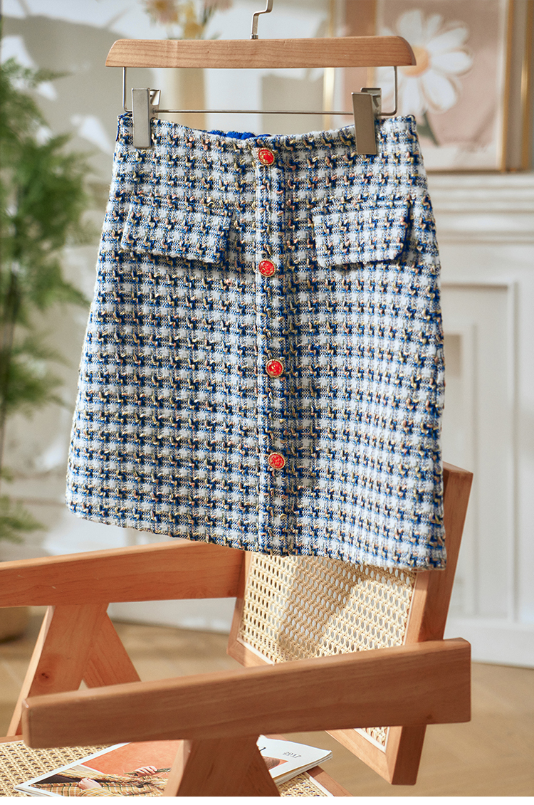 欧芮儿格子半身裙女新款2021高腰显瘦法式时尚小香风a字短裙