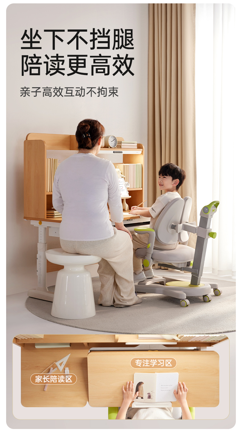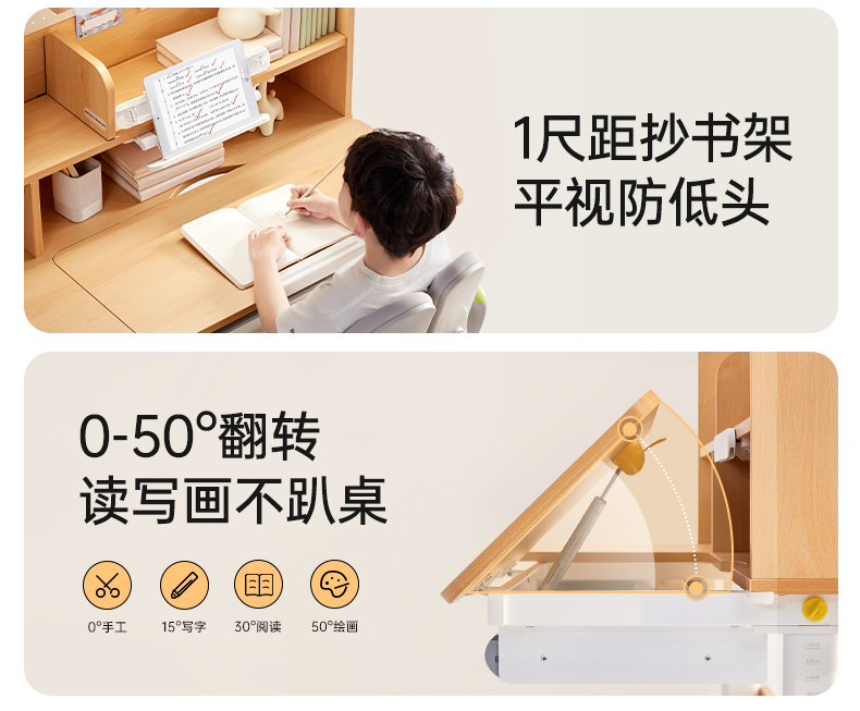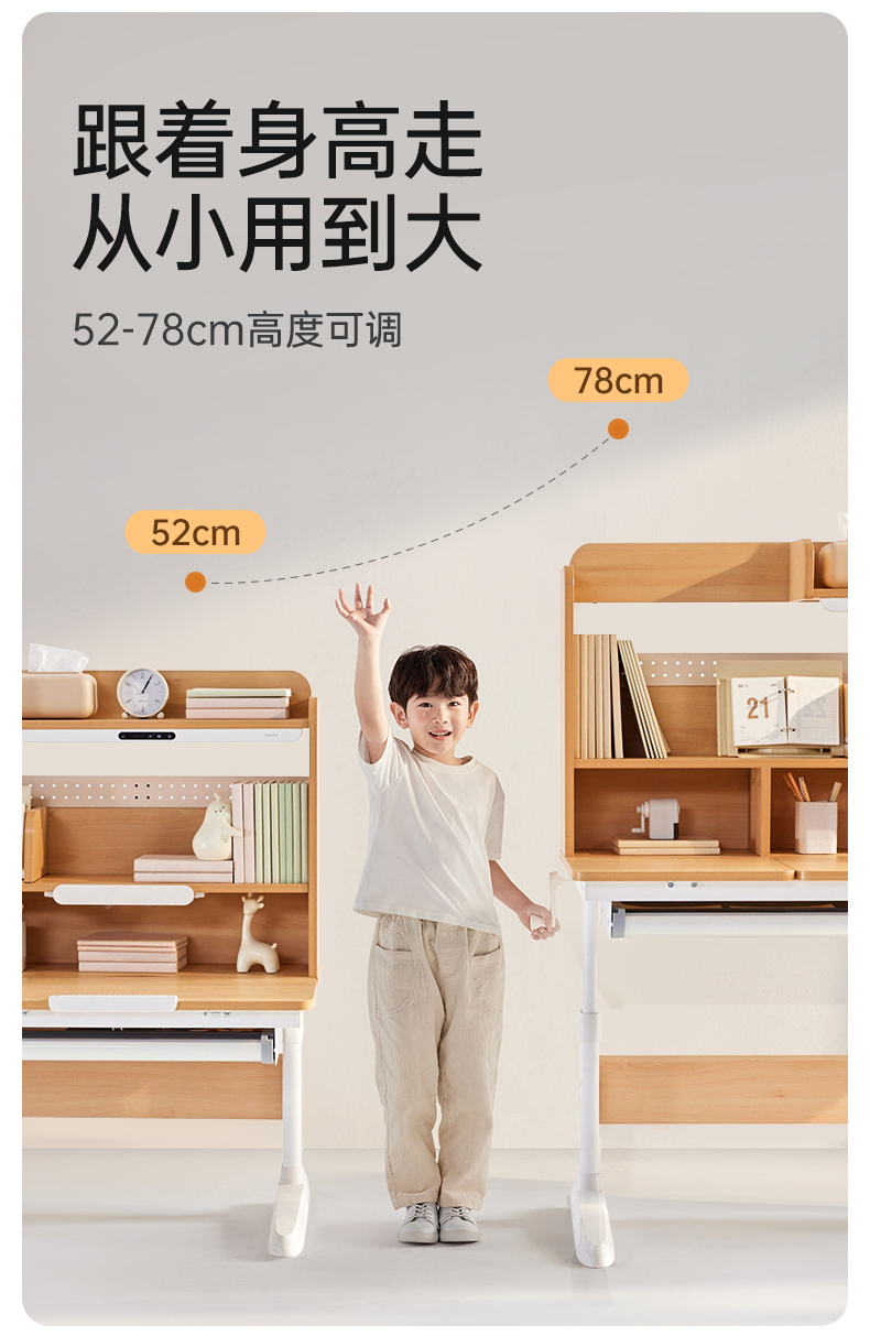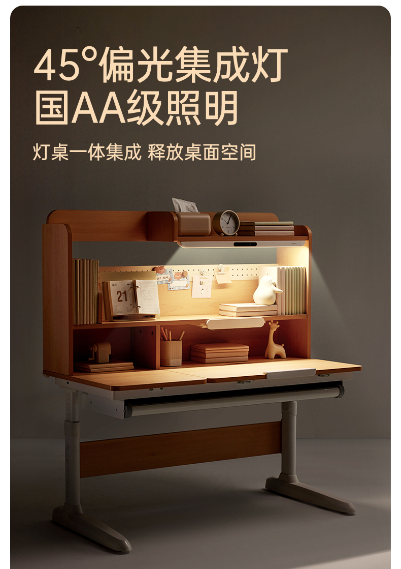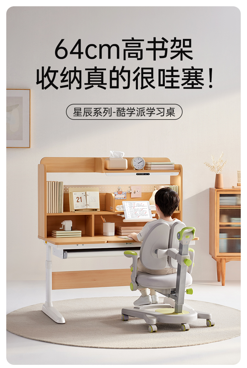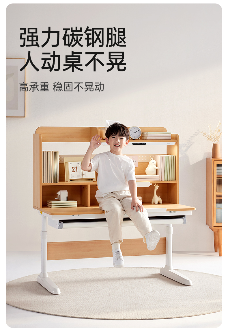 护童【星辰一号酷学派】东青杨木高书架灯桌一体可升降实木儿童学习桌W04A