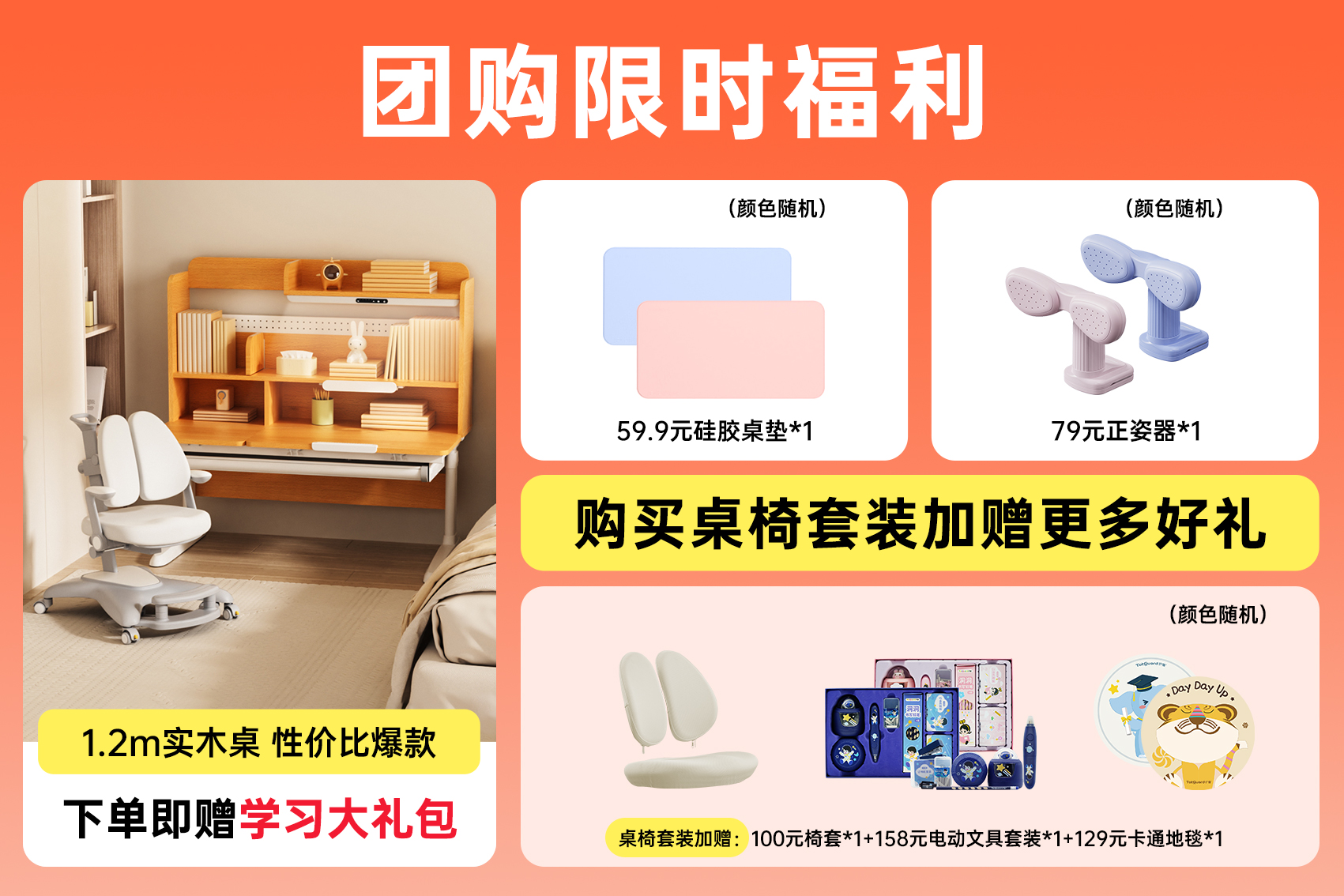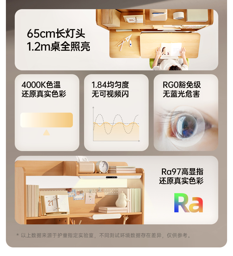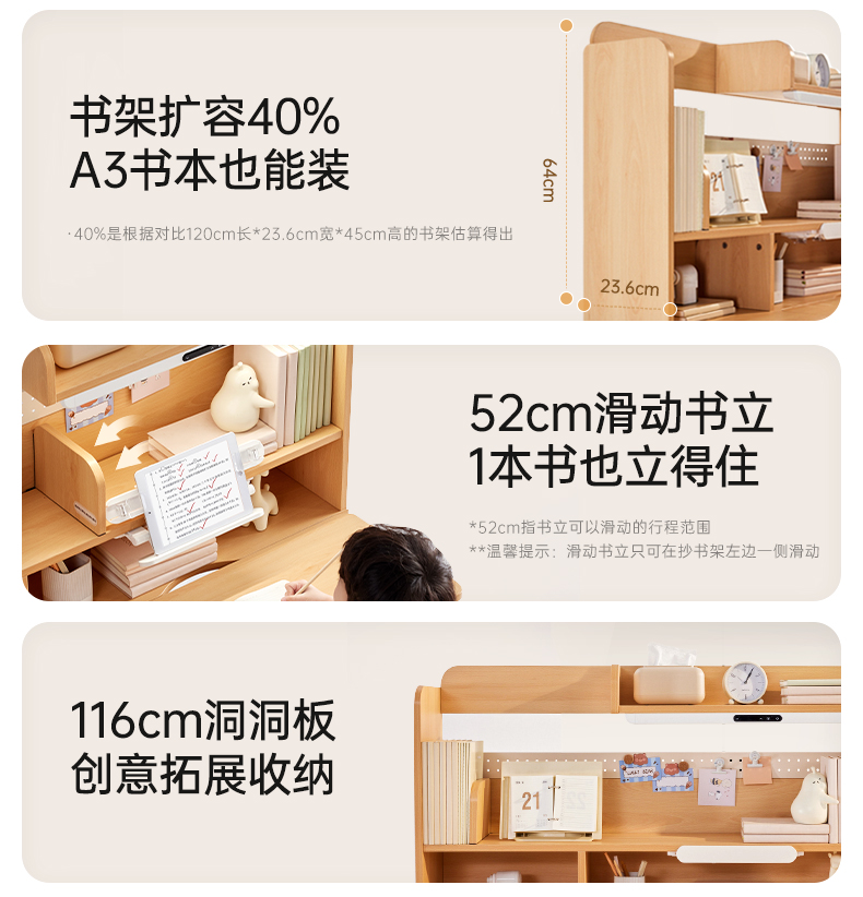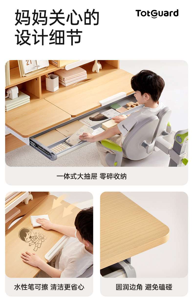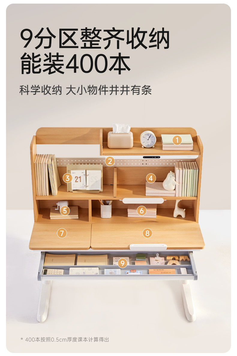 护童【星辰一号酷学派】东青杨木高书架灯桌一体可升降实木儿童学习桌W04A