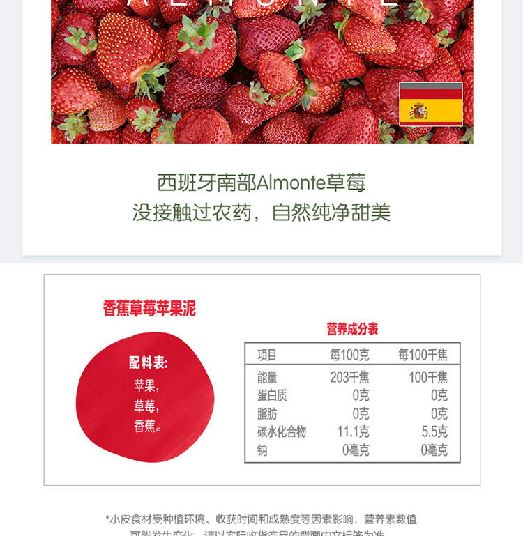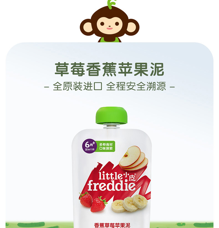 英国little freddie小皮香蕉草莓苹果泥 100g