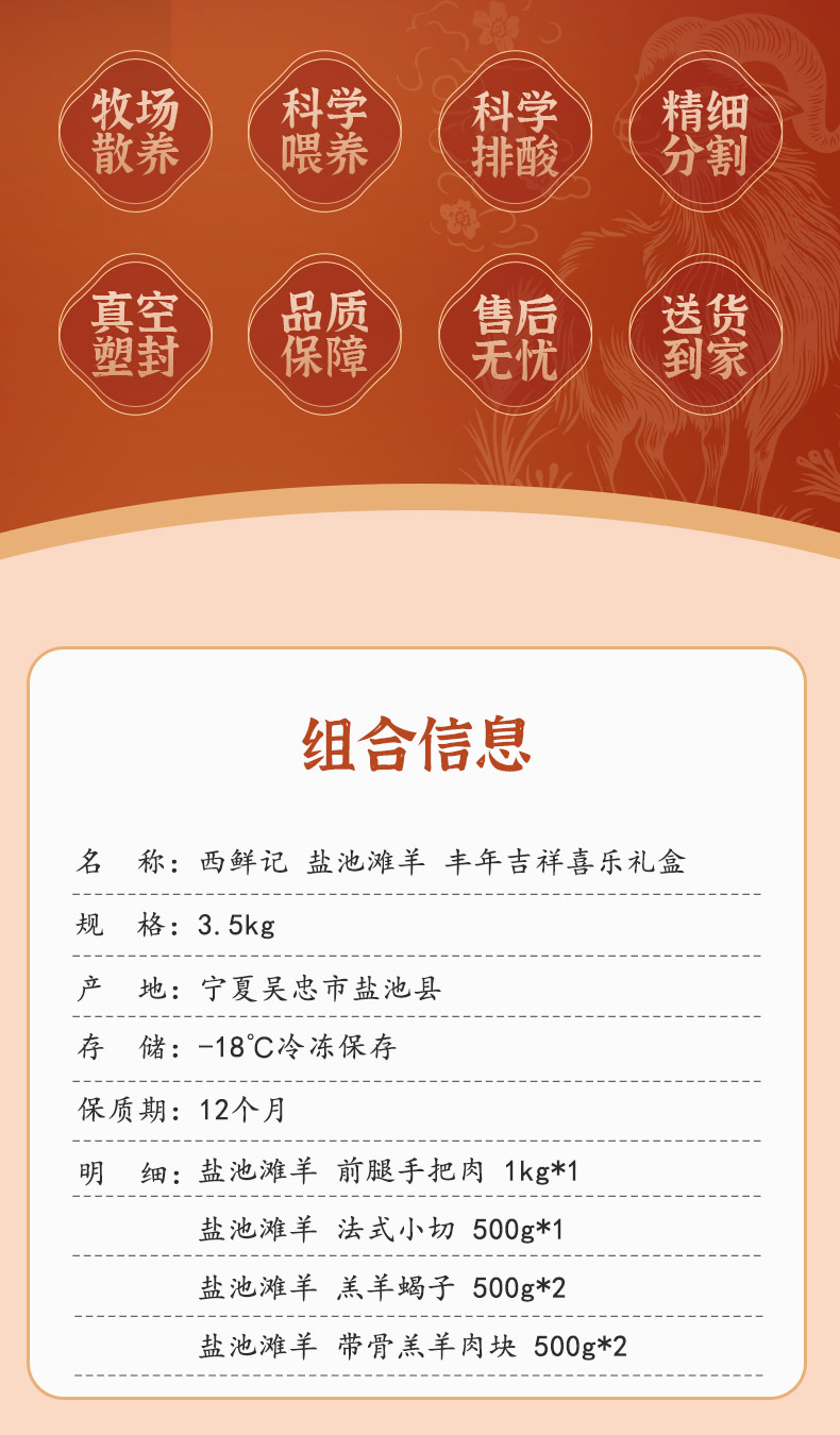 西鲜记 盐池滩羊 丰年吉祥喜乐礼盒 3.5kg