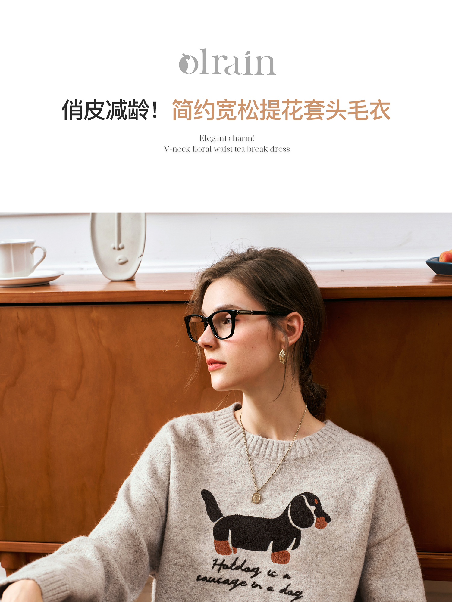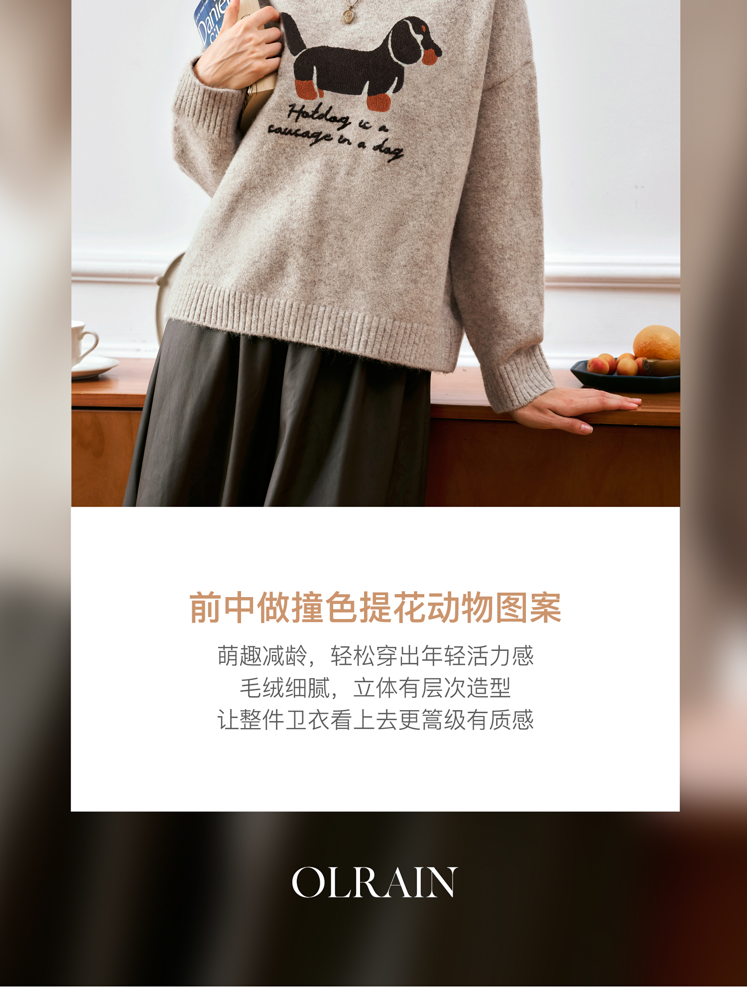 OLrain欧芮儿宽松套头毛衣女秋季2024年新款简约减龄宽松提花上衣