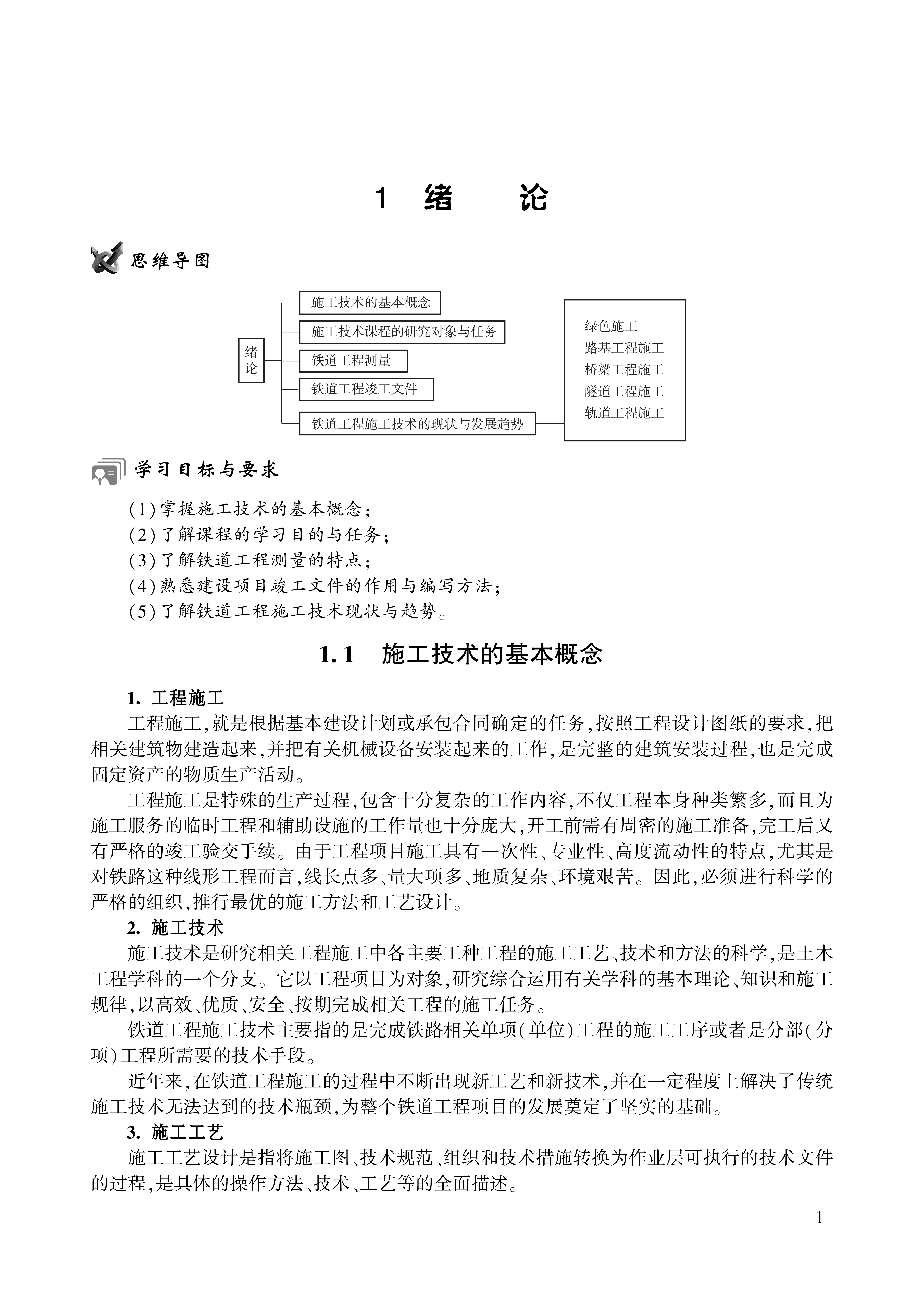 本书为普通高等学校铁道工程专业新编系列教材之一。全书共分为七章,在简单介绍施工技术的概念、基本内容、主要任务的基础上,综述了铁道工程(包括路基、桥涵、隧道、轨道等)施工技术的发展现状与趋势,还讲述了混凝土及相关工程、路基土石方工程、桥涵工程、隧道工程、轨道工程施工的基本方法、基本程序和操作要点,以及智能建造技术在铁道工程施工方面的应用与发展。
