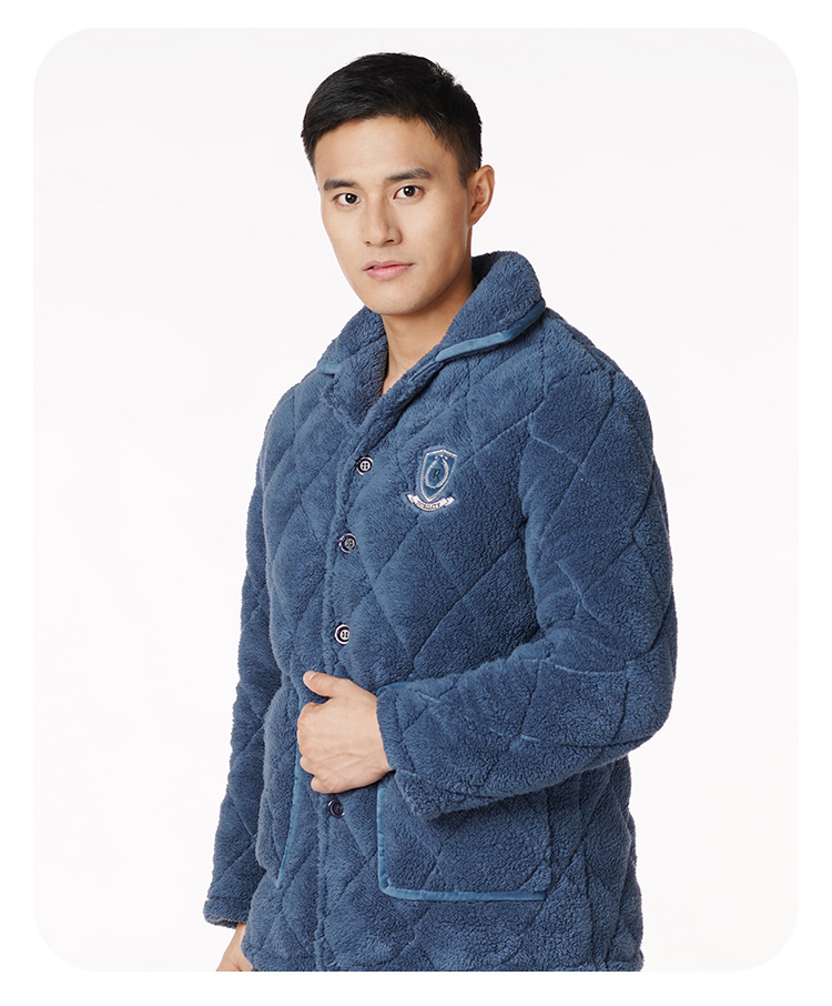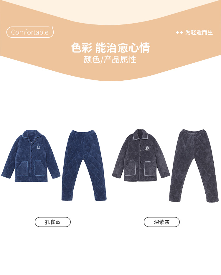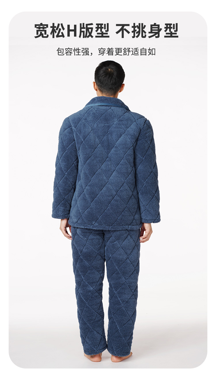 都市丽人都市锋尚生活家居男士加厚夹棉套装长毛绒夹棉厚家居服长袖睡衣FH21J2
