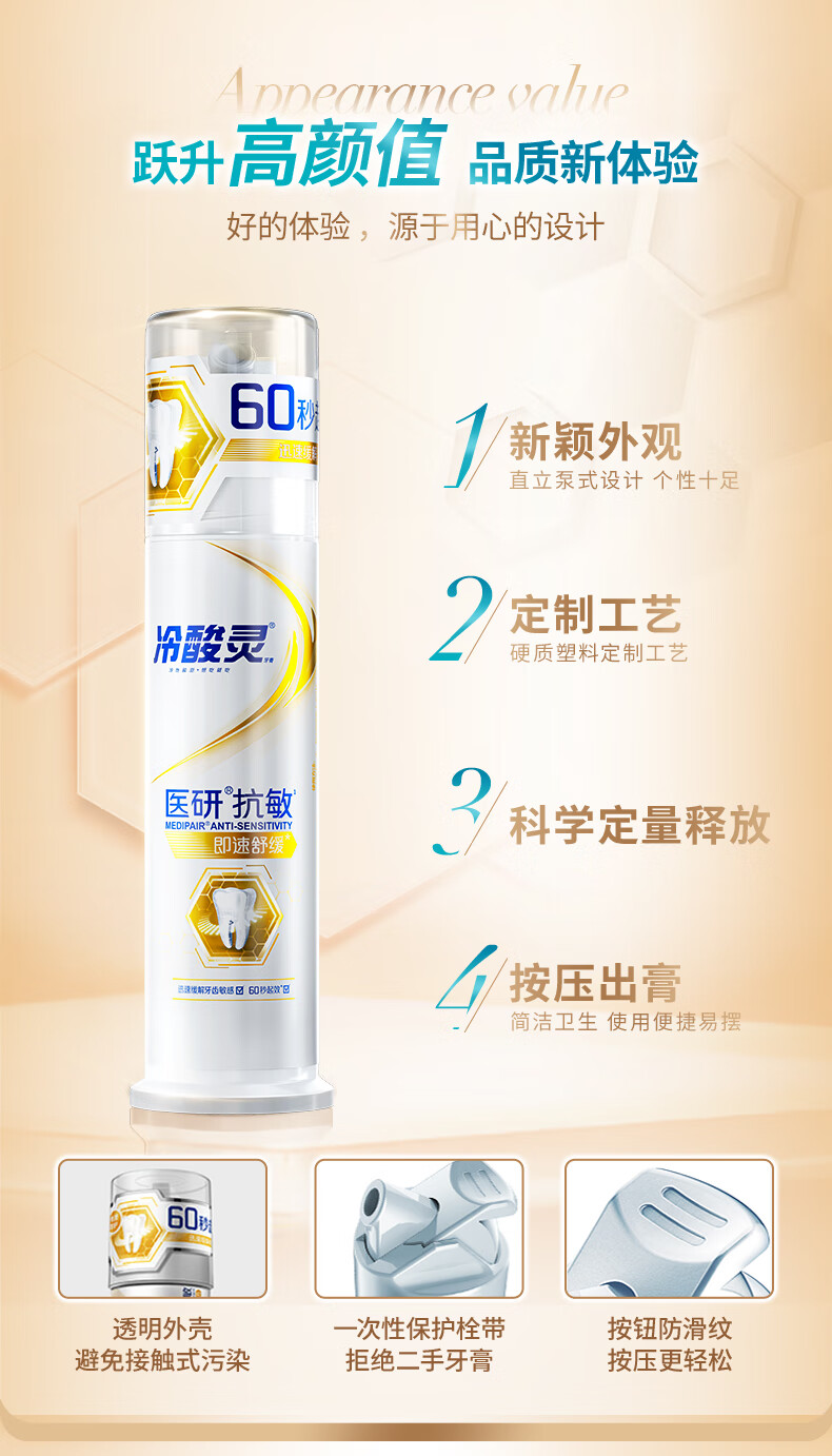 【分仓直发包邮】冷酸灵医研抗敏(即速60s)泵式牙膏120g*2支