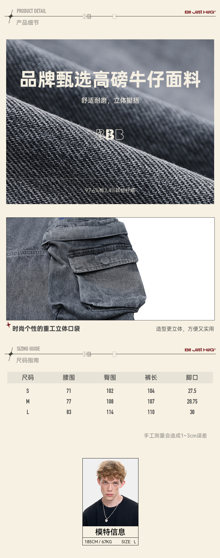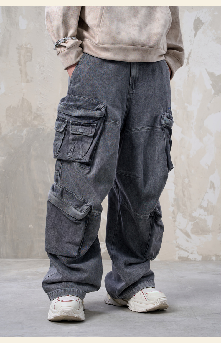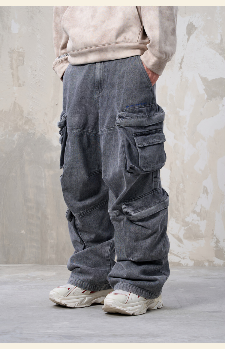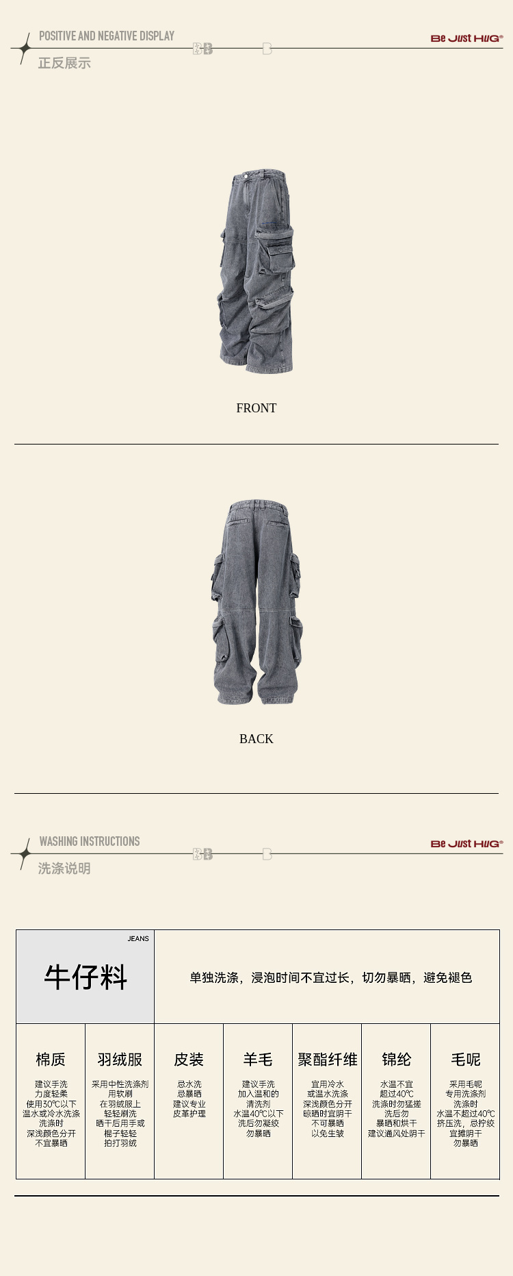 BJHG不计后果废土风工装牛仔裤子男款秋季潮牌美式高街宽松直筒裤