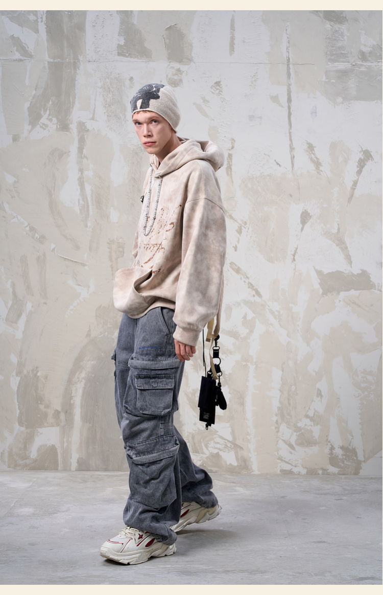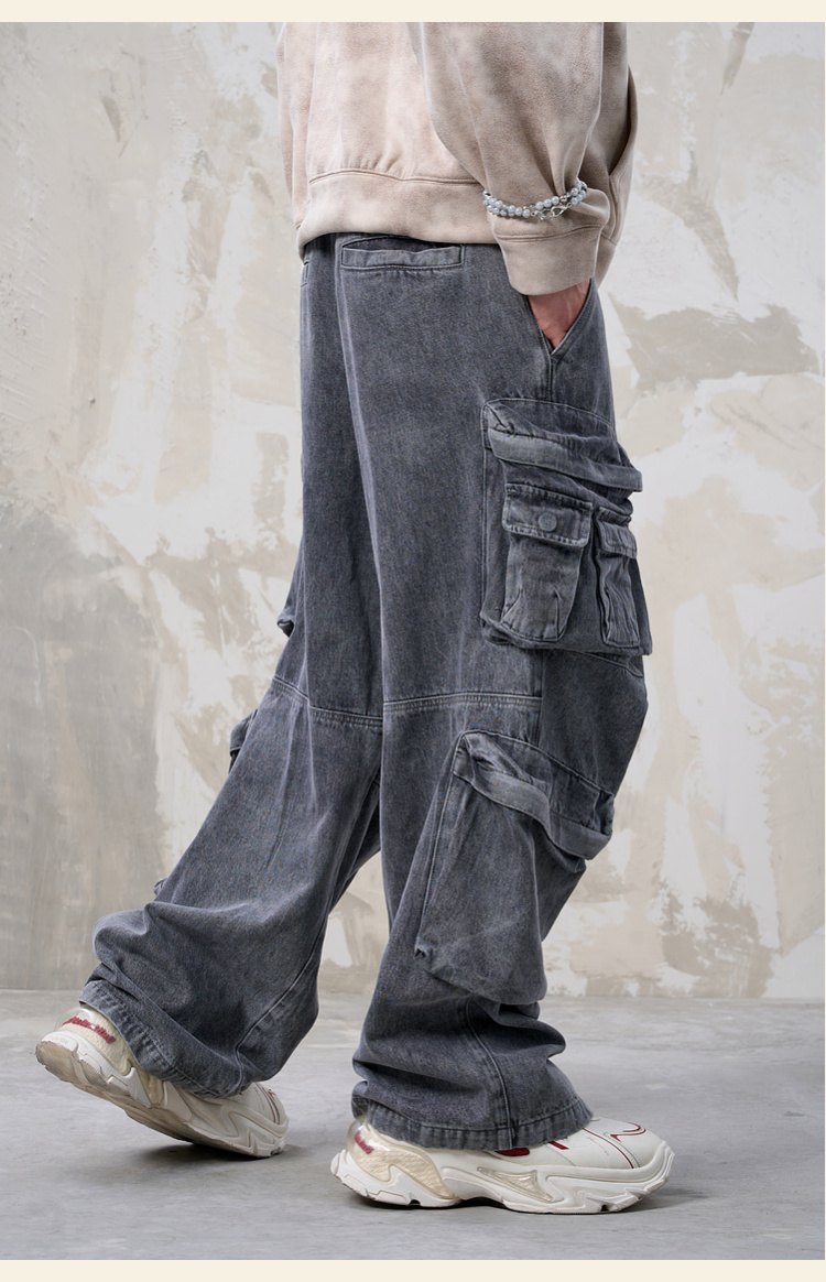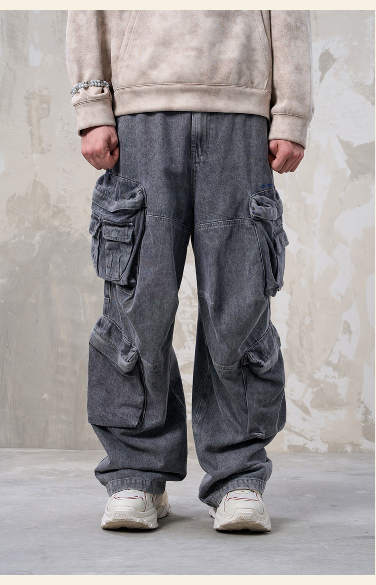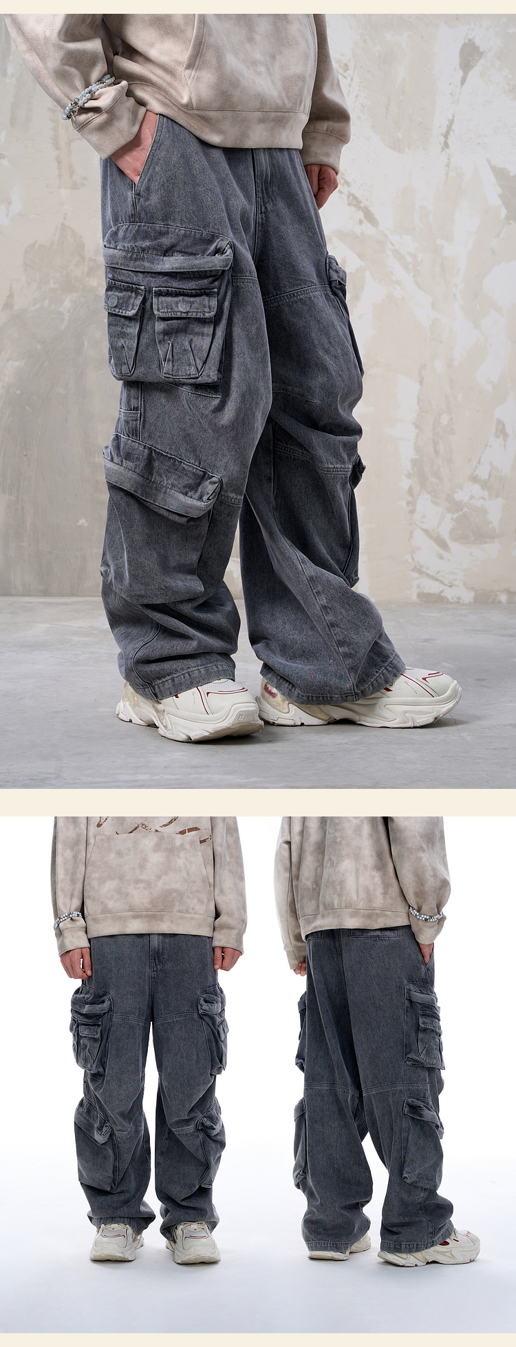 BJHG不计后果废土风工装牛仔裤子男款秋季潮牌美式高街宽松直筒裤