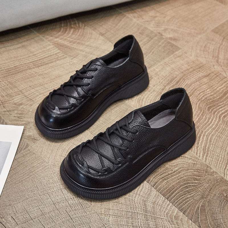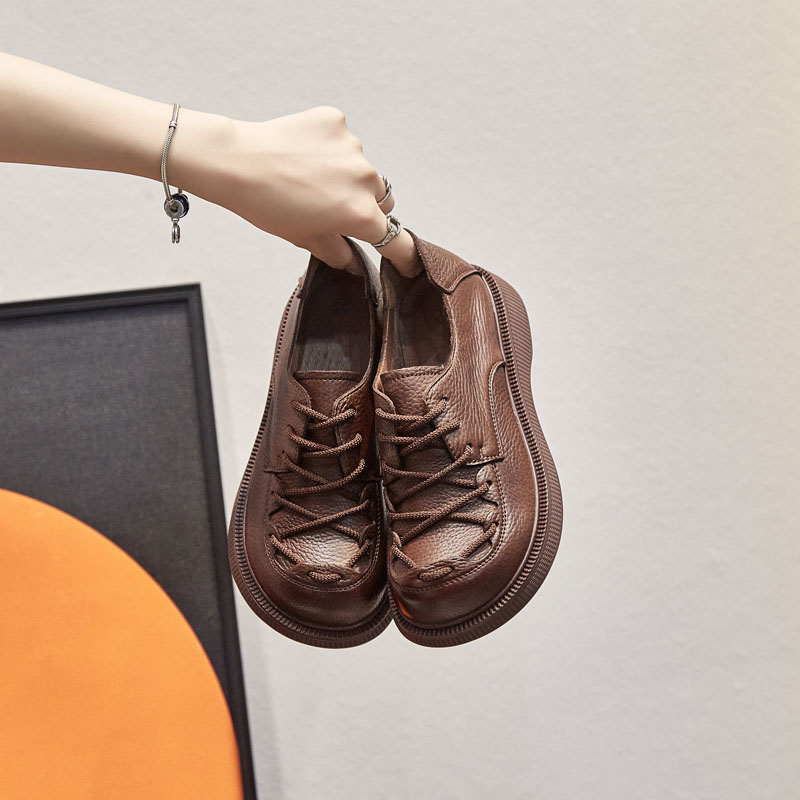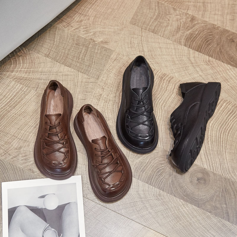 豪行秋季22329281宽松休闲真皮单鞋圆头防滑底低跟女鞋
