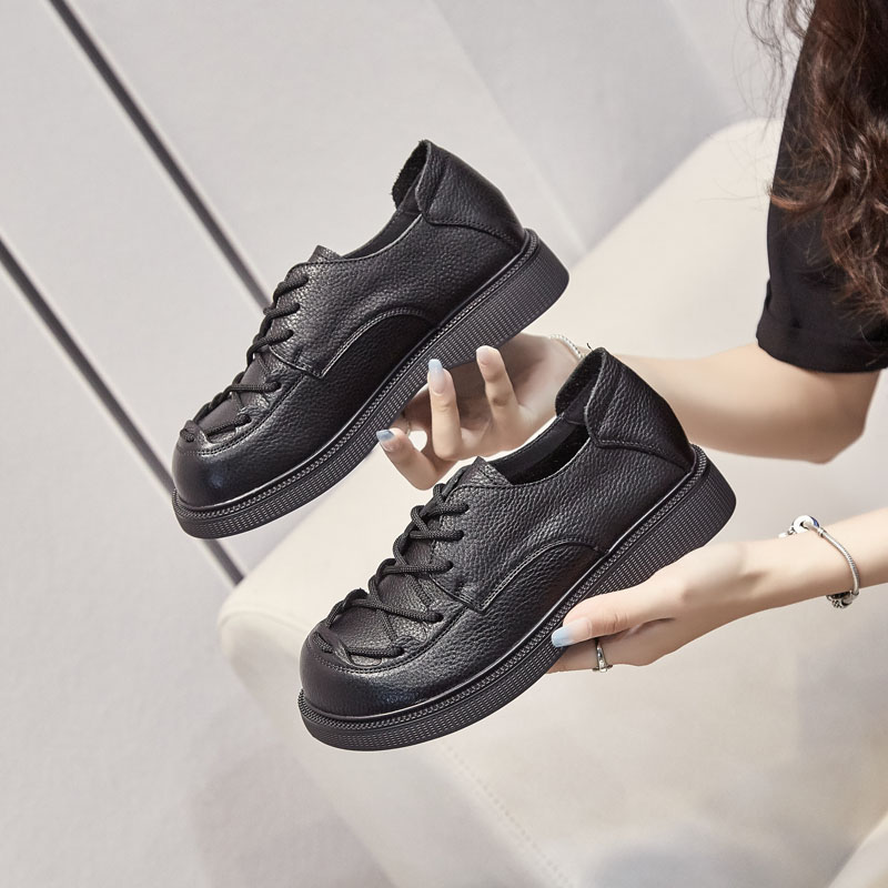 2023秋季新款豪行真皮休闲女鞋23316801舒适厚松糕底系带单鞋
