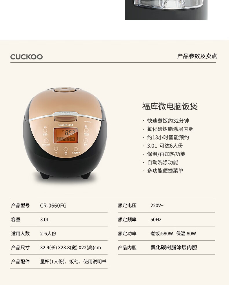 CUCKOO/福库 CR-0660FG 多种能电饭煲3L电饭锅 白红色CR-0658FR
