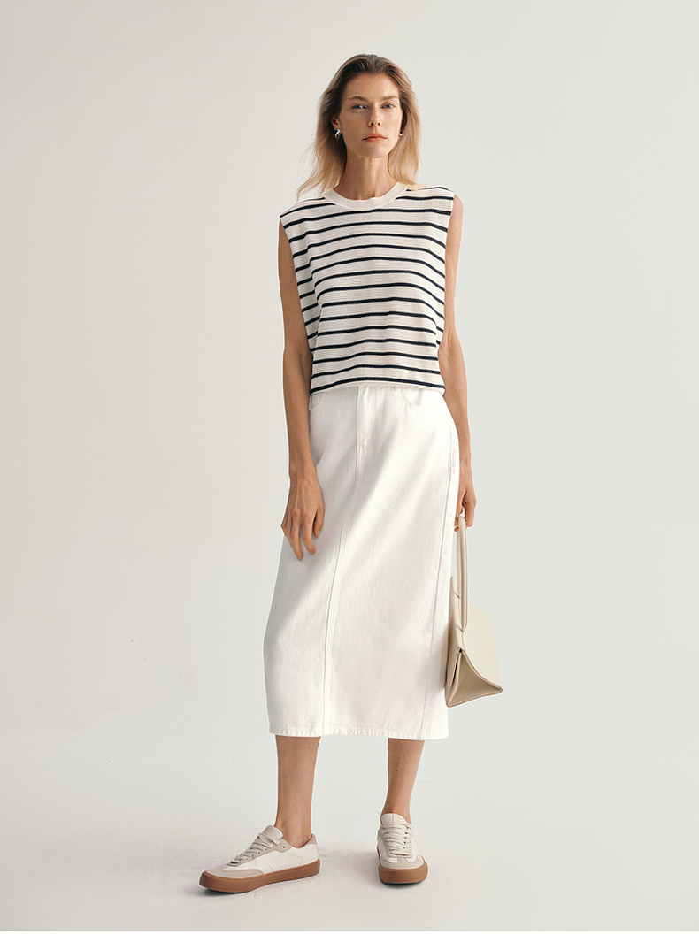 【商场同款】诗凡黎条纹背心2024夏新款流行洋气无袖T恤3F5200611