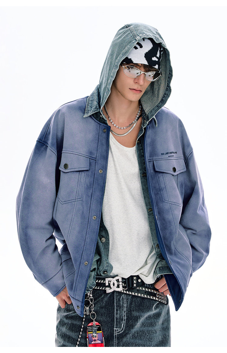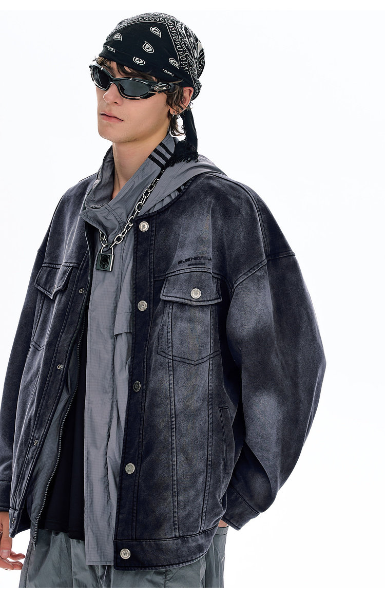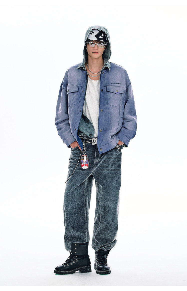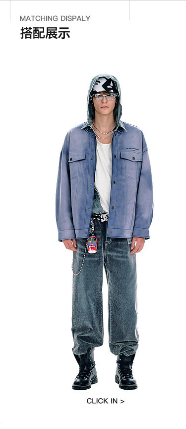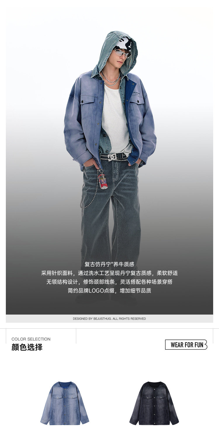 BJHG不计后果美式夹克外套男款春痞帅高级感潮牌无领仿牛仔上衣女