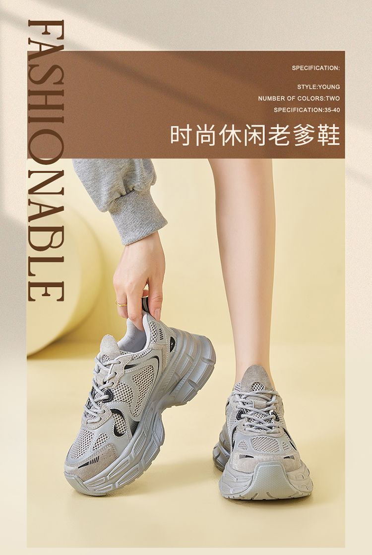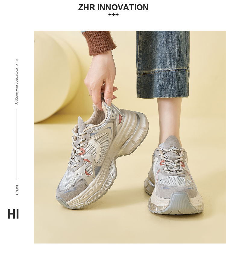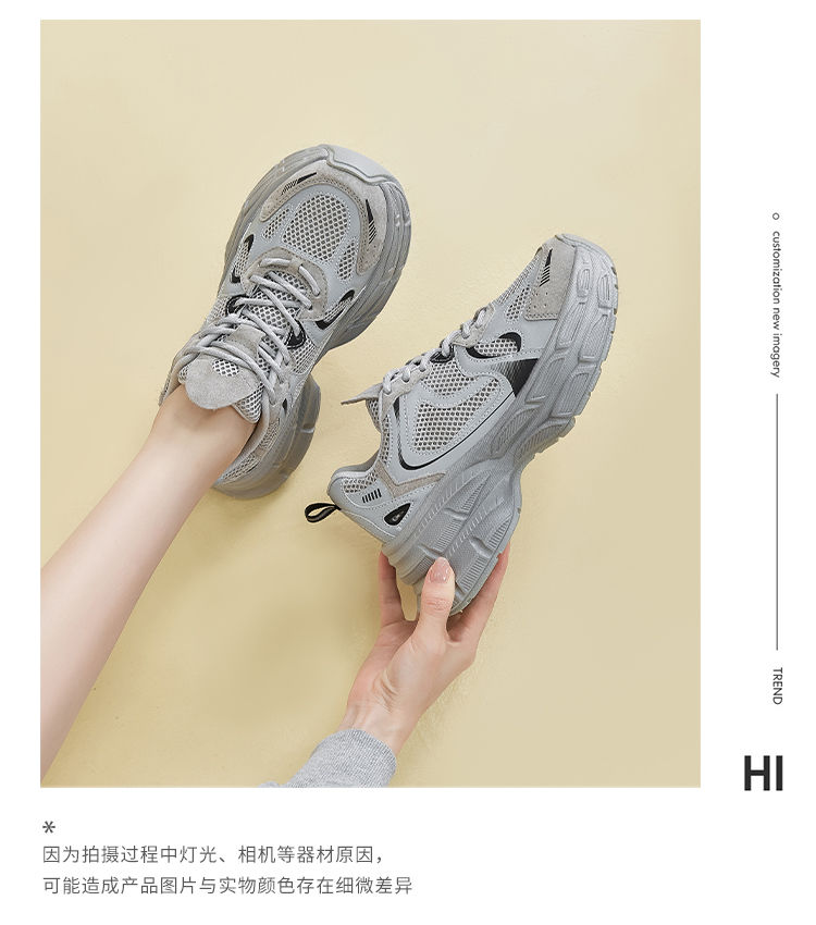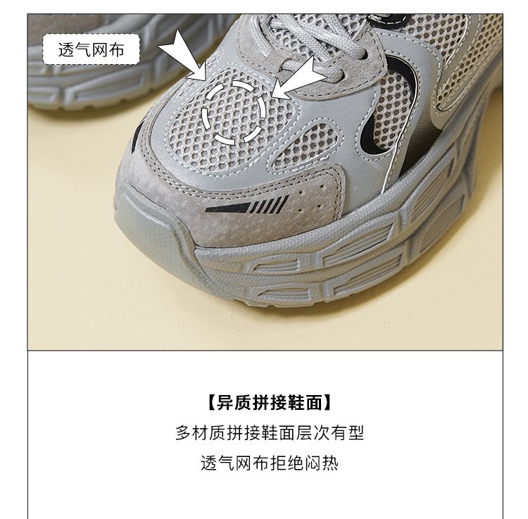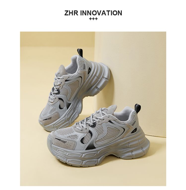 ZHR厚底老爹鞋2024秋季新款百搭休闲鞋小个子增高网面透气运动鞋