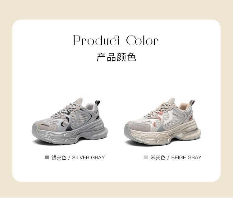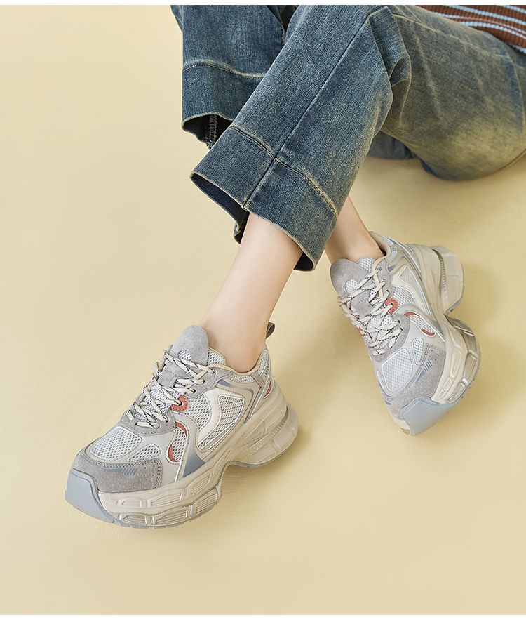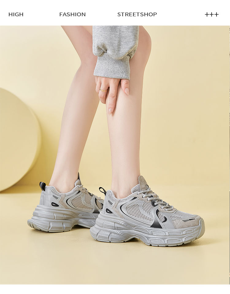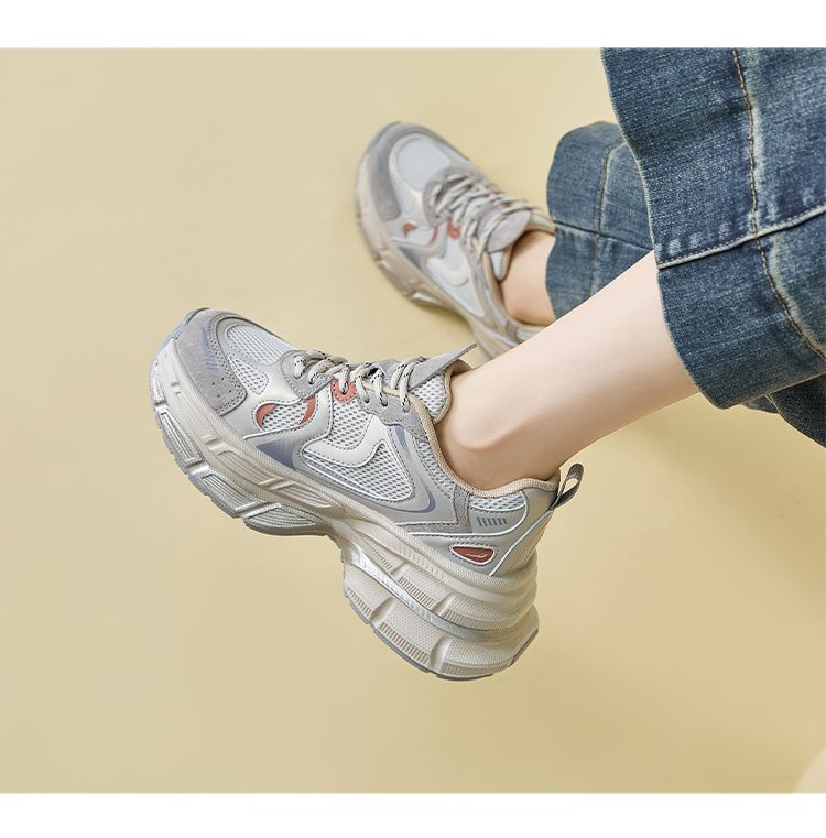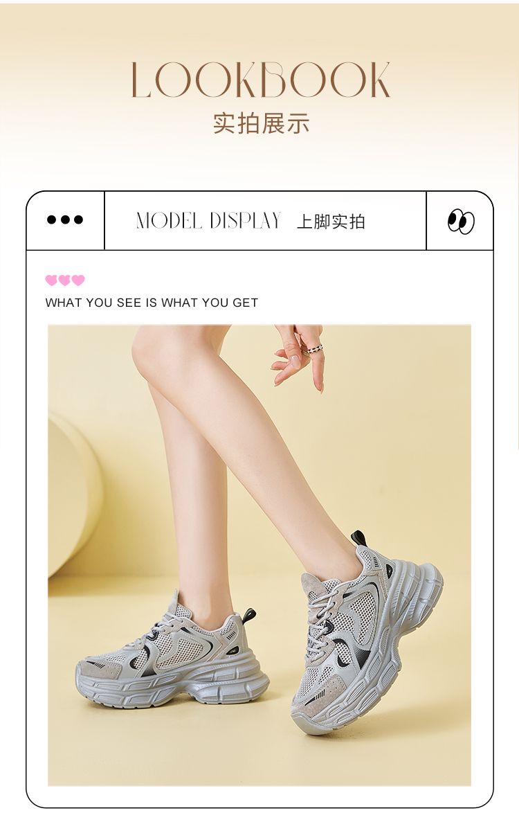 ZHR厚底老爹鞋2024秋季新款百搭休闲鞋小个子增高网面透气运动鞋