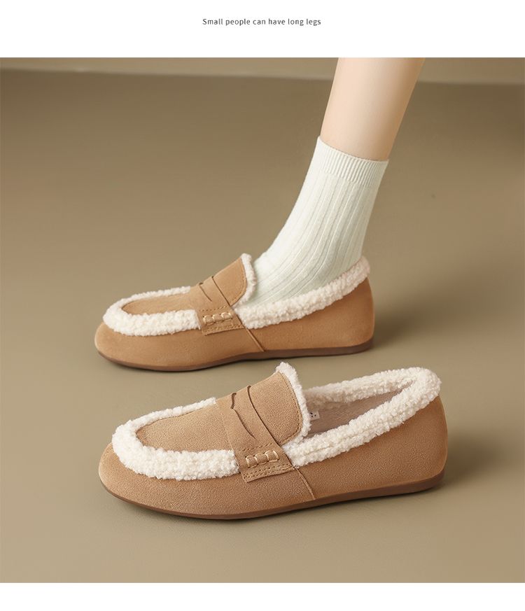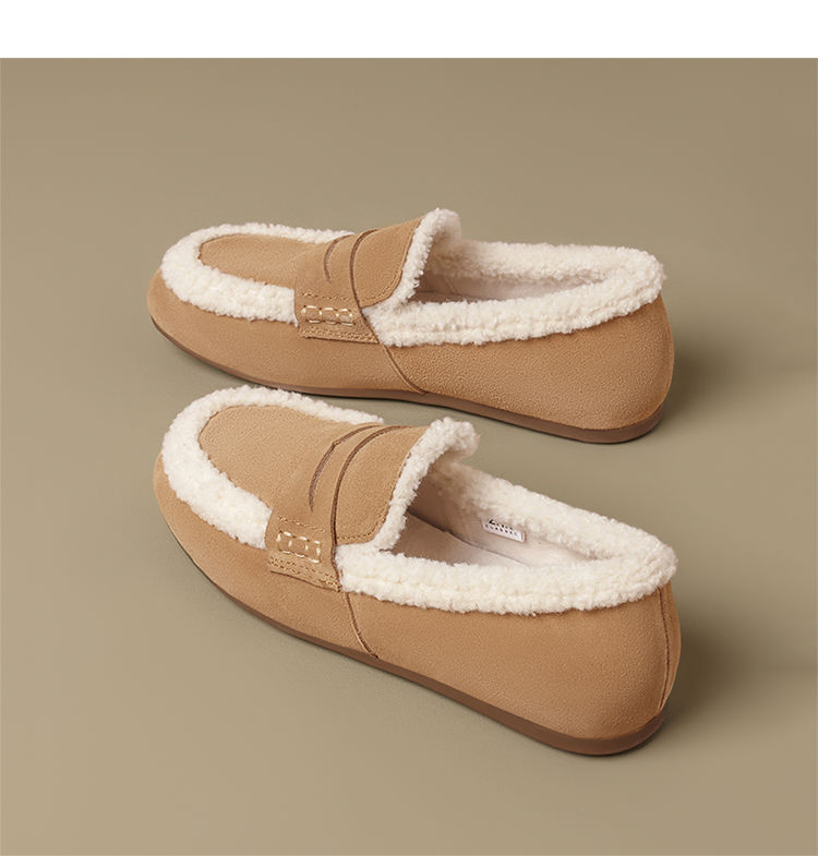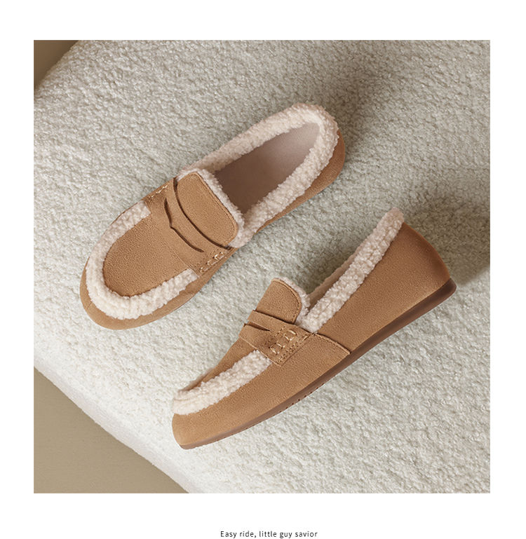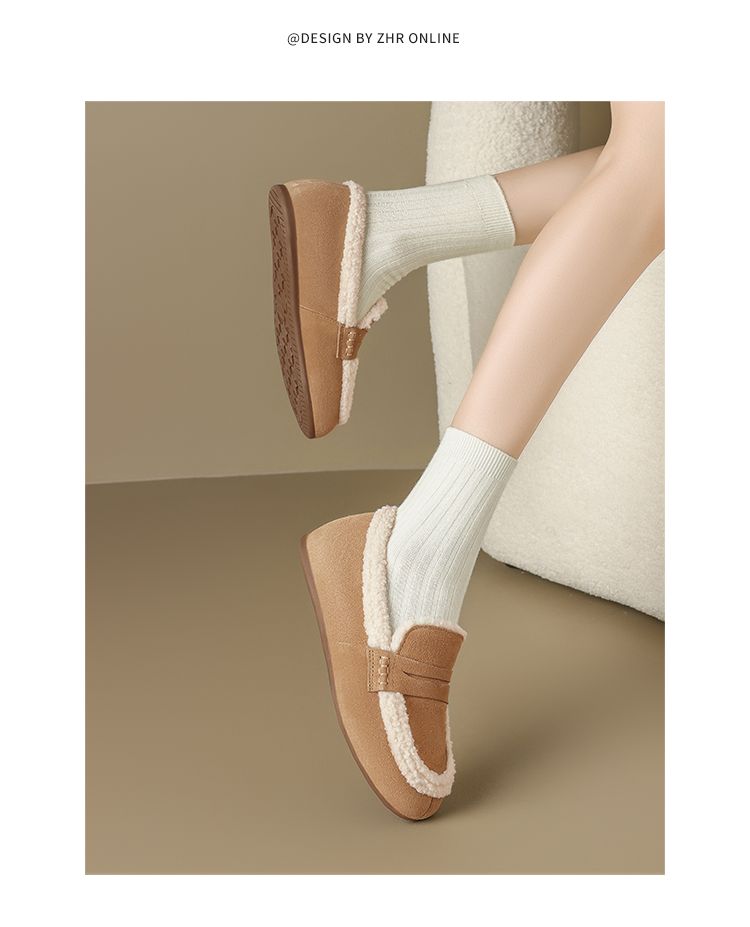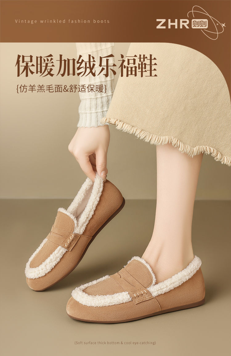 ZHR加绒勃肯鞋女2024新款特厚防冻棉鞋一脚蹬毛毛鞋ins乐福鞋外穿